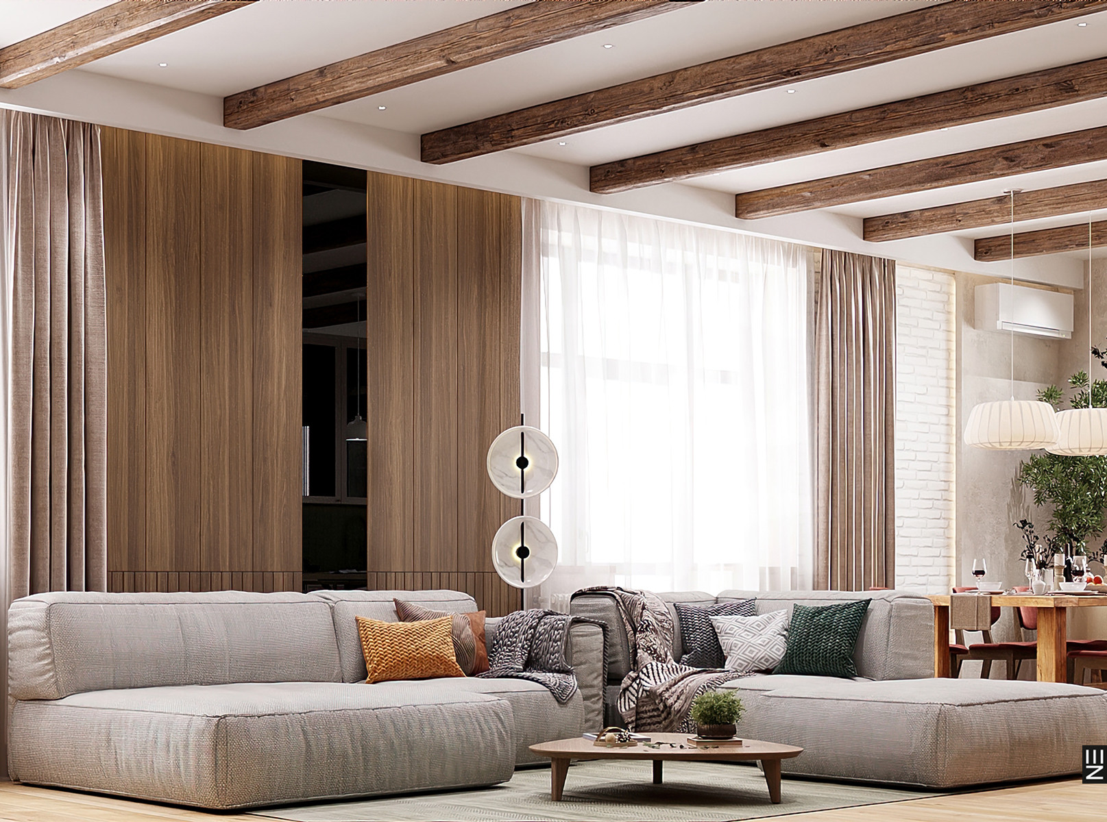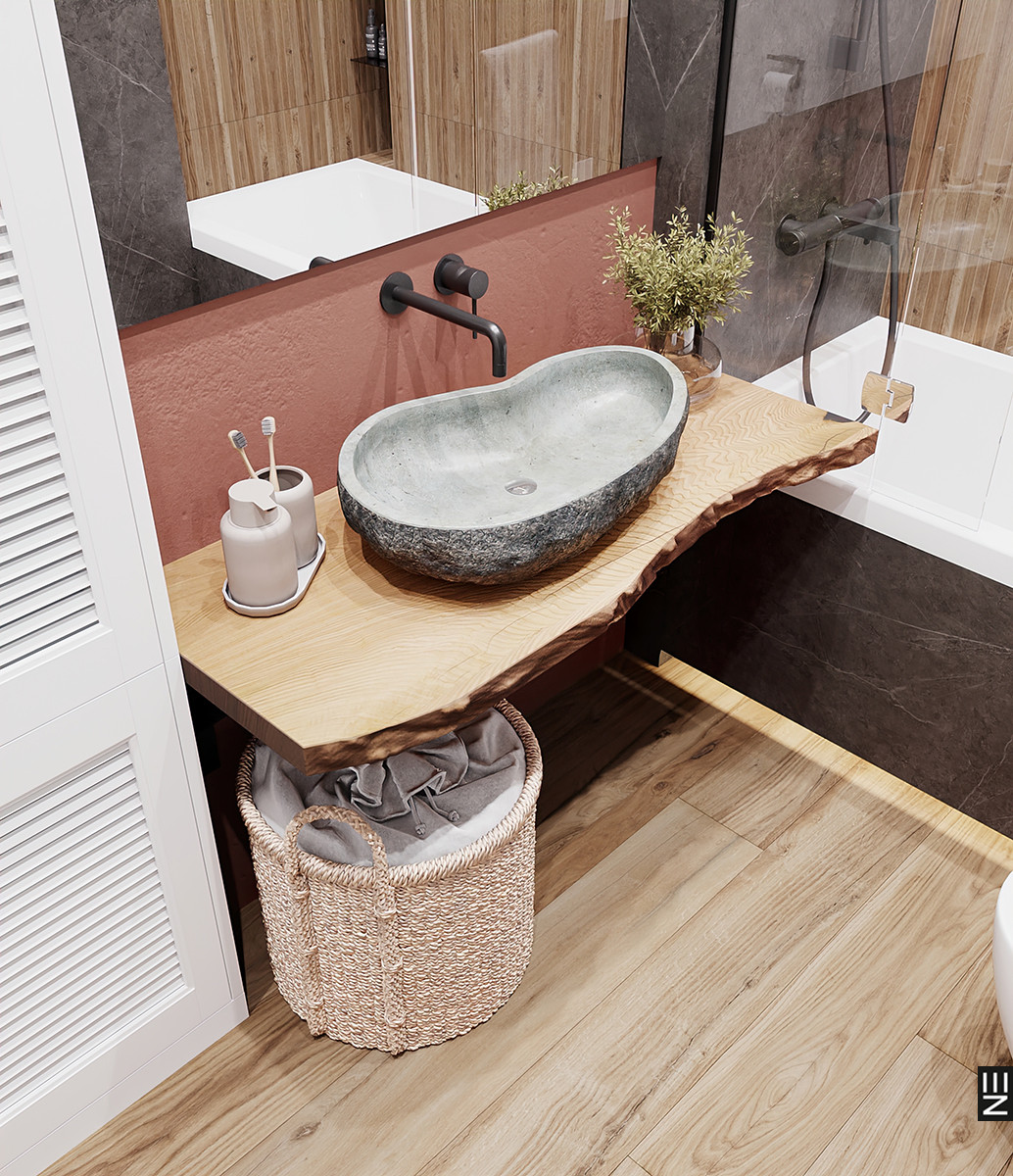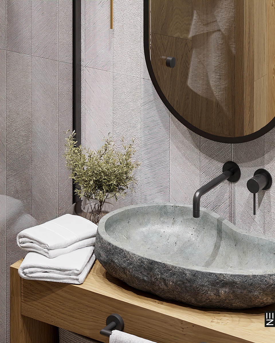 В доме площадью 163,6 м² под Екатеринбургом студия Neapol Design создала атмосферу, где натуральность материалов сочетается с архитектурной основательностью. Интерьер оформлен в стиле тёплого кантри с элементами альпийского шале: тёмный дуб, шероховатый камень, льняной текстиль и мягкий свет от кованых светильников задают ощущение спокойствия и защищённости. Планировка интуитивно понятна и логична: кухня и гостиная объединены в общее пространство с видом на террасу, приватные комнаты зонированы с заботой о личном комфорте. Этот проект — про семейную наполненность, тактильную теплоту и идею дома как живой среды, а не просто квадратных метров.