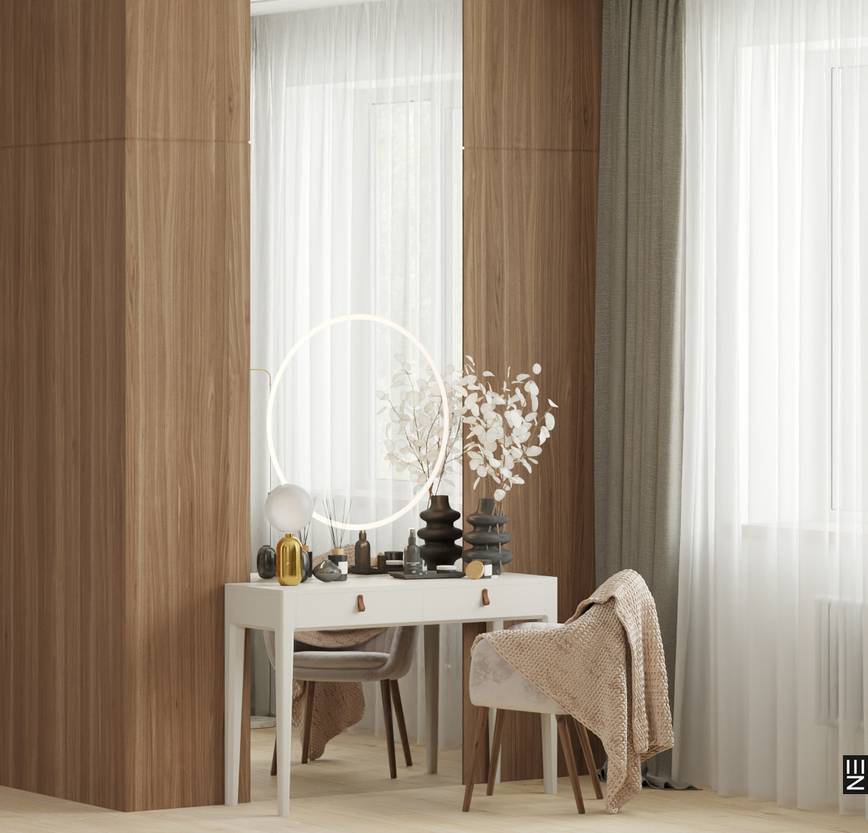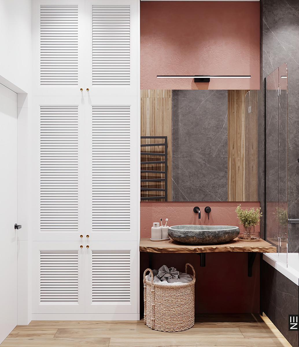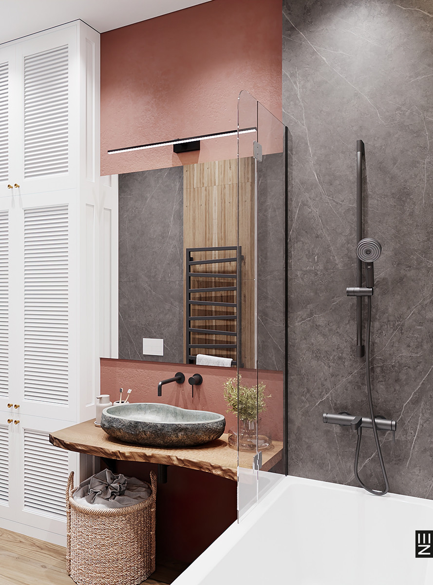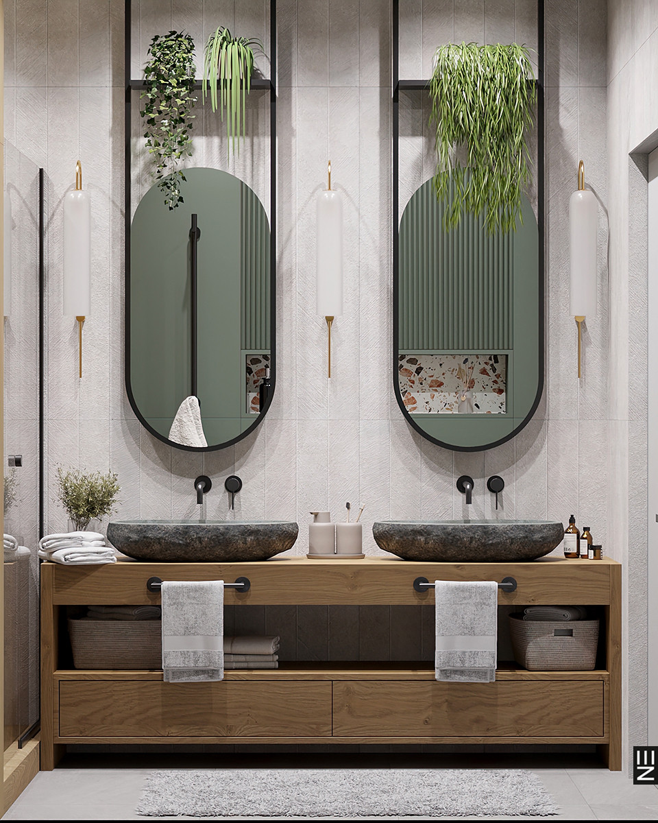 В доме площадью 163,6 м² под Екатеринбургом студия Neapol Design создала атмосферу, где натуральность материалов сочетается с архитектурной основательностью. Интерьер оформлен в стиле тёплого кантри с элементами альпийского шале: тёмный дуб, шероховатый камень, льняной текстиль и мягкий свет от кованых светильников задают ощущение спокойствия и защищённости. Планировка интуитивно понятна и логична: кухня и гостиная объединены в общее пространство с видом на террасу, приватные комнаты зонированы с заботой о личном комфорте. Этот проект — про семейную наполненность, тактильную теплоту и идею дома как живой среды, а не просто квадратных метров.