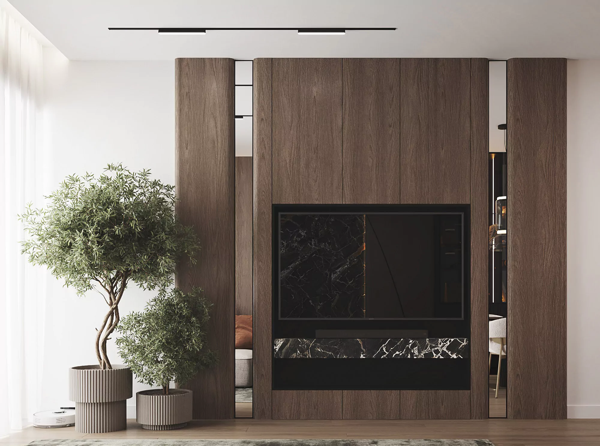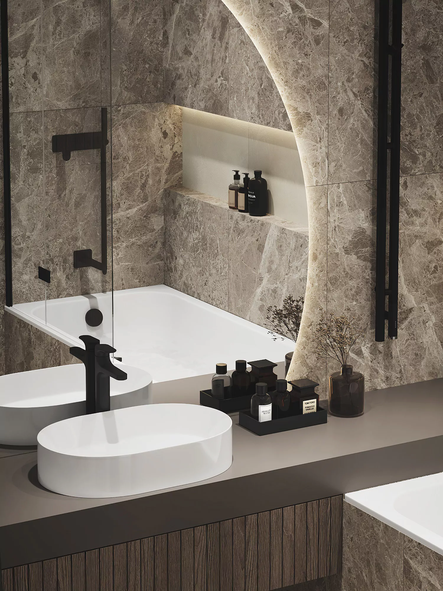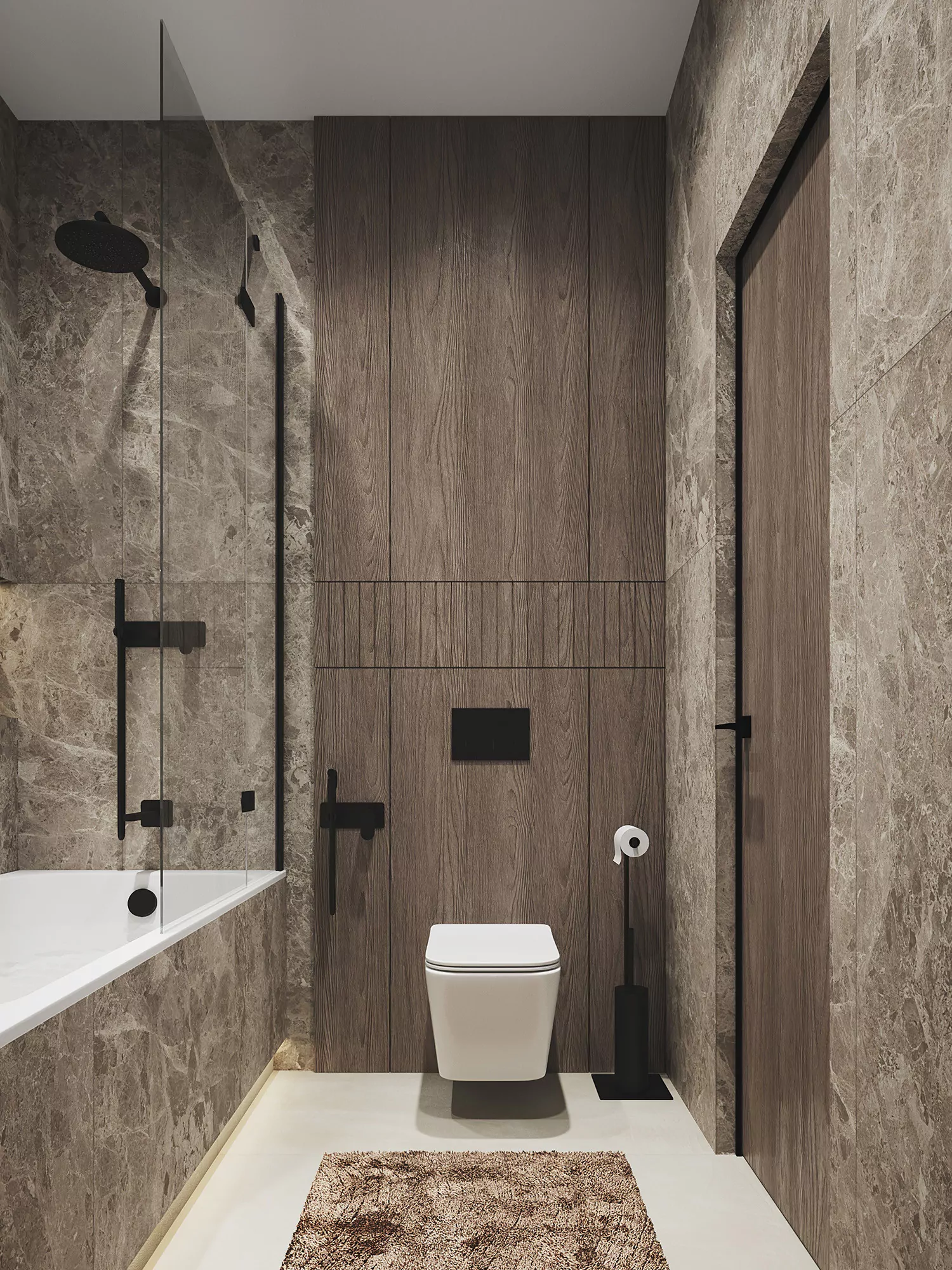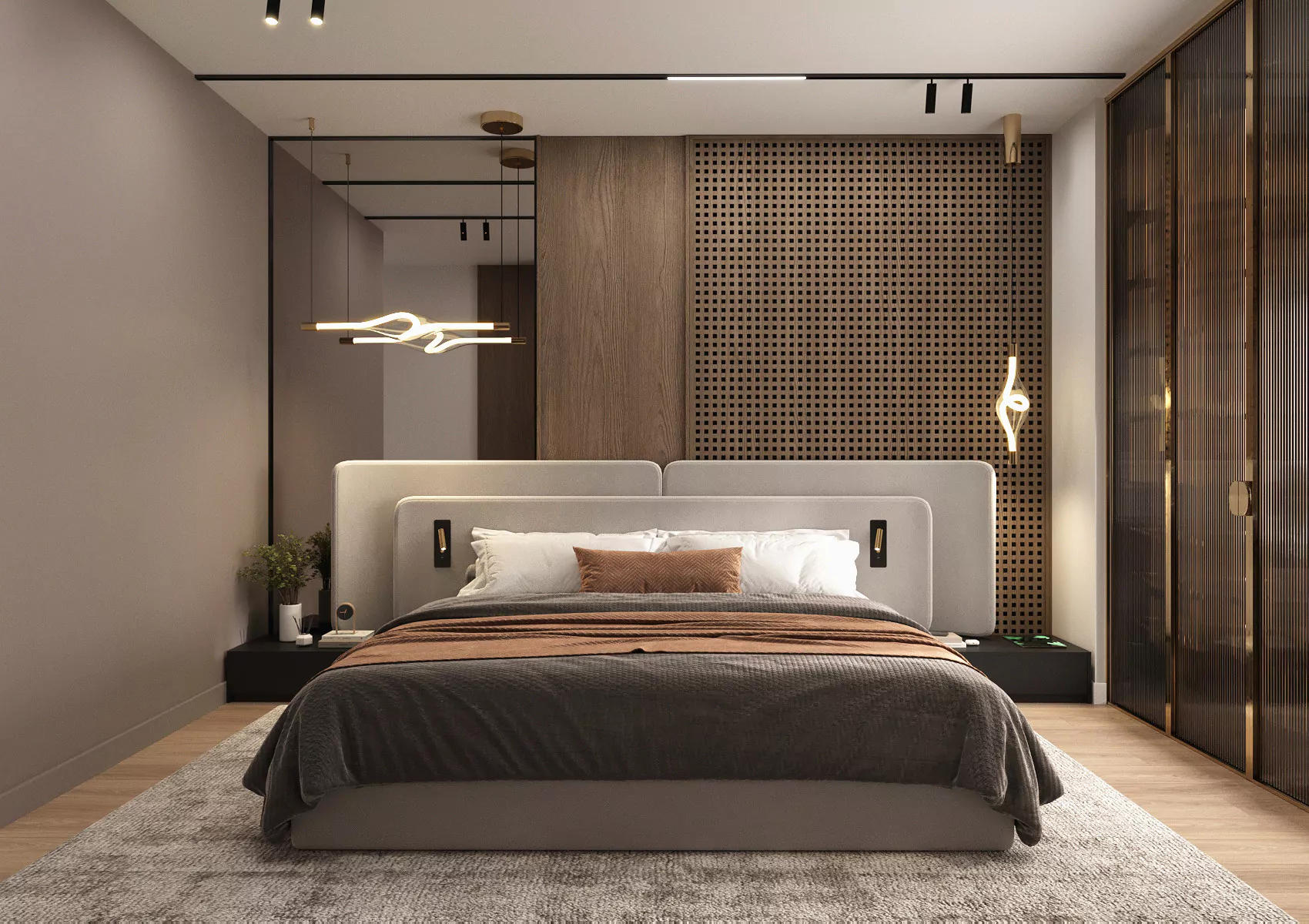 Элегантный дизайн интерьера квартиры площадью 120,4 м² в ЖК «Клевер Парк» в Екатеринбурге отражает стиль, уверенность и тонкое чувство эстетики владельцев. Пространство оформлено в глубоких оттенках с тёплыми акцентами терракоты и дерева. Натуральный камень, матовые текстуры, текстиль в мягких тонах создают атмосферу уюта и благородства. Архитектура квартиры подчёркнута светом и симметрией планировки. Этот интерьер — не просто оформление, а полноценный образ жизни, где каждая деталь подчинена логике и гармонии. Реализован с полным сопровождением студии Neapol.