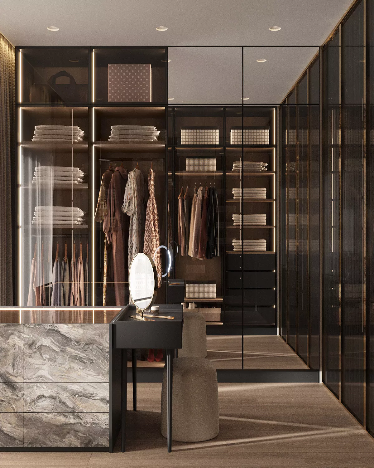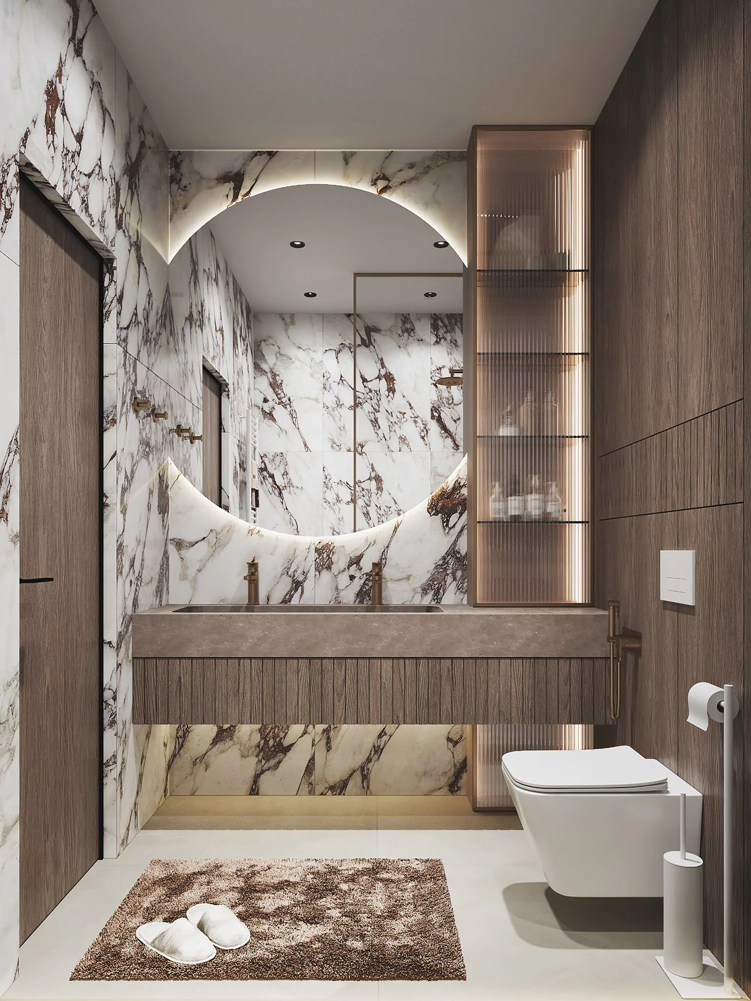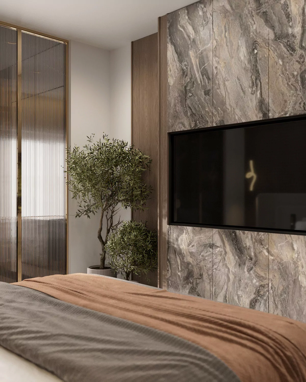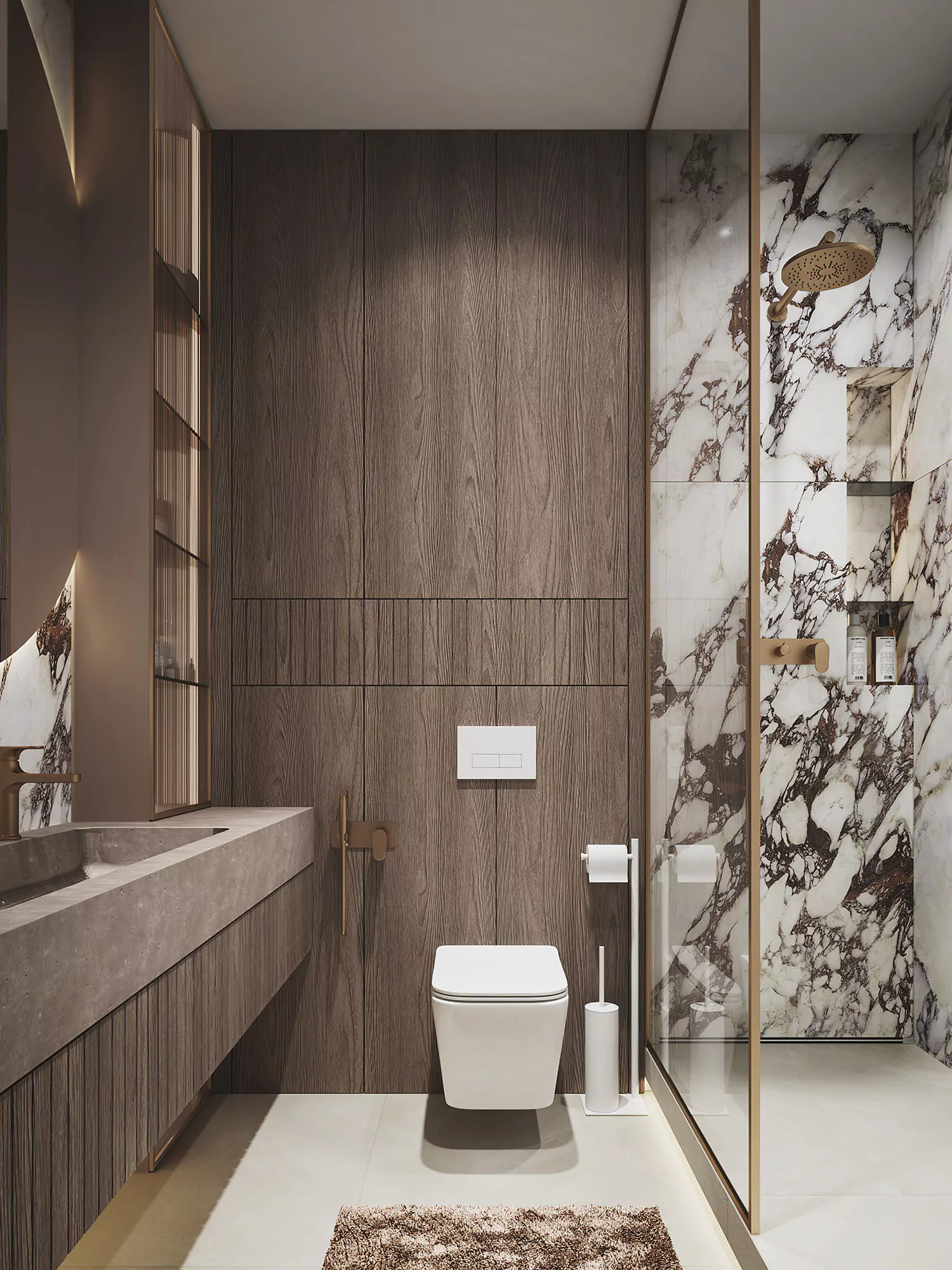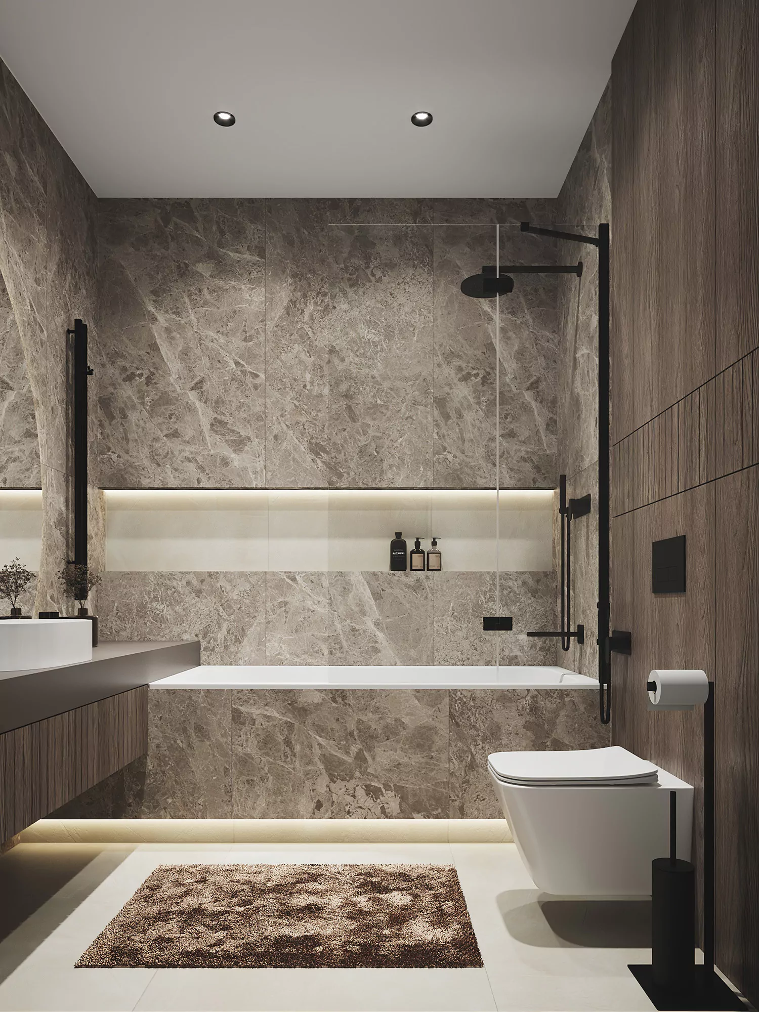Элегантный дизайн интерьера квартиры площадью 120,4 м² в ЖК «Клевер Парк» в Екатеринбурге отражает стиль, уверенность и тонкое чувство эстетики владельцев. Пространство оформлено в глубоких оттенках с тёплыми акцентами терракоты и дерева. Натуральный камень, матовые текстуры, текстиль в мягких тонах создают атмосферу уюта и благородства. Архитектура квартиры подчёркнута светом и симметрией планировки. Этот интерьер — не просто оформление, а полноценный образ жизни, где каждая деталь подчинена логике и гармонии. Реализован с полным сопровождением студии Neapol.