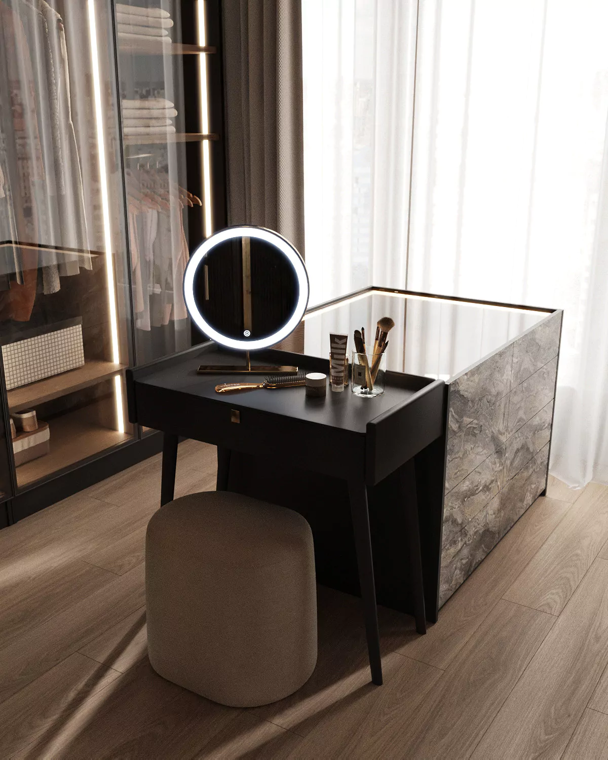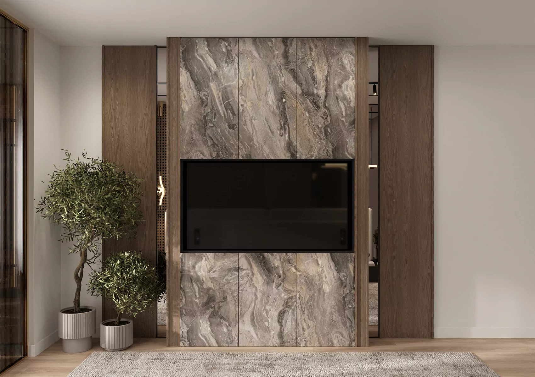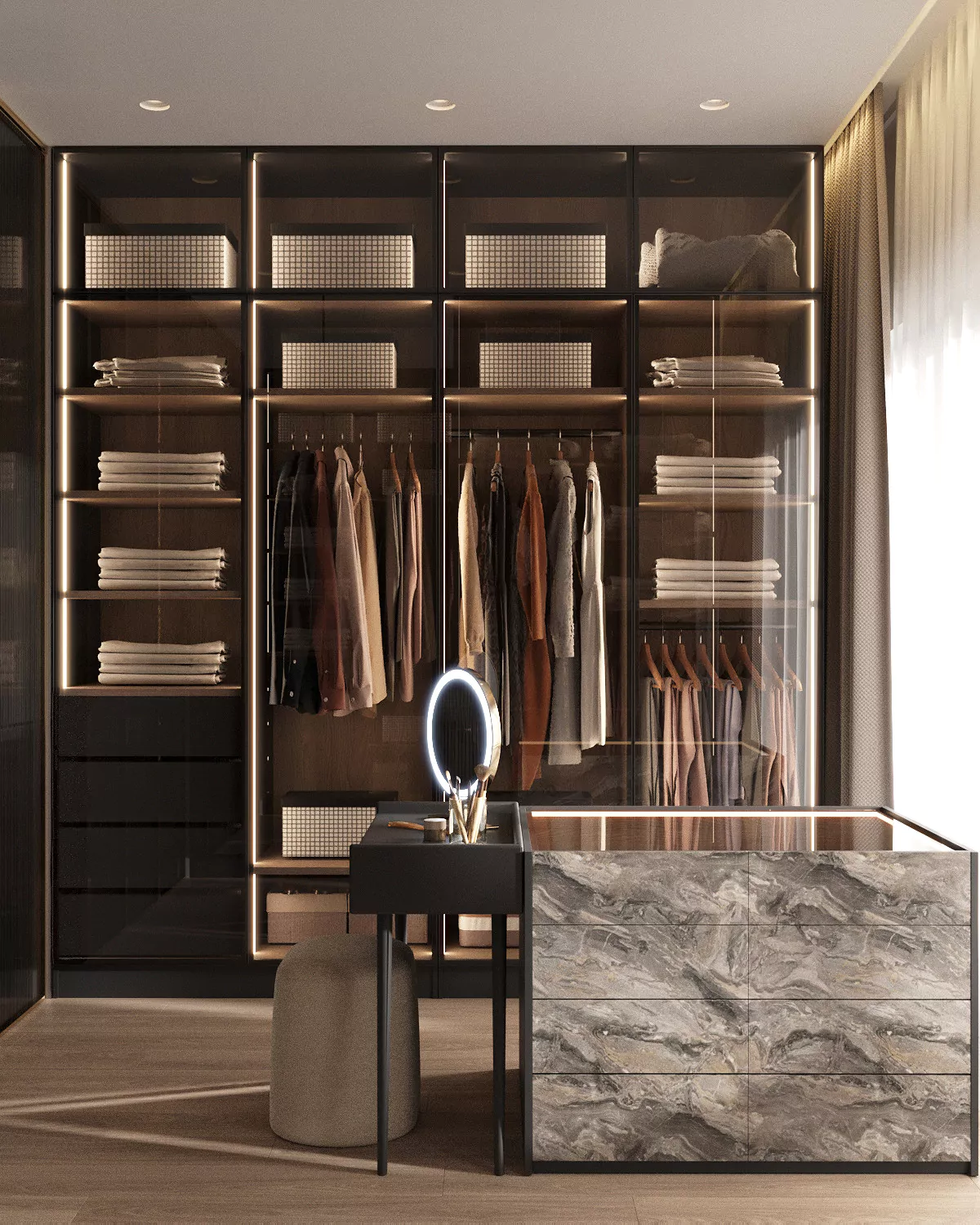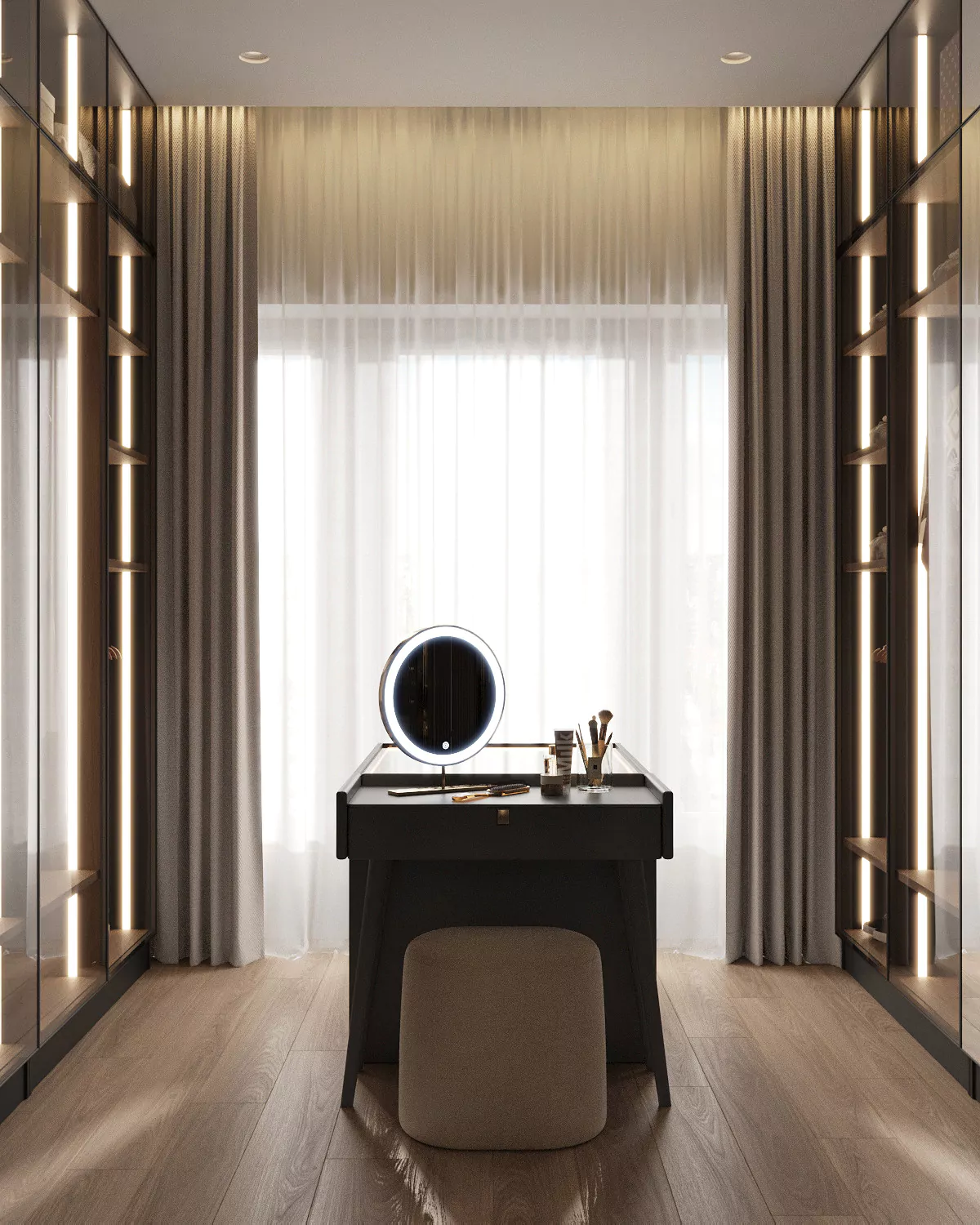 Элегантный дизайн интерьера квартиры площадью 120,4 м² в ЖК «Клевер Парк» в Екатеринбурге отражает стиль, уверенность и тонкое чувство эстетики владельцев. Пространство оформлено в глубоких оттенках с тёплыми акцентами терракоты и дерева. Натуральный камень, матовые текстуры, текстиль в мягких тонах создают атмосферу уюта и благородства. Архитектура квартиры подчёркнута светом и симметрией планировки. Этот интерьер — не просто оформление, а полноценный образ жизни, где каждая деталь подчинена логике и гармонии. Реализован с полным сопровождением студии Neapol.