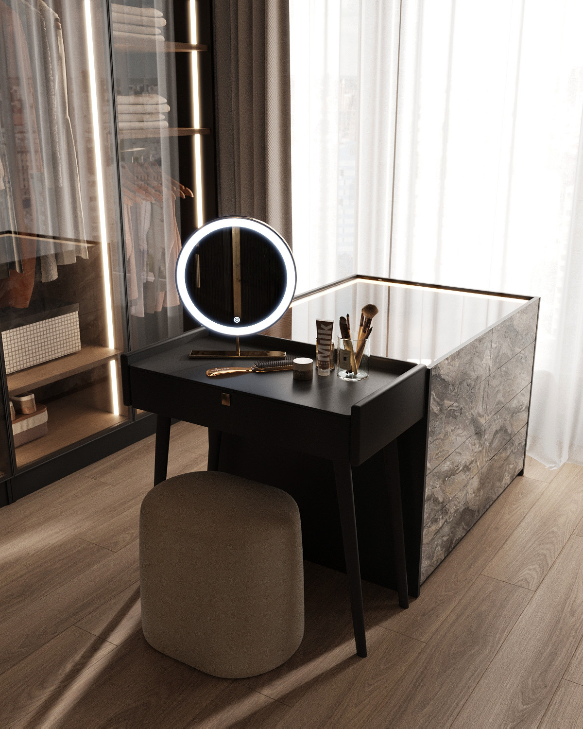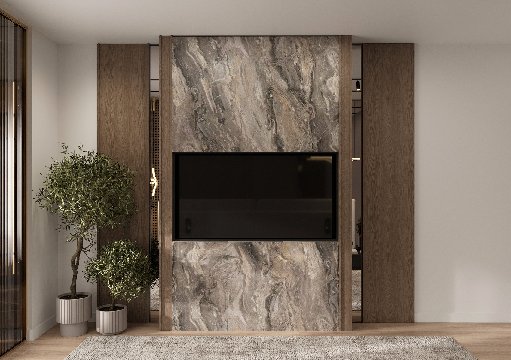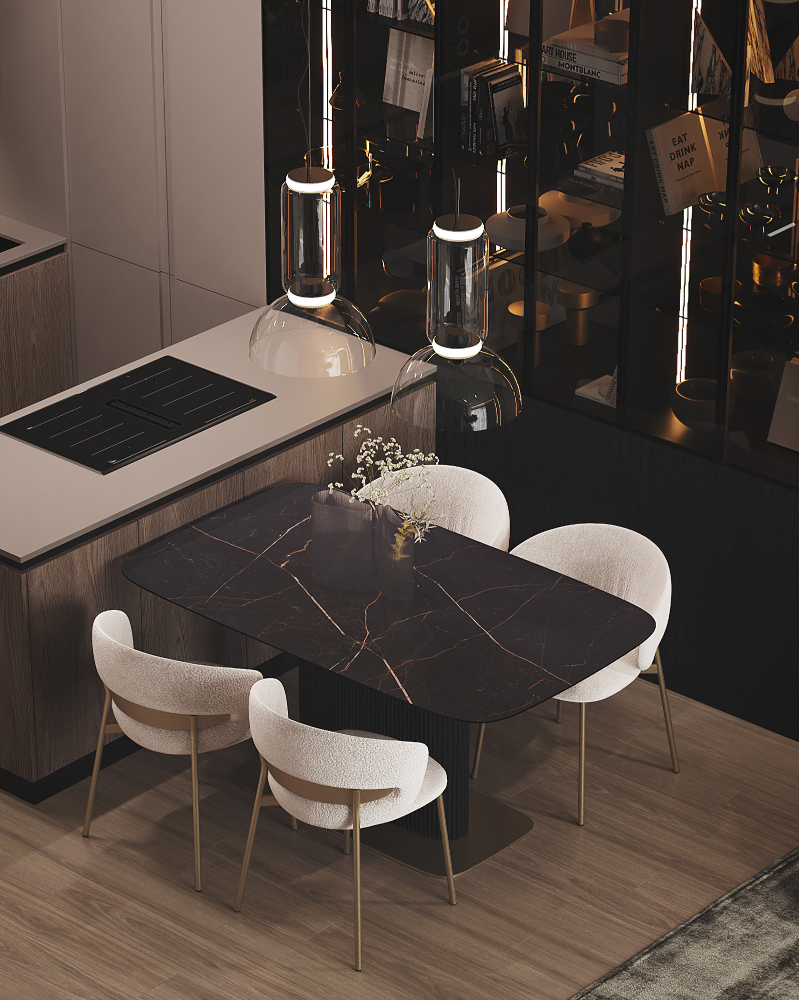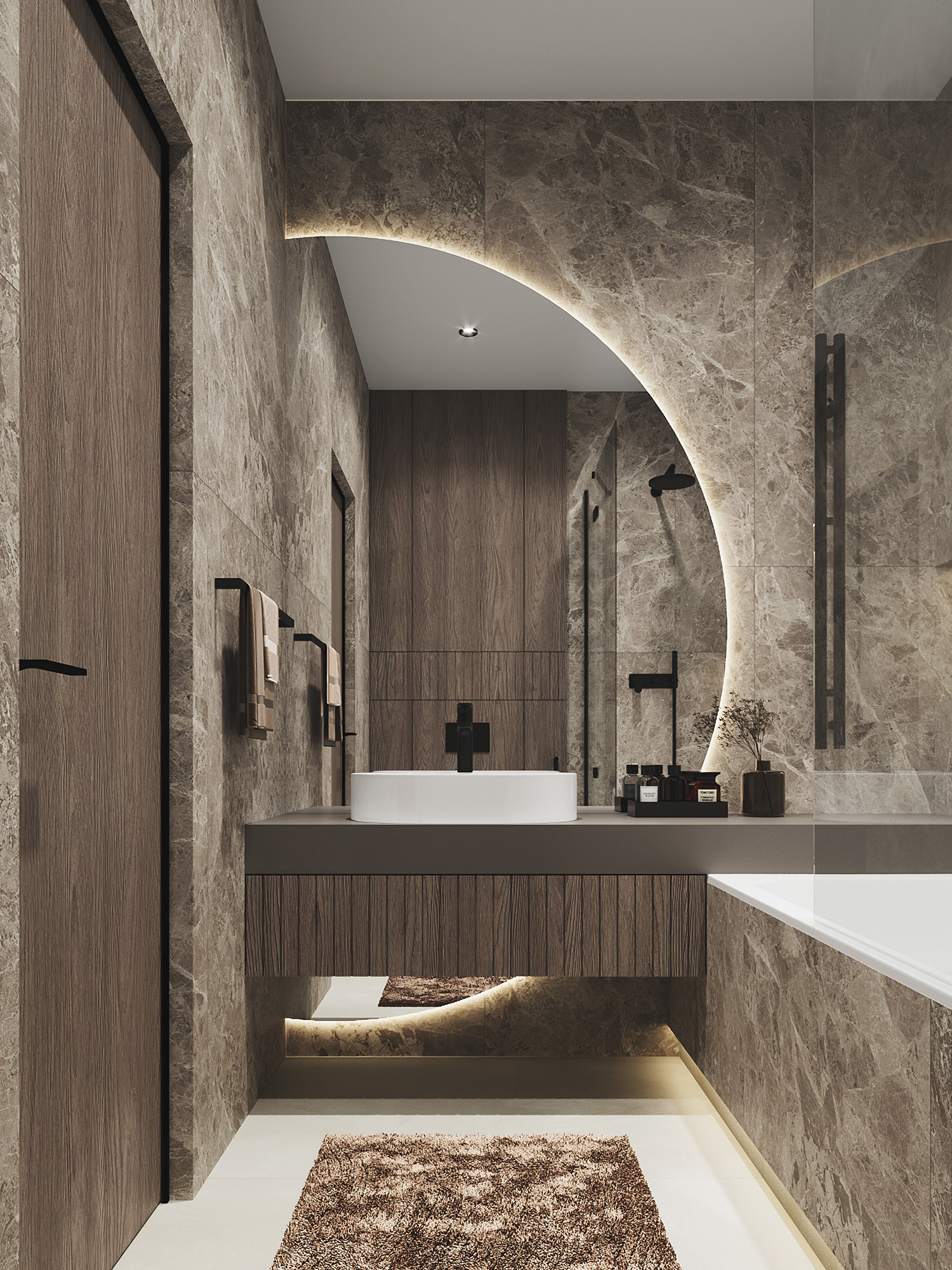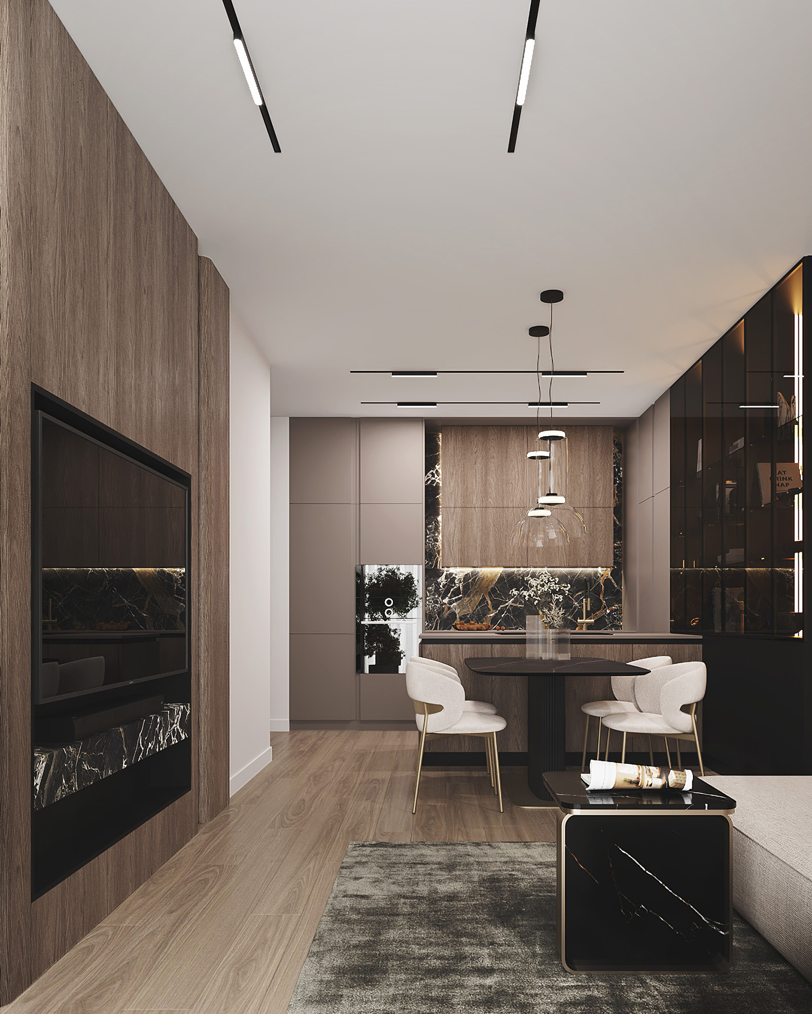 Элегантный дизайн интерьера квартиры площадью 120,4 м² в ЖК «Клевер Парк» в Екатеринбурге отражает стиль, уверенность и тонкое чувство эстетики владельцев. Пространство оформлено в глубоких оттенках с тёплыми акцентами терракоты и дерева. Натуральный камень, матовые текстуры, текстиль в мягких тонах создают атмосферу уюта и благородства. Архитектура квартиры подчёркнута светом и симметрией планировки. Этот интерьер — не просто оформление, а полноценный образ жизни, где каждая деталь подчинена логике и гармонии. Реализован с полным сопровождением студии Neapol.