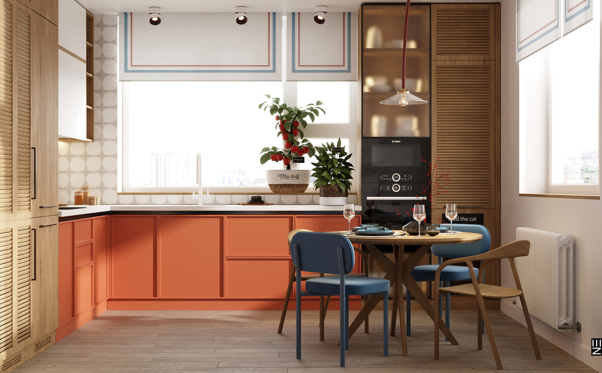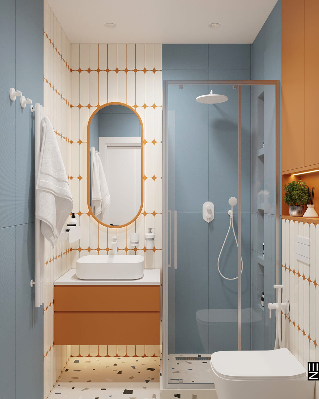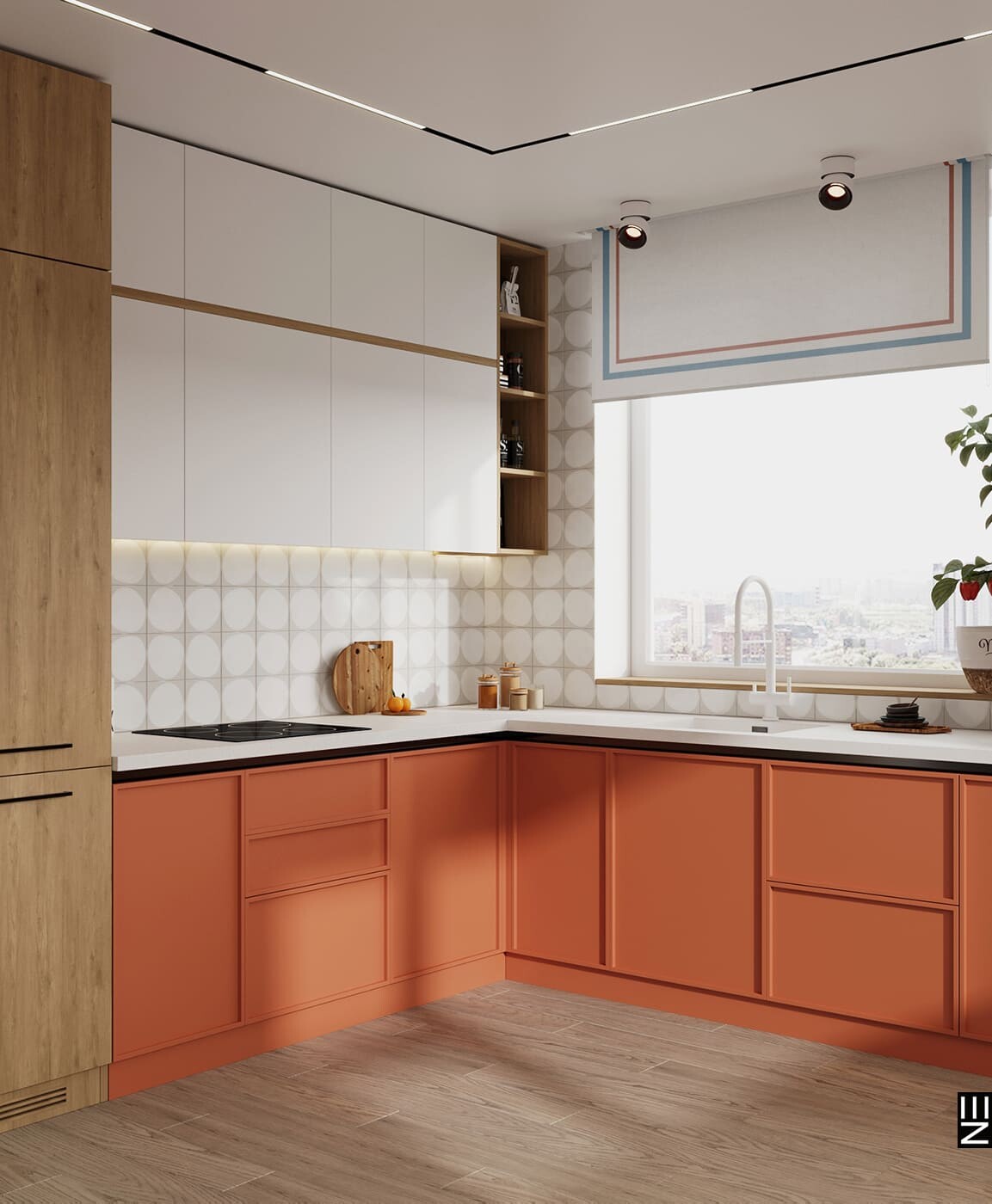 В этом ярком проекте ЖК Дискавери мы сделали ставку на выразительные материалы и смелую палитру. Глубокий графит, теплое дерево, сочные акценты в керамике и тактильный текстиль создают насыщенное, но уравновешенное пространство. Цвет здесь — не просто эффект, а инструмент зонирования и настроения. В проекте продумано всё: от геометрии света до тактильных поверхностей, формируя интерьер, в котором хочется жить, не теряя эстетики в повседневности.