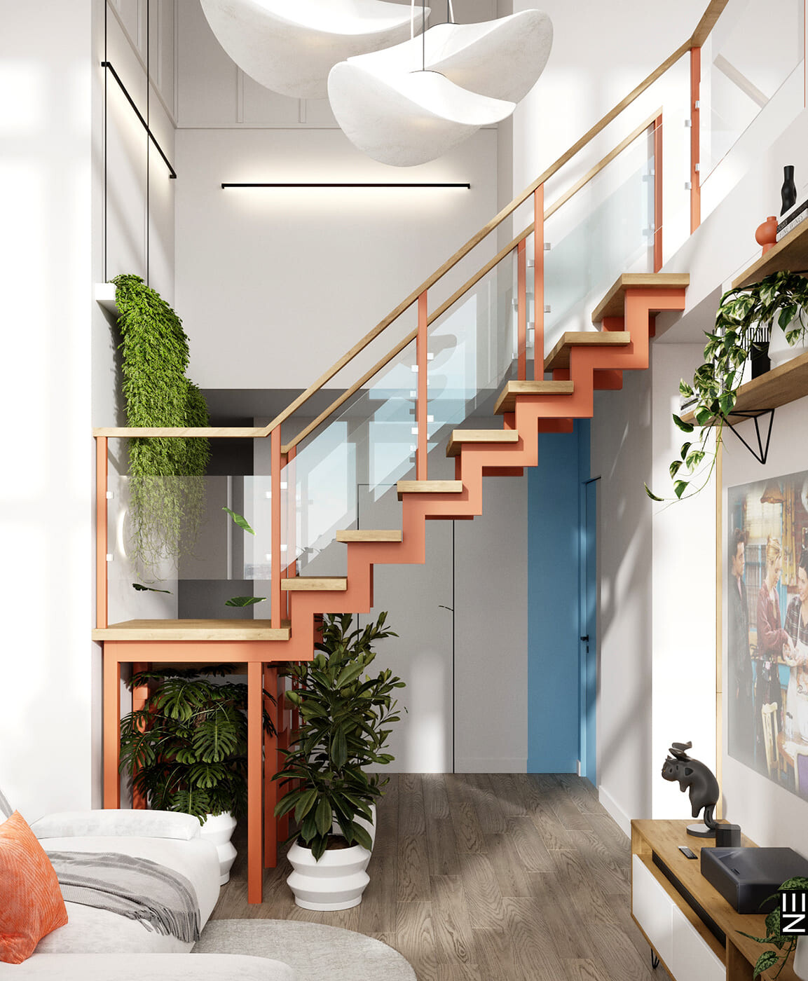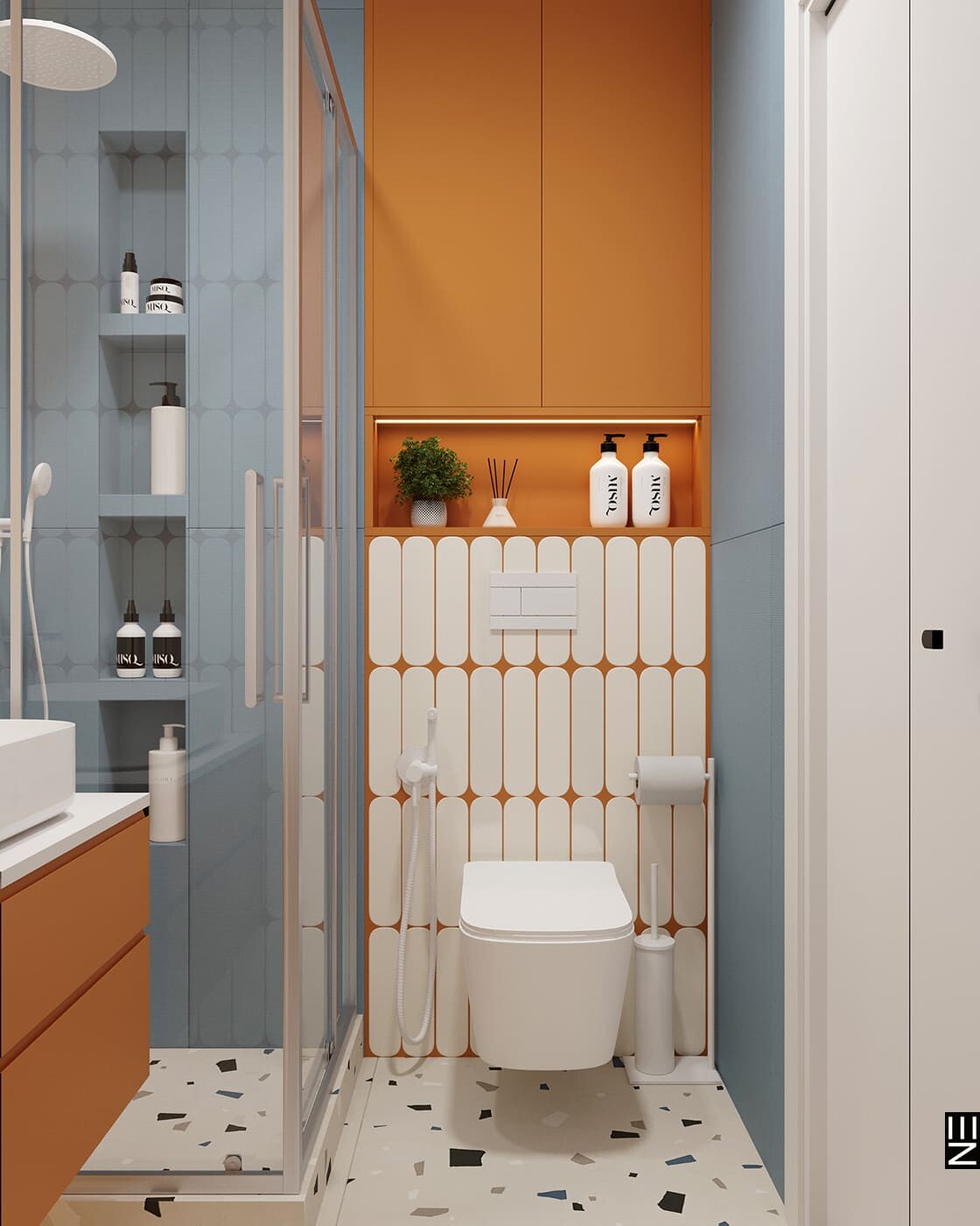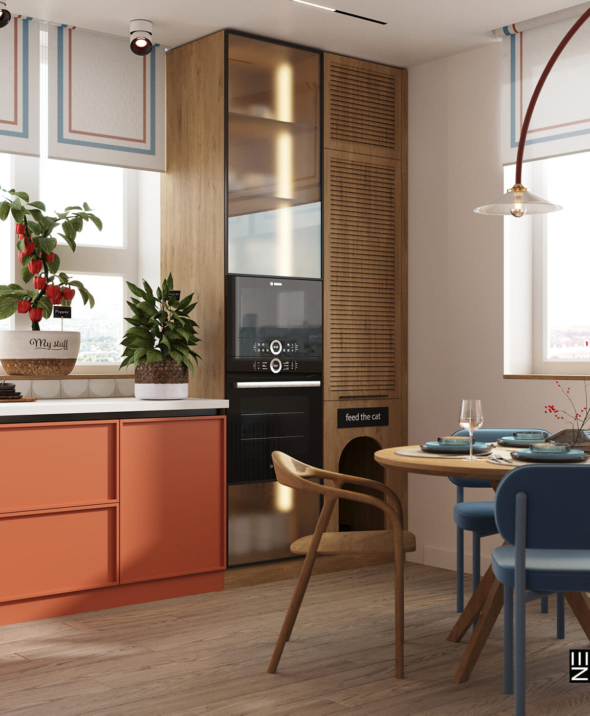 В этом ярком проекте ЖК Дискавери мы сделали ставку на выразительные материалы и смелую палитру. Глубокий графит, теплое дерево, сочные акценты в керамике и тактильный текстиль создают насыщенное, но уравновешенное пространство. Цвет здесь — не просто эффект, а инструмент зонирования и настроения. В проекте продумано всё: от геометрии света до тактильных поверхностей, формируя интерьер, в котором хочется жить, не теряя эстетики в повседневности.