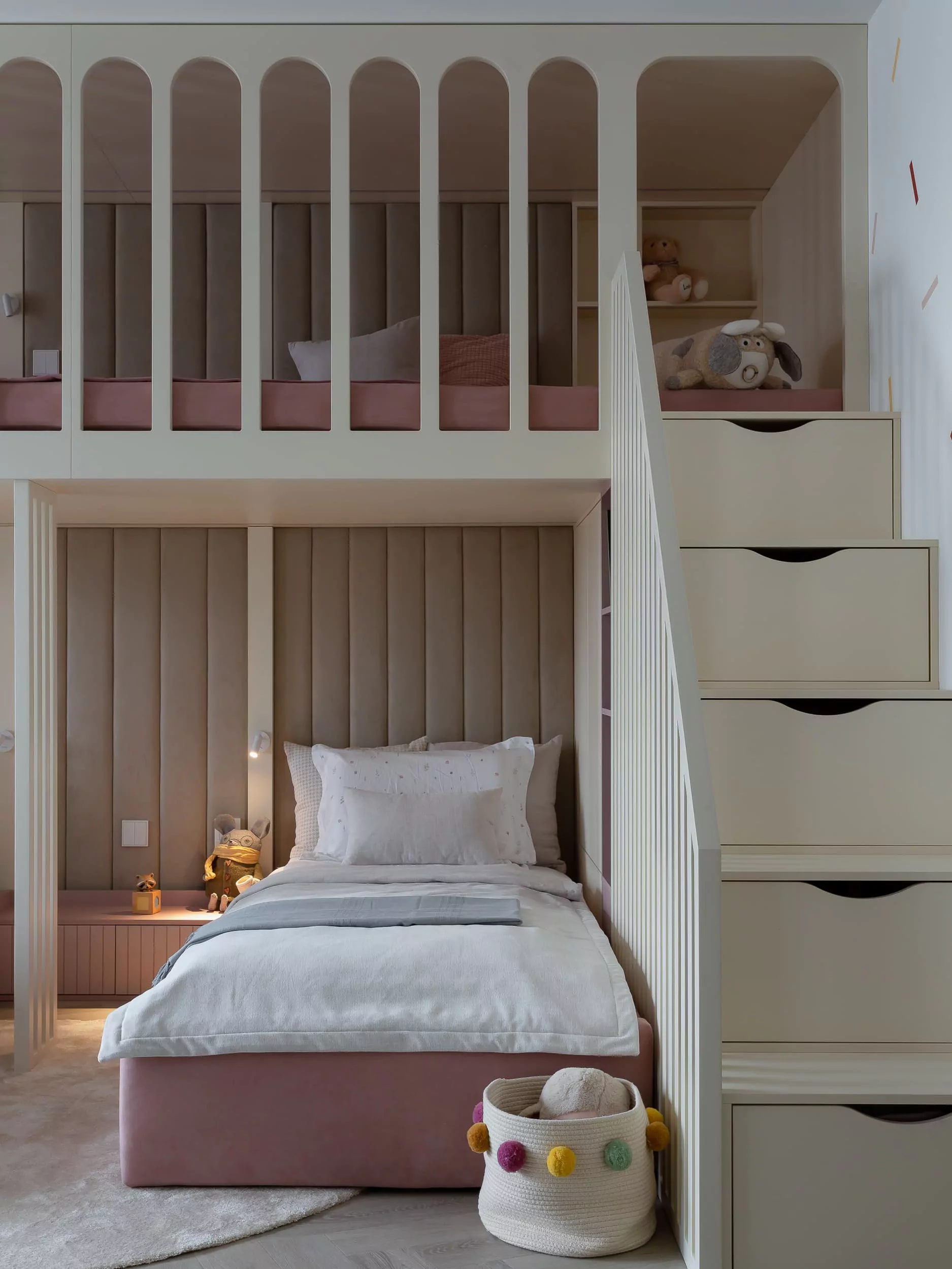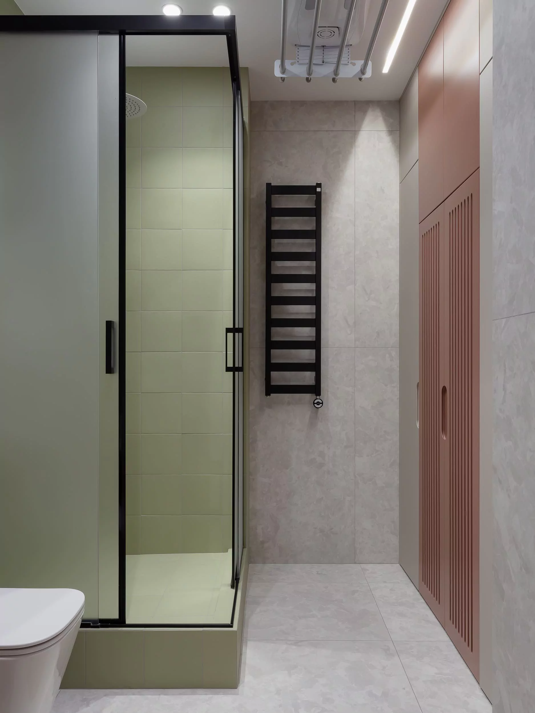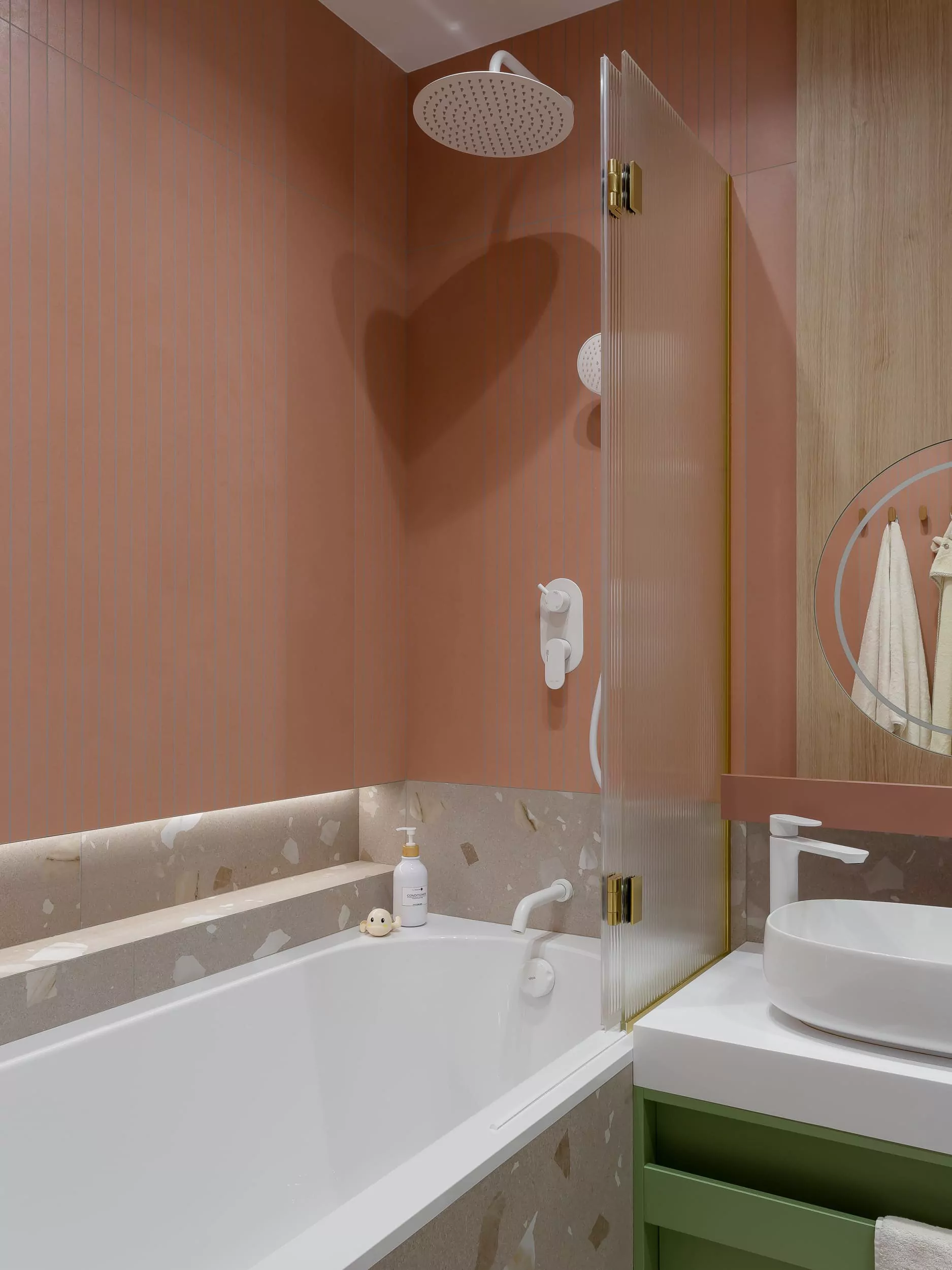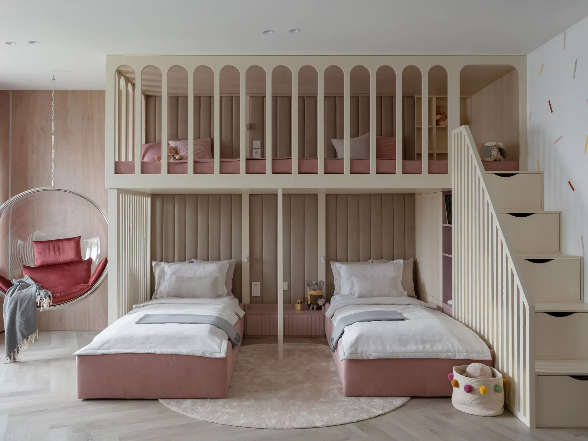 Живые фото реализованного интерьера в ЖК Клевер парк. Трапецевидные формы помещений радиальной квартиры добавили динамики, не потеряв в функциональности и эстетике. Мы использовали самые мягкие, пастельные и пудровые оттенки, чтобы добиться желаемого клиентам ощущения легкости и воздушности.