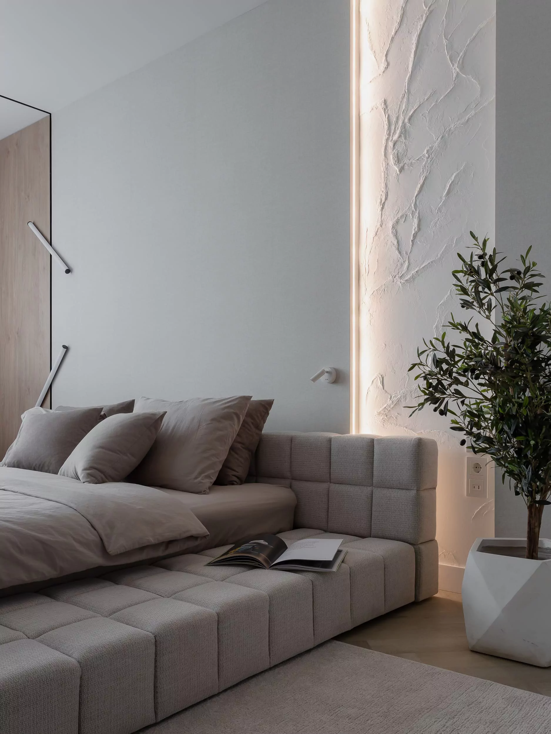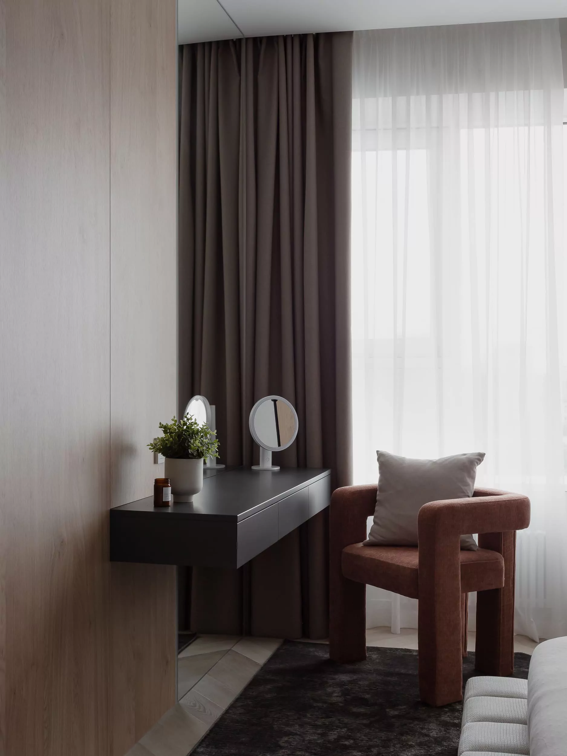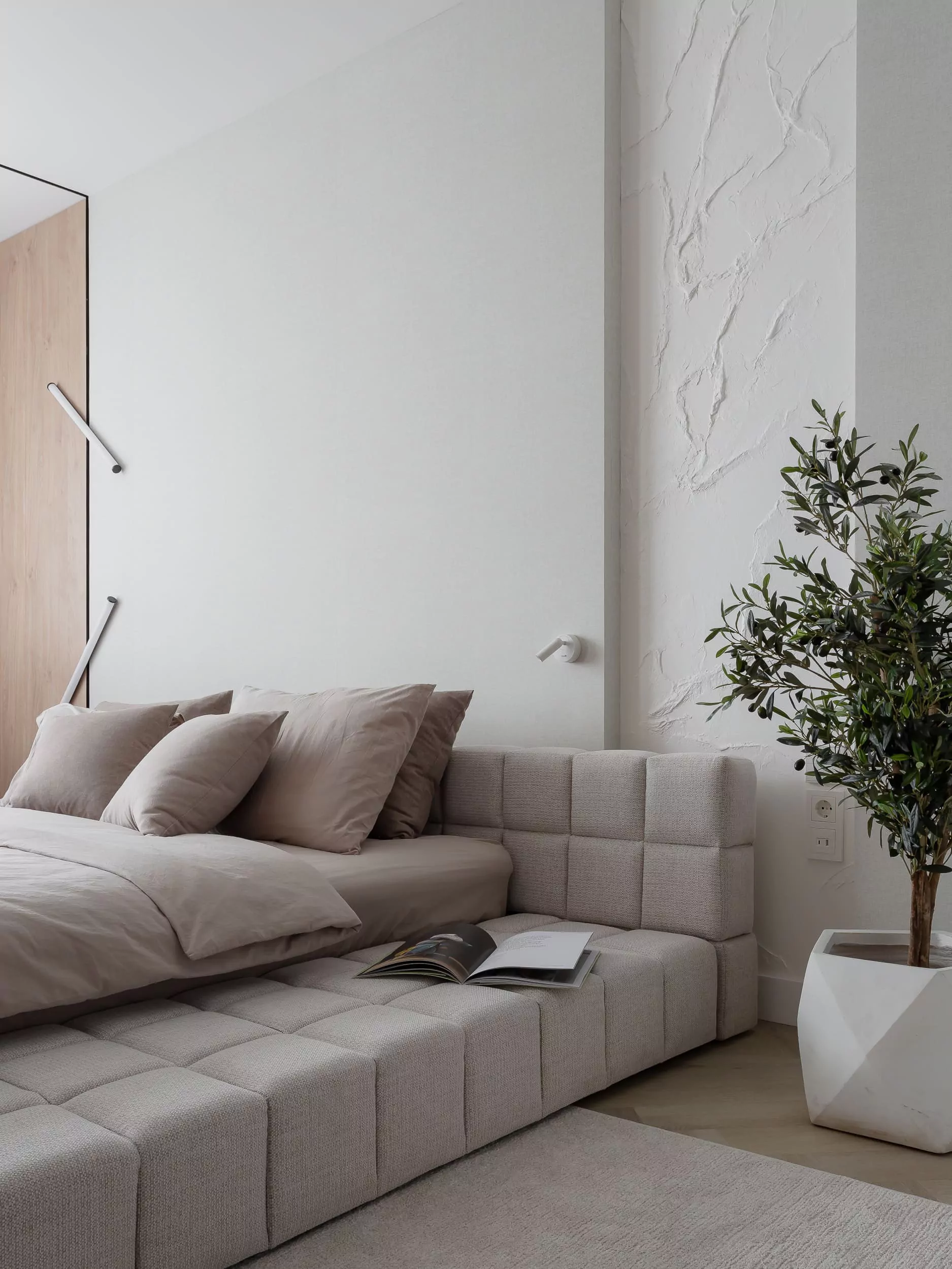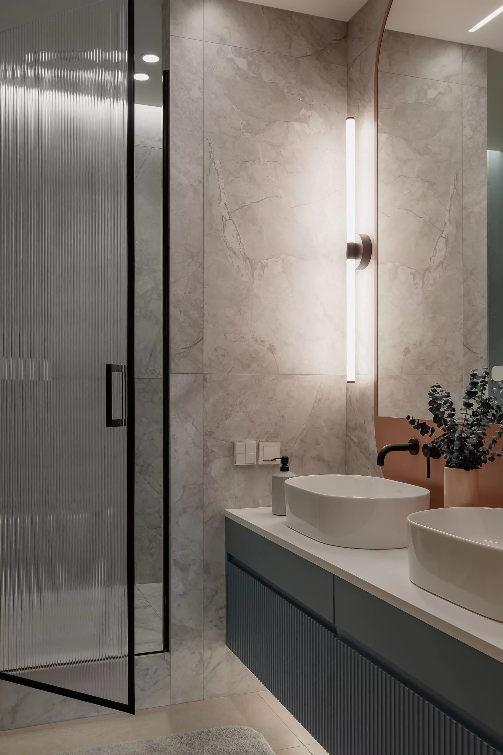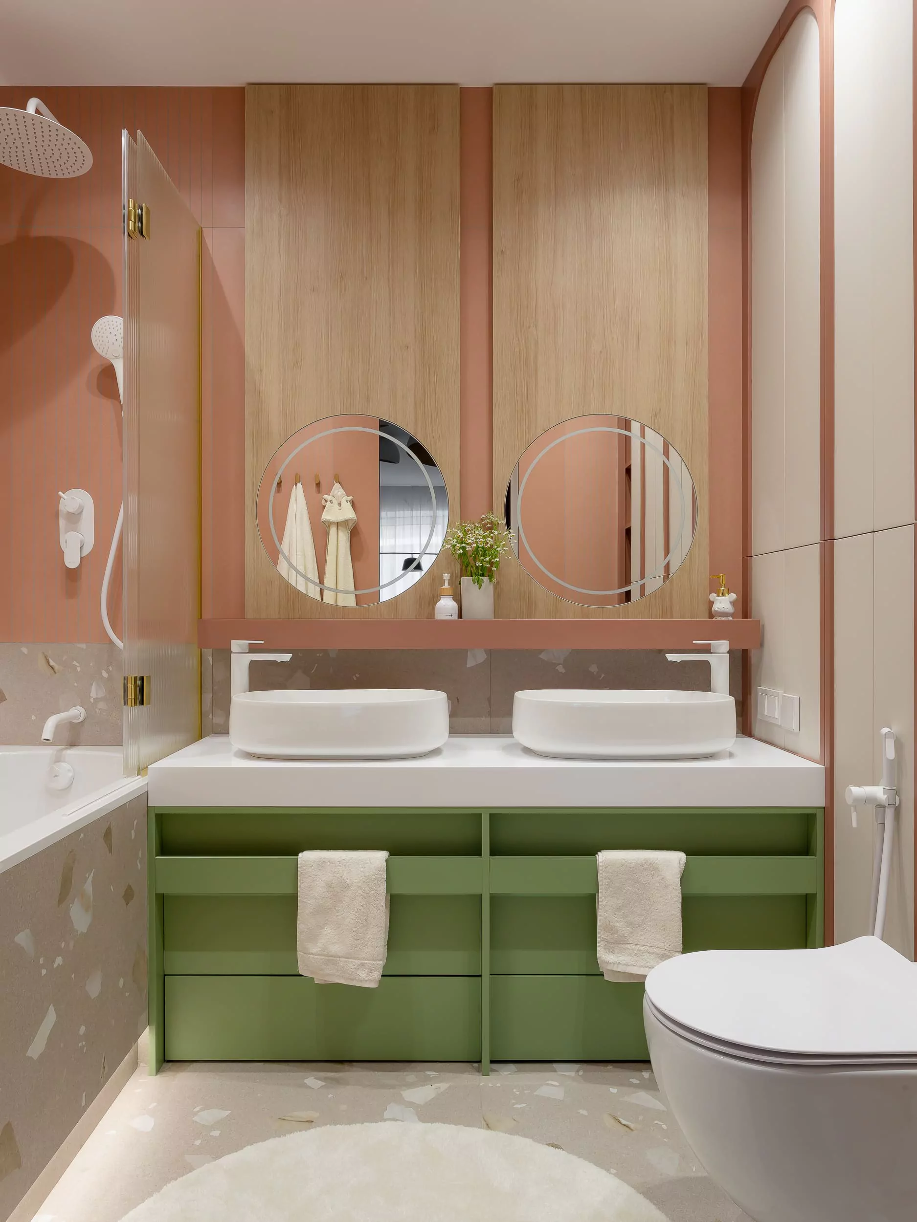 Живые фото реализованного интерьера в ЖК Клевер парк. Трапецевидные формы помещений радиальной квартиры добавили динамики, не потеряв в функциональности и эстетике. Мы использовали самые мягкие, пастельные и пудровые оттенки, чтобы добиться желаемого клиентам ощущения легкости и воздушности.