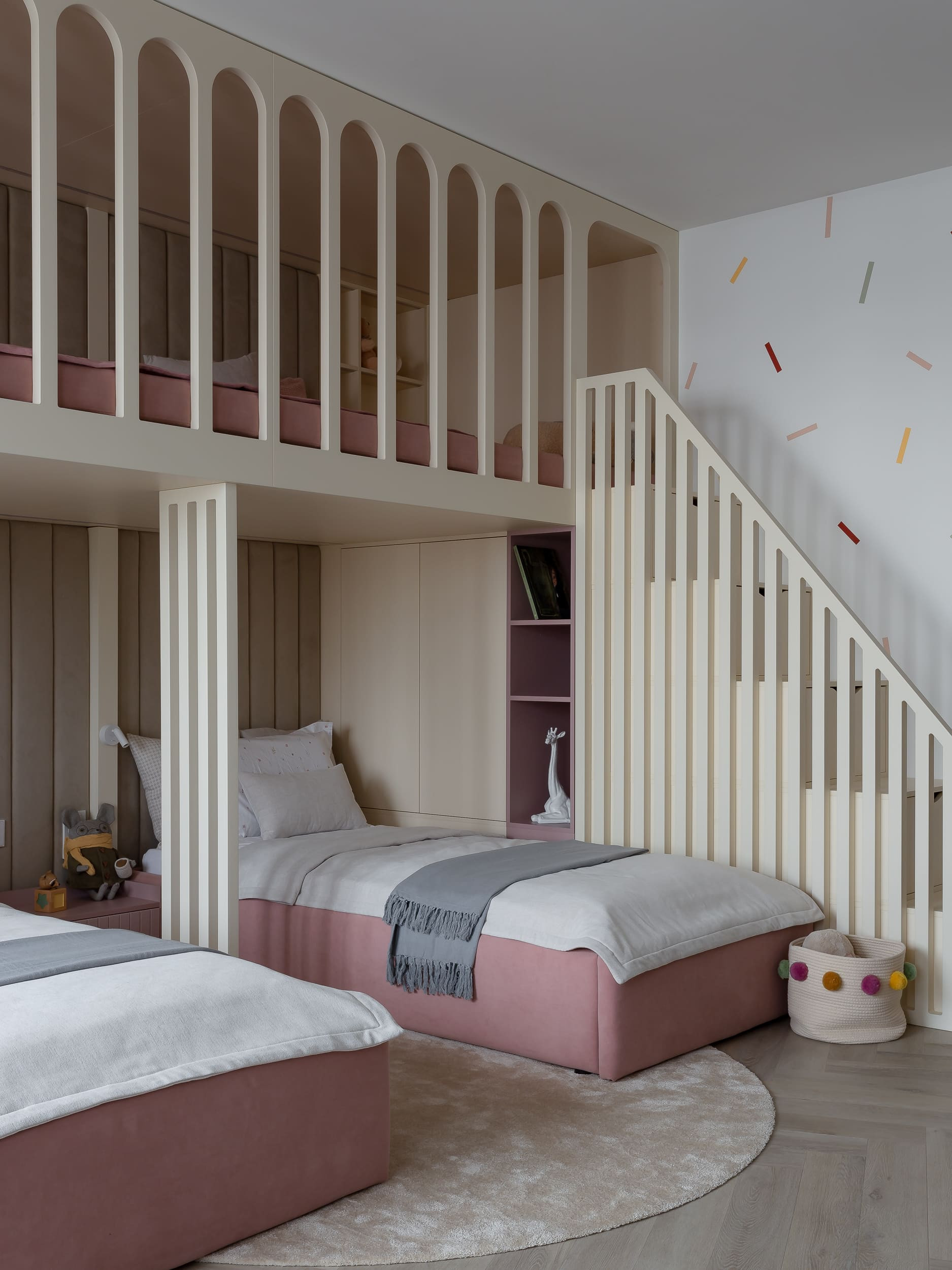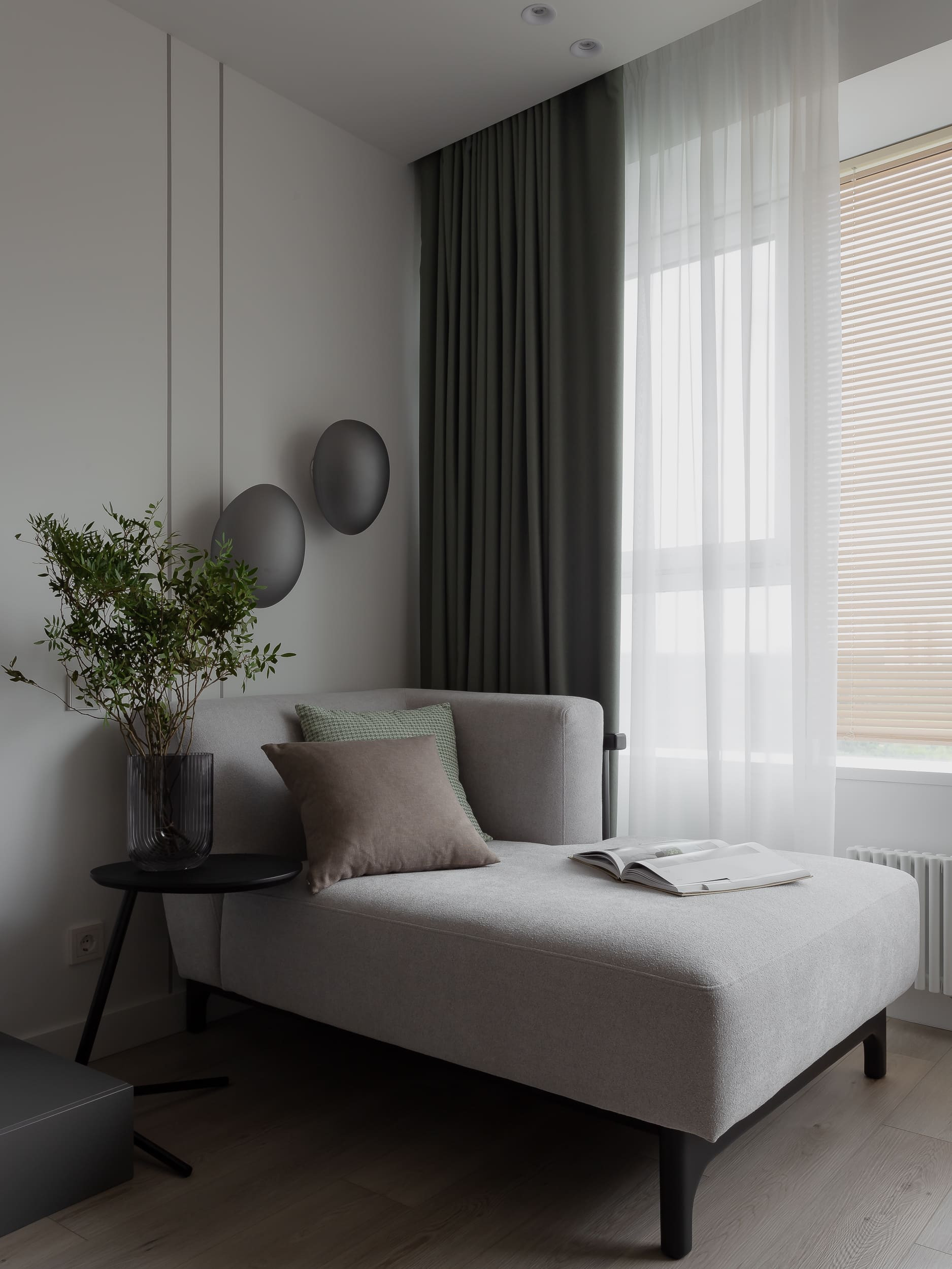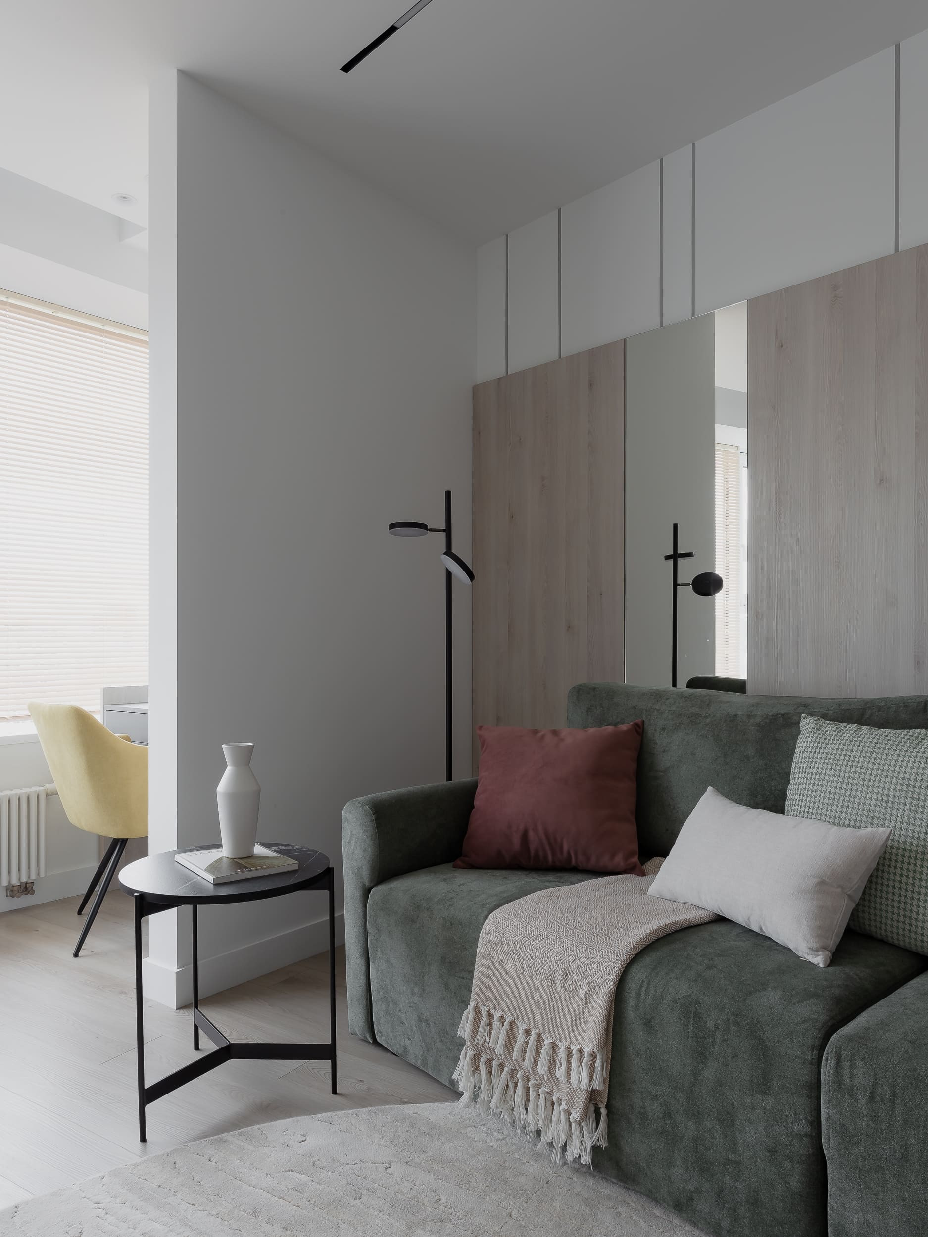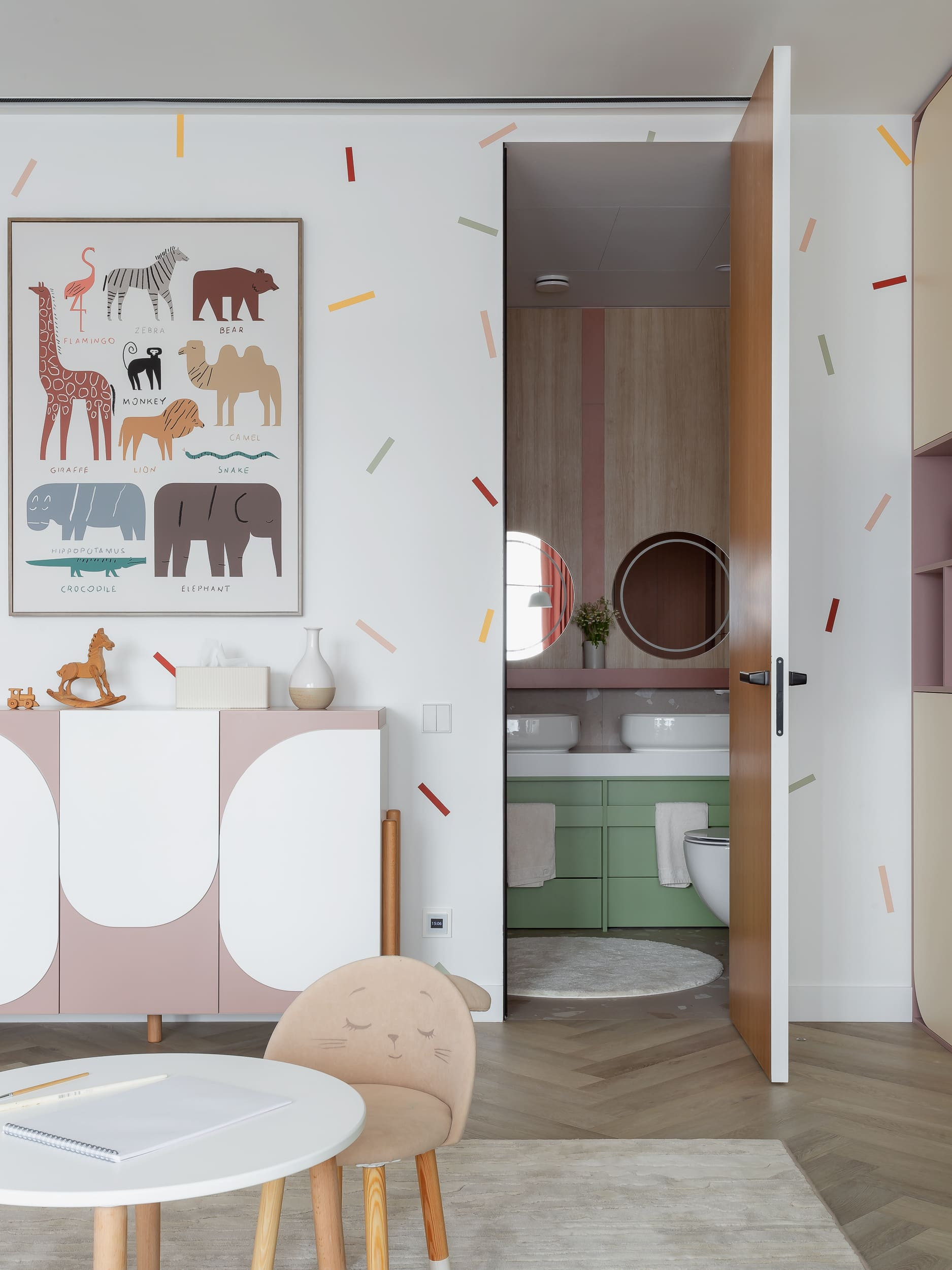 Живые фото реализованного интерьера в ЖК Клевер парк. Трапецевидные формы помещений радиальной квартиры добавили динамики, не потеряв в функциональности и эстетике. Мы использовали самые мягкие, пастельные и пудровые оттенки, чтобы добиться желаемого клиентам ощущения легкости и воздушности.