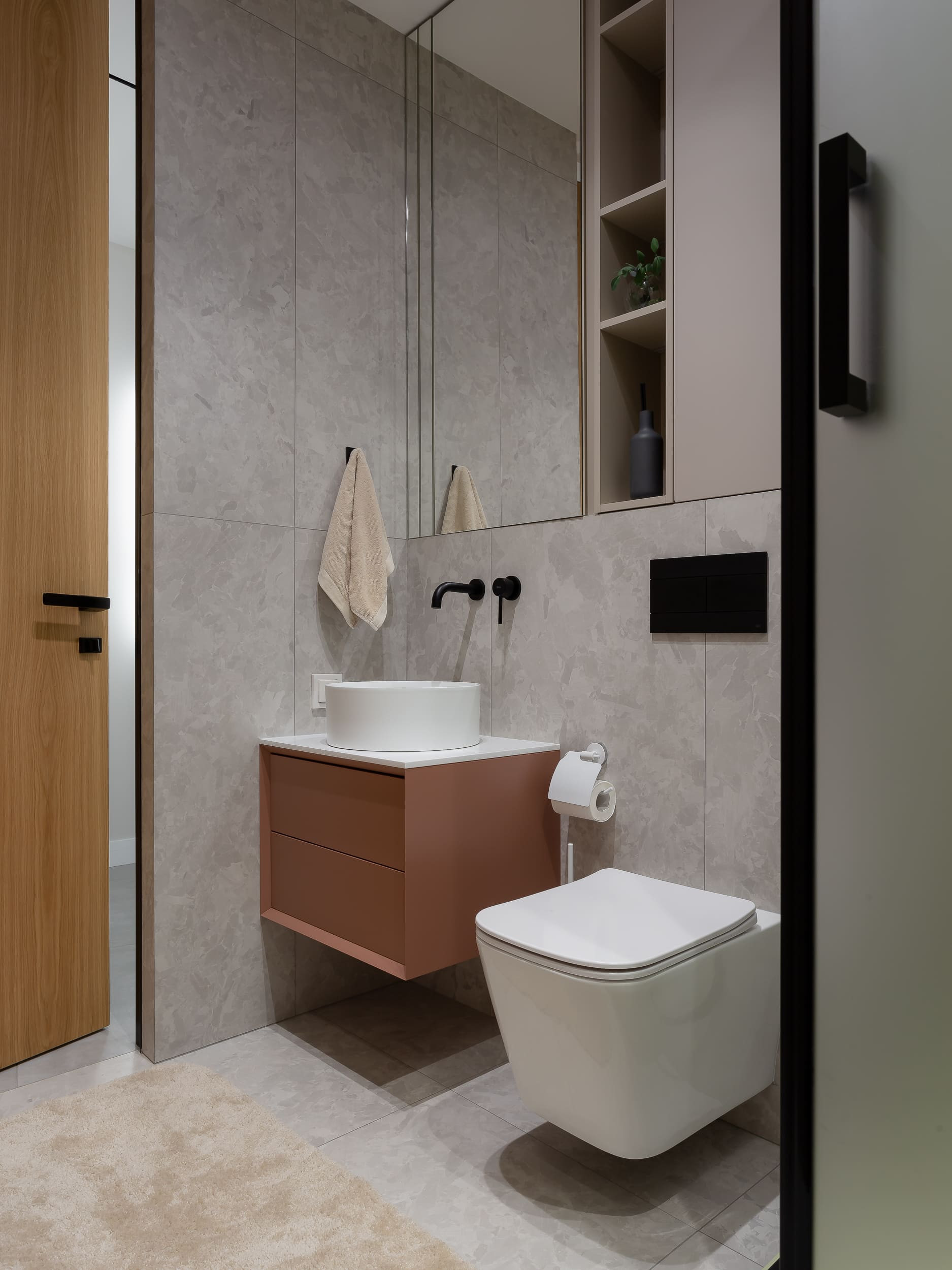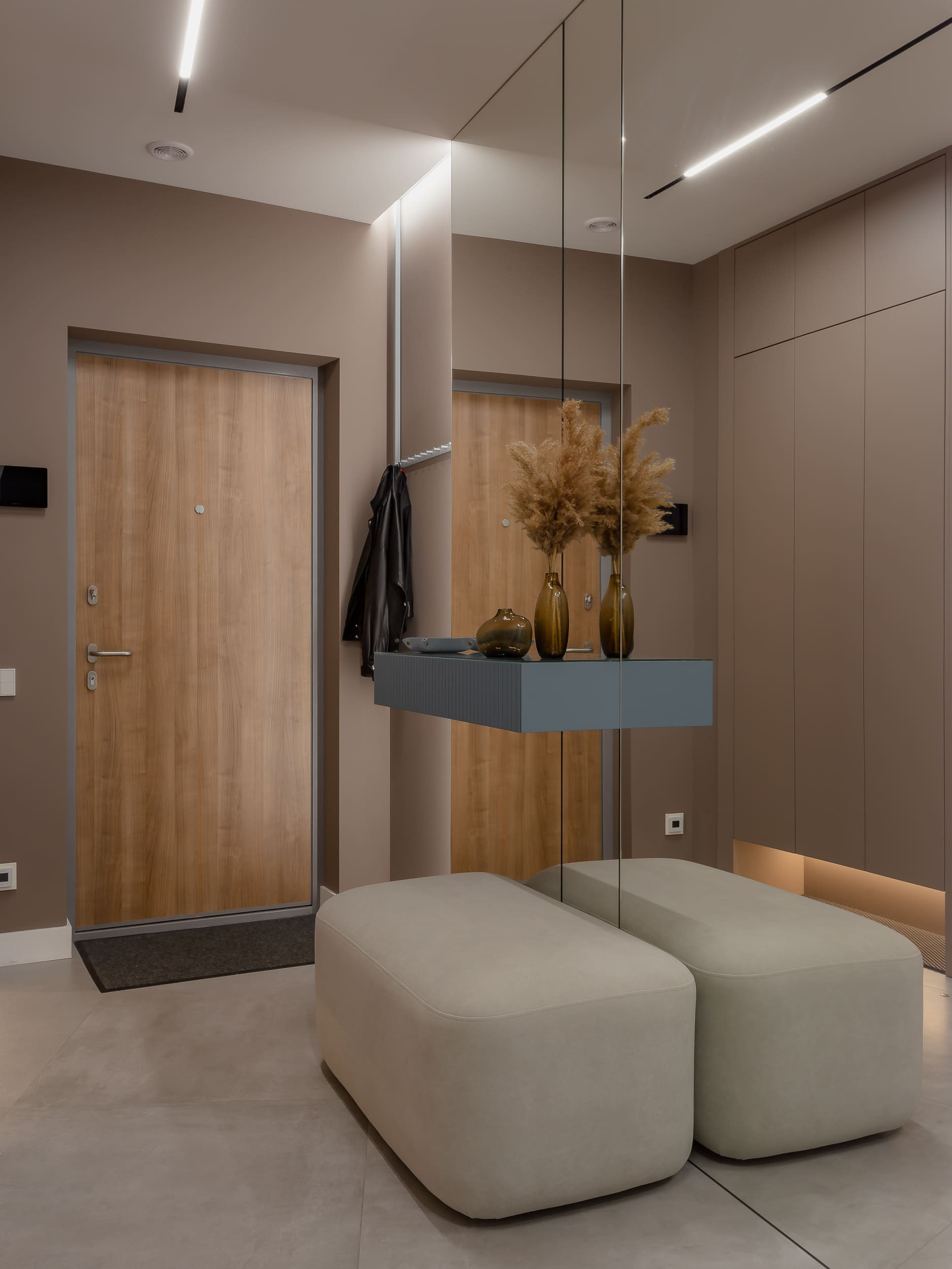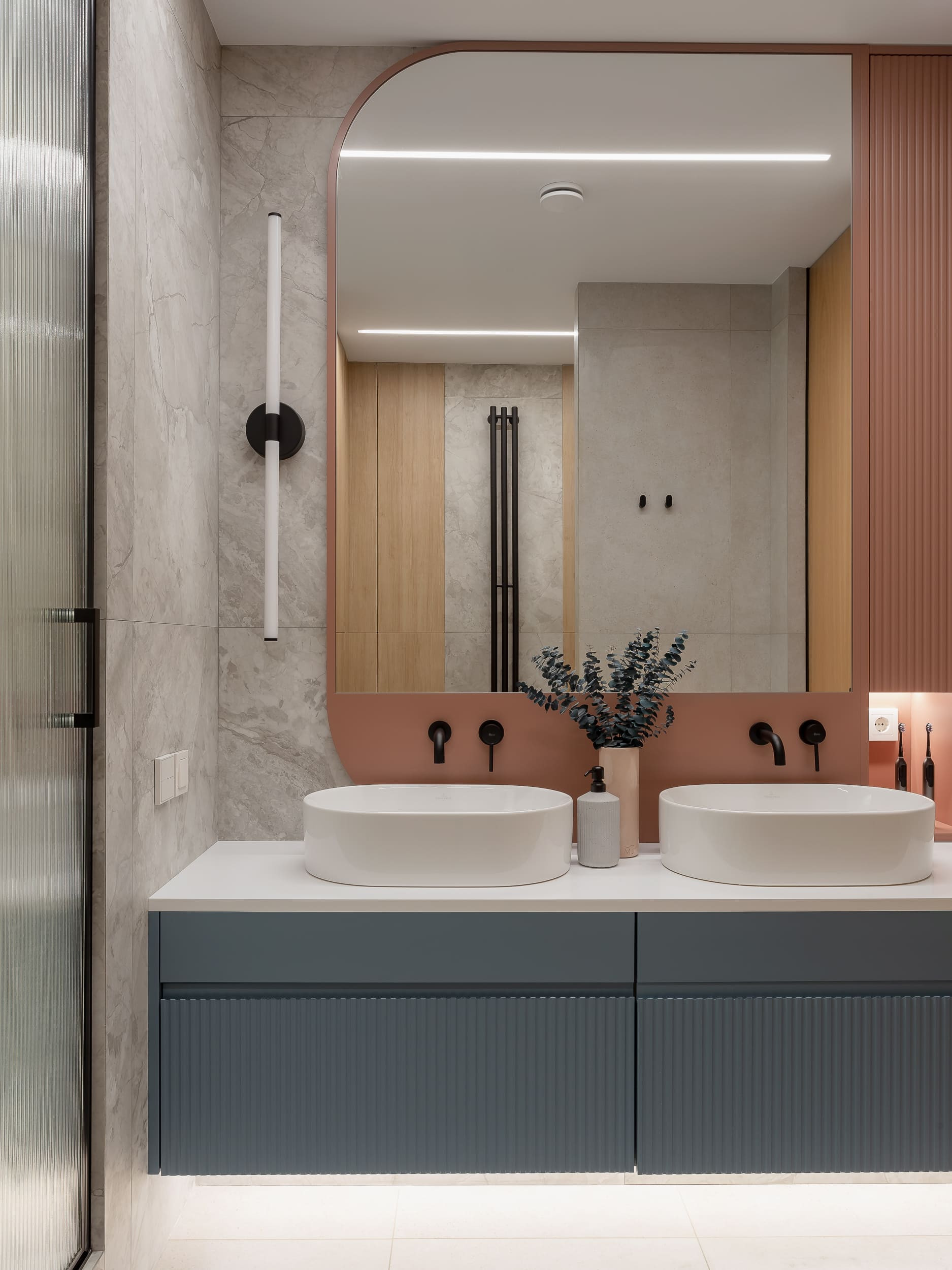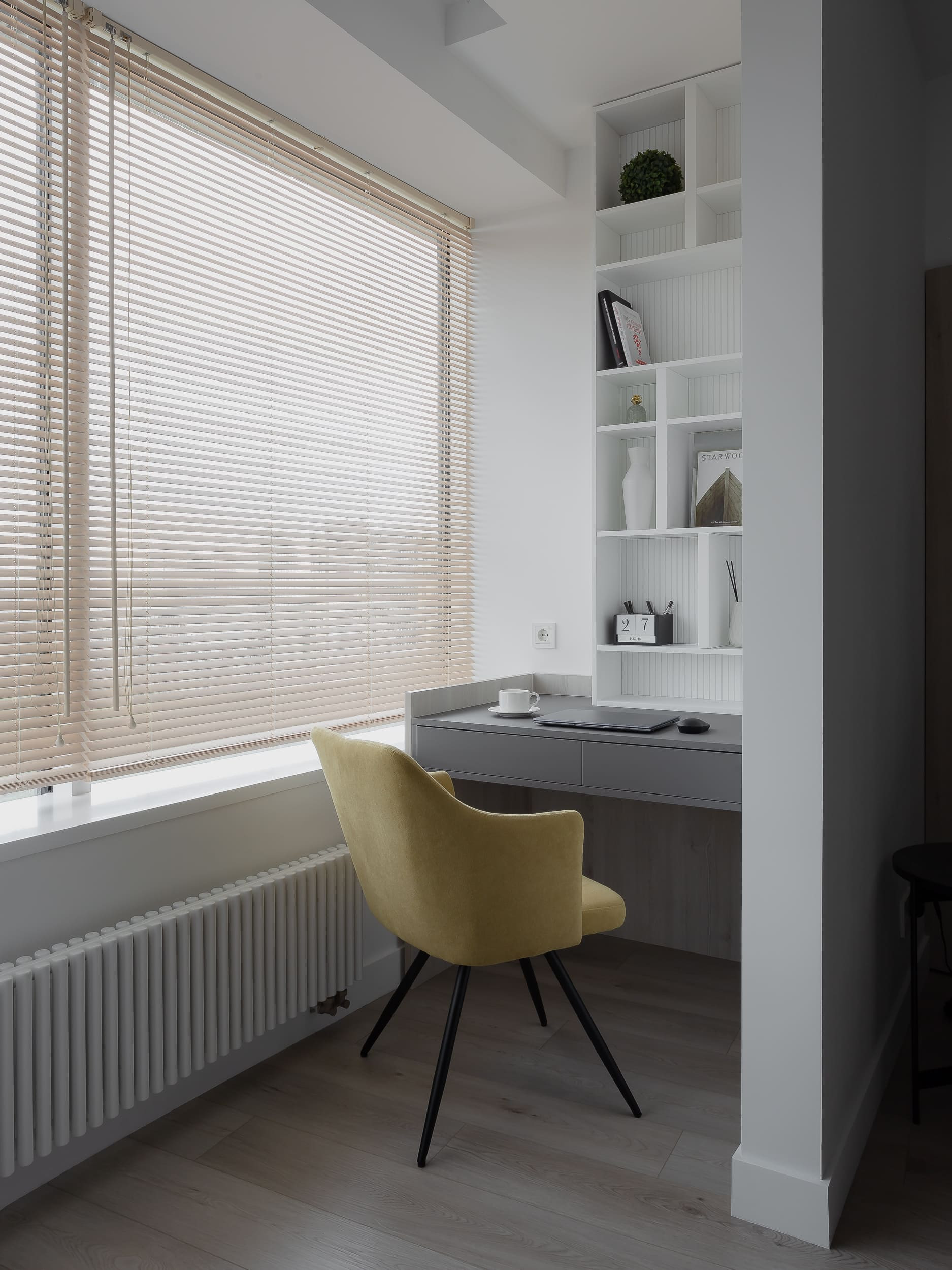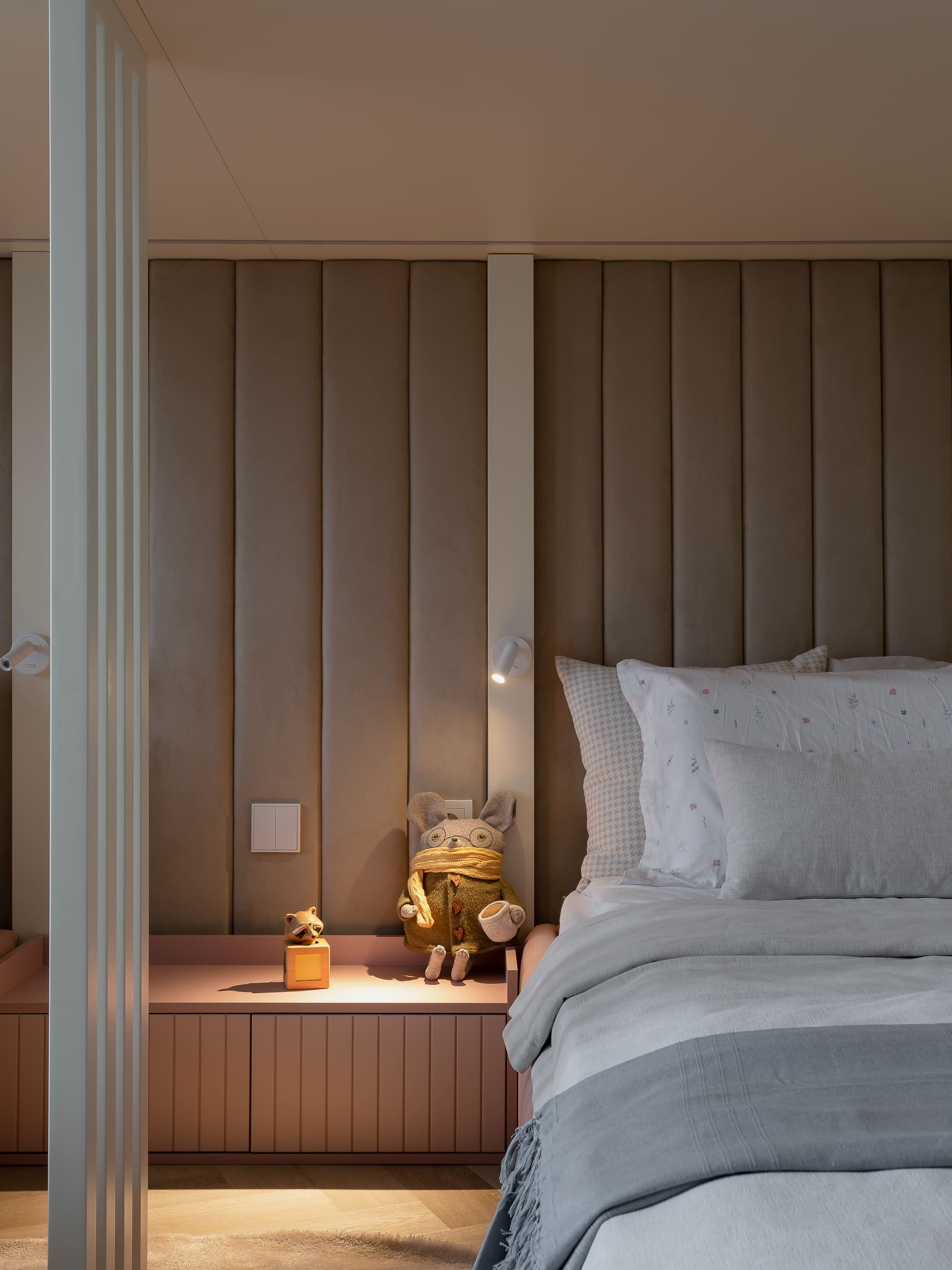 Живые фото реализованного интерьера в ЖК Клевер парк. Трапецевидные формы помещений радиальной квартиры добавили динамики, не потеряв в функциональности и эстетике. Мы использовали самые мягкие, пастельные и пудровые оттенки, чтобы добиться желаемого клиентам ощущения легкости и воздушности.