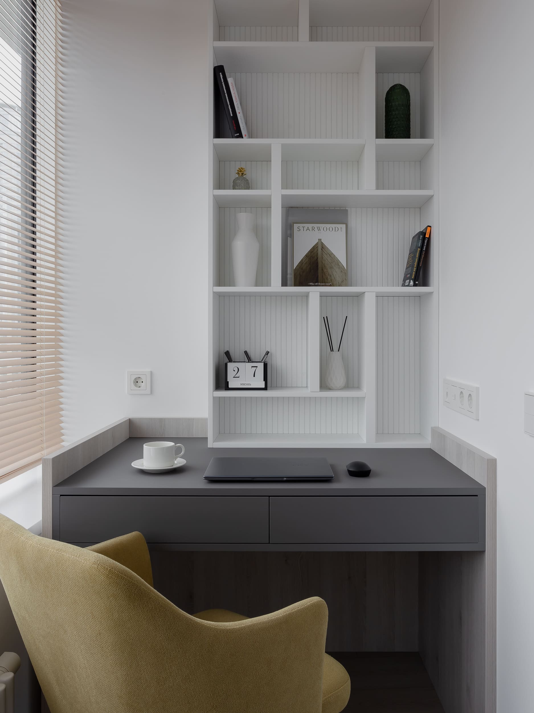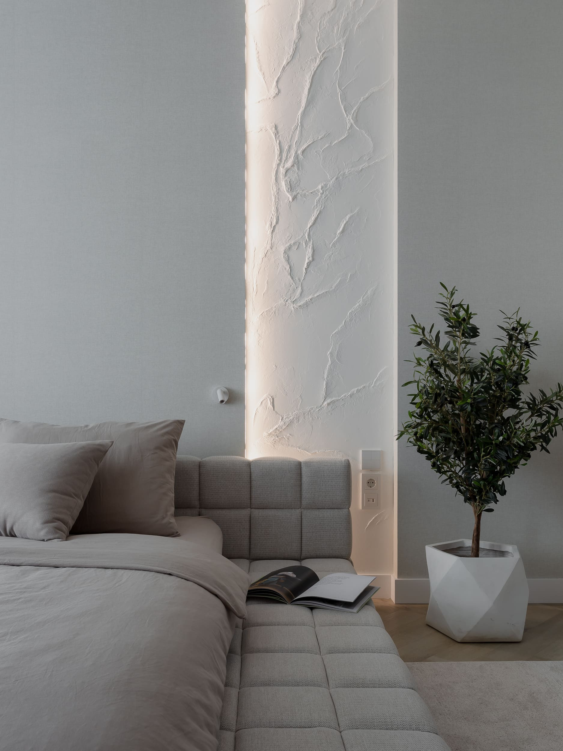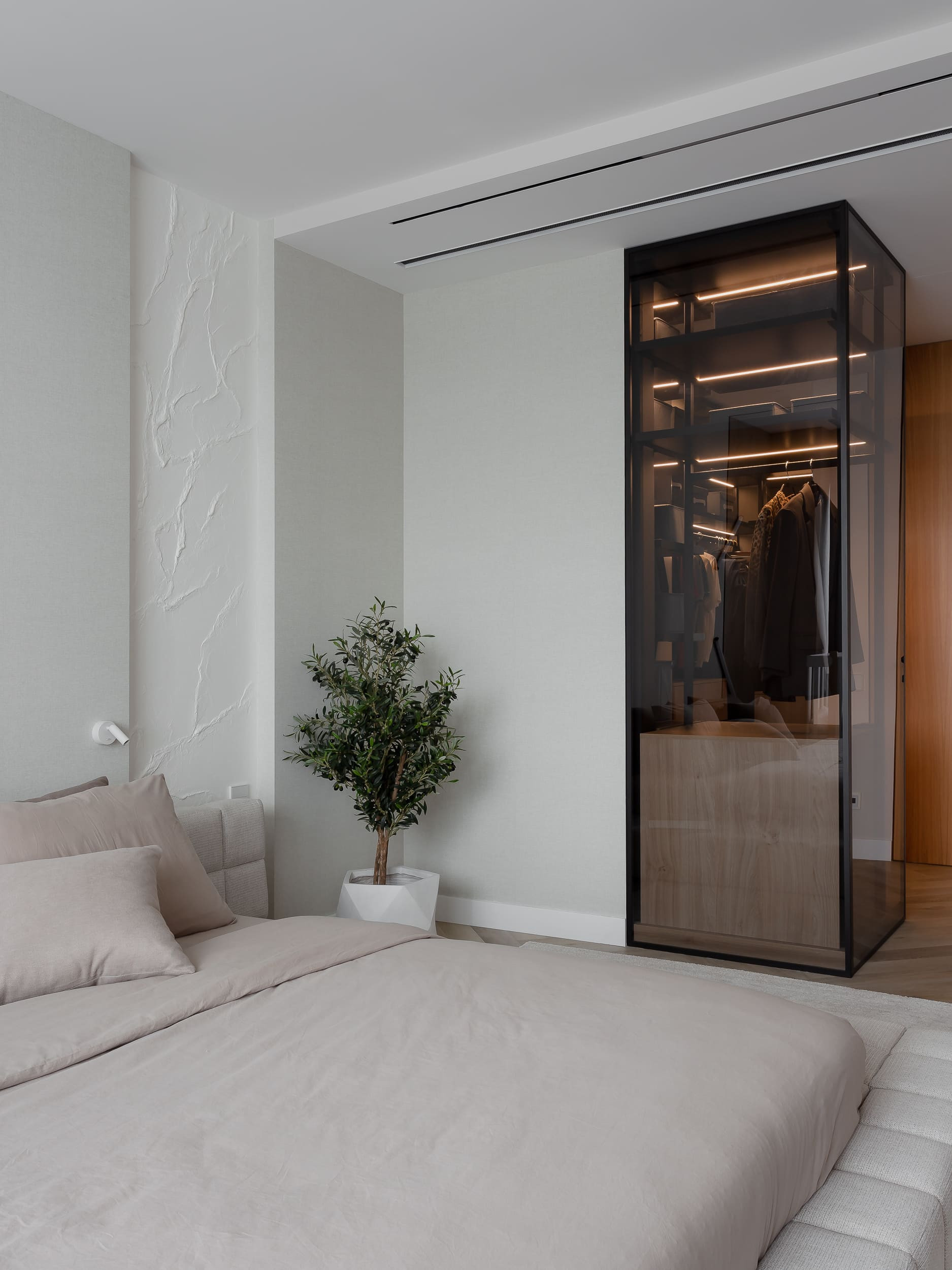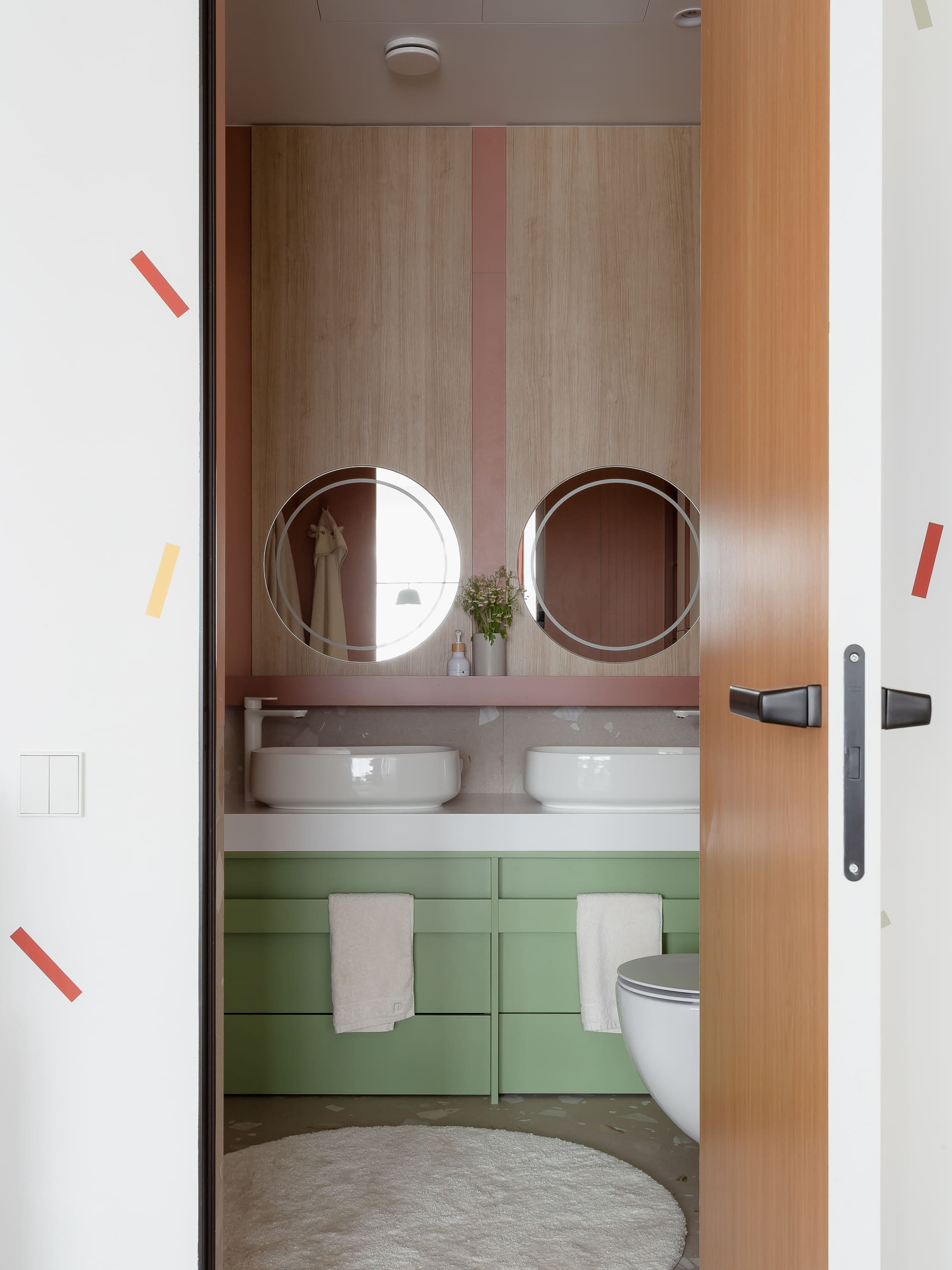 Живые фото реализованного интерьера в ЖК Клевер парк. Трапецевидные формы помещений радиальной квартиры добавили динамики, не потеряв в функциональности и эстетике. Мы использовали самые мягкие, пастельные и пудровые оттенки, чтобы добиться желаемого клиентам ощущения легкости и воздушности.