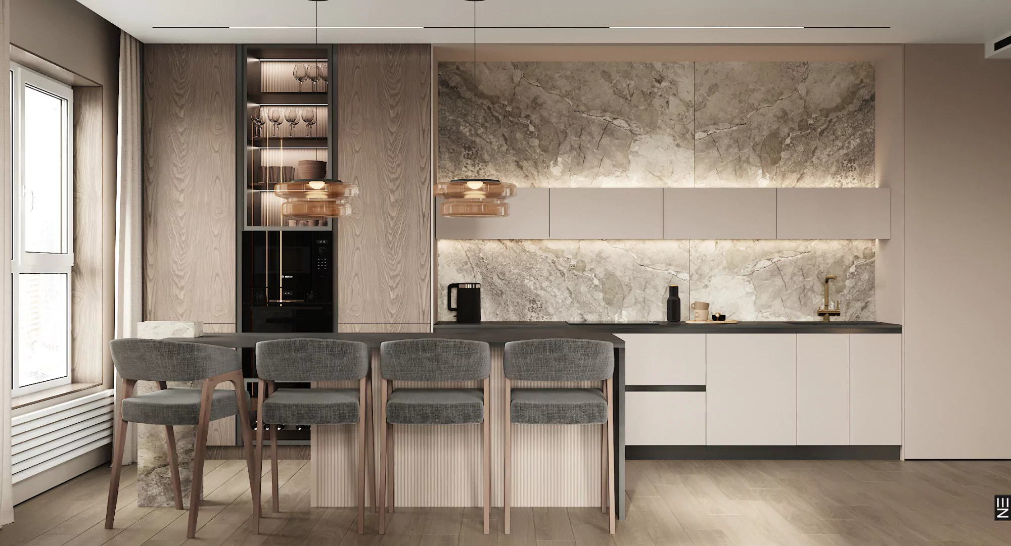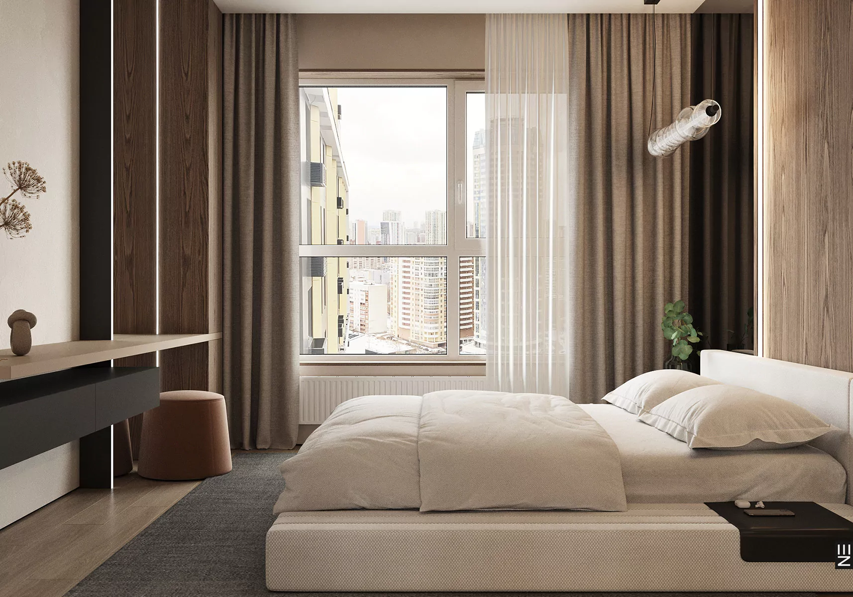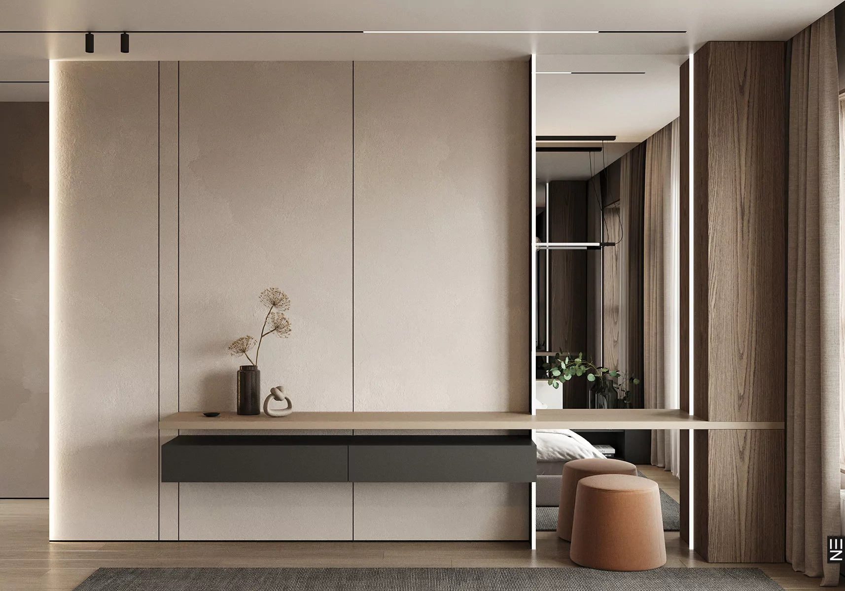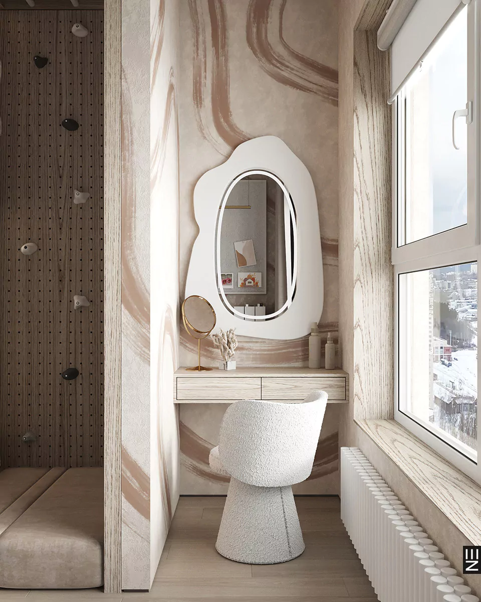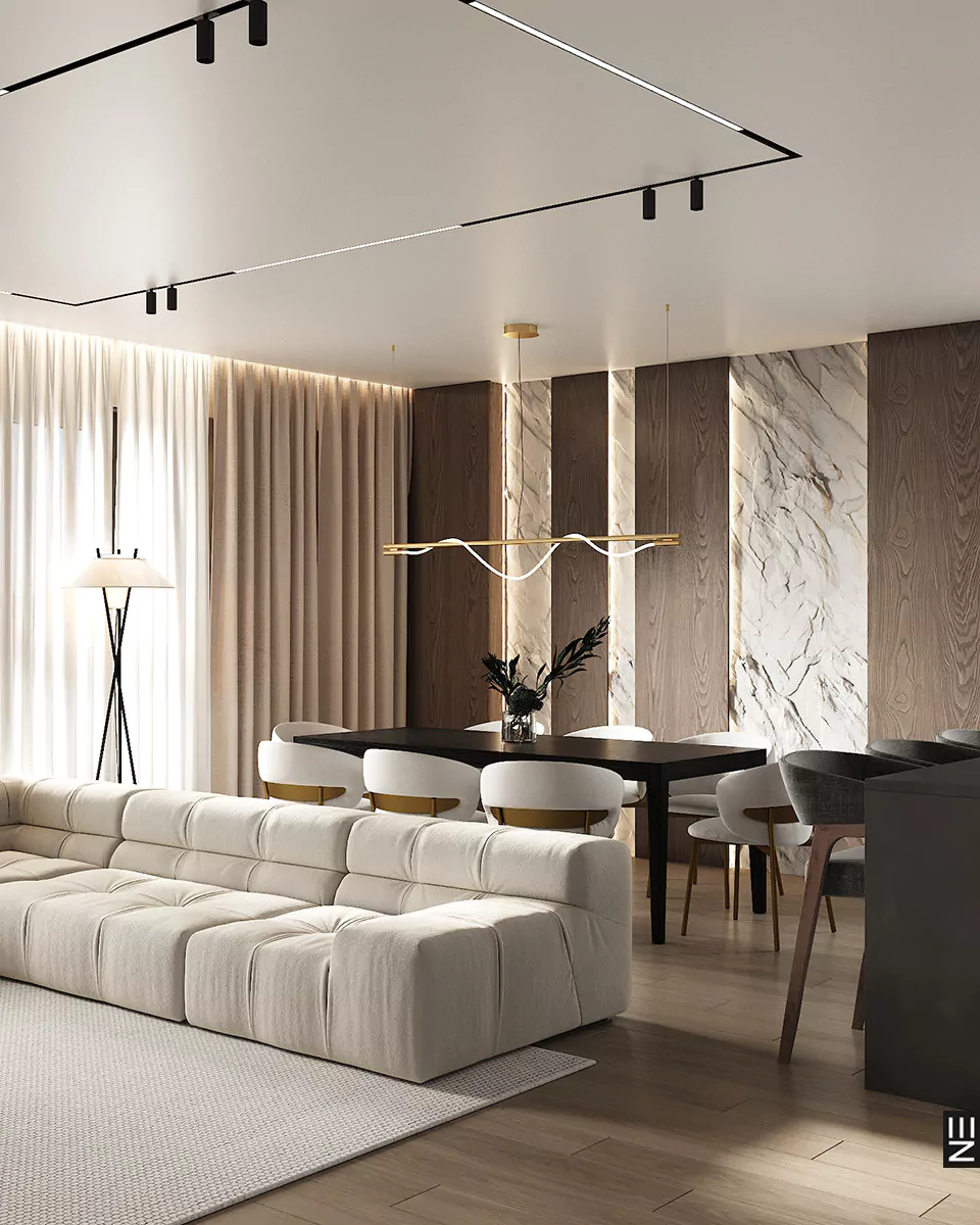 Квартира площадью 160 м² в ЖК «Клевер Парк» в Екатеринбурге — это современное пространство, оформленное в стиле минимализм с акцентом на натуральные материалы и глубокие цветовые акценты. Дизайн интерьера от студии Neapol Design включает кухню, гостиную, прихожую, спальни, три детские комнаты и ванные комнаты, каждая из которых продумана до мелочей. Функциональность и технологичность сочетаются с эстетикой и уютом, создавая гармоничную атмосферу для современной жизни.