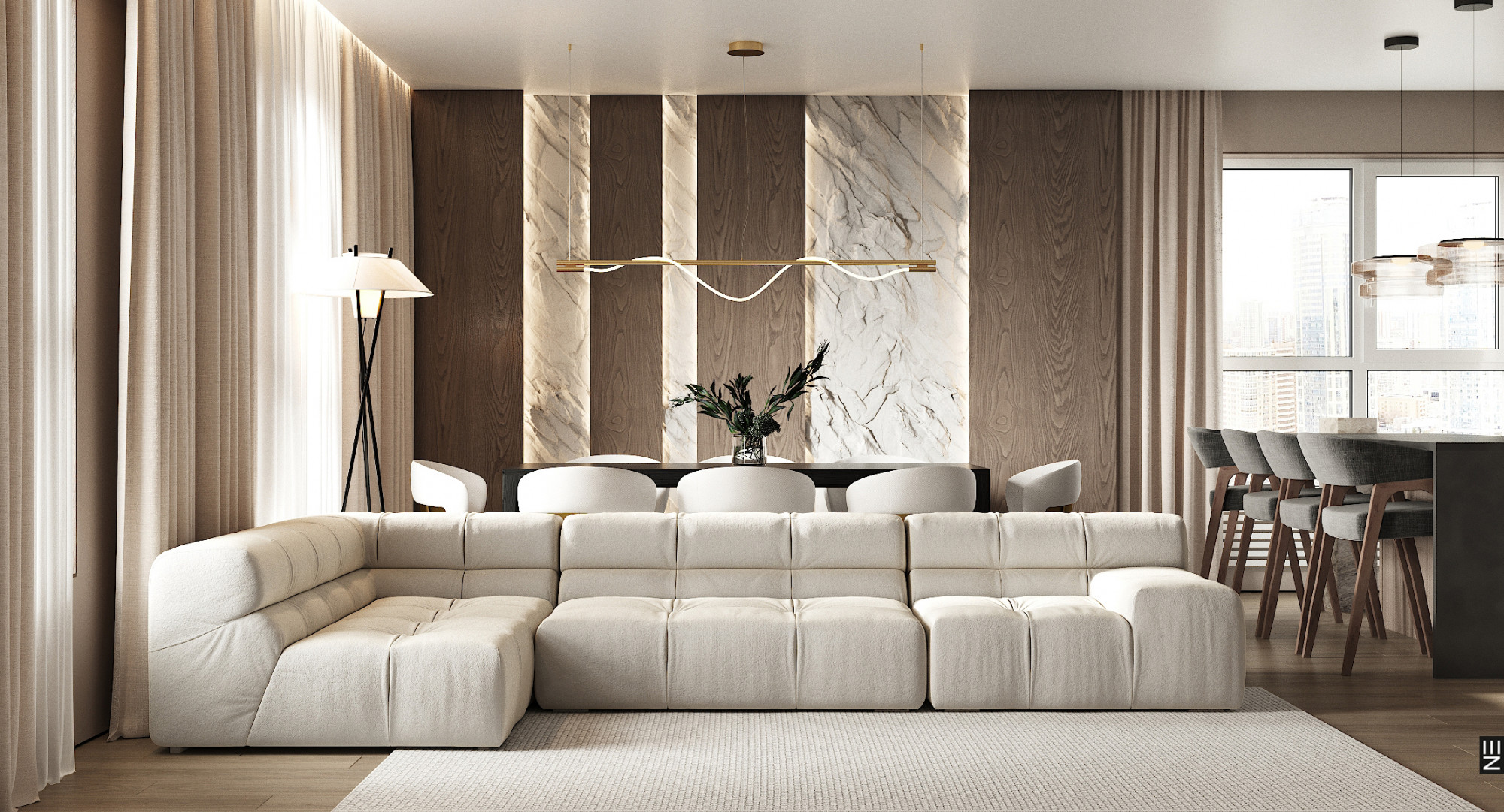 Квартира площадью 160 м² в ЖК «Клевер Парк» в Екатеринбурге — это современное пространство, оформленное в стиле минимализм с акцентом на натуральные материалы и глубокие цветовые акценты. Дизайн интерьера от студии Neapol Design включает кухню, гостиную, прихожую, спальни, три детские комнаты и ванные комнаты, каждая из которых продумана до мелочей. Функциональность и технологичность сочетаются с эстетикой и уютом, создавая гармоничную атмосферу для современной жизни.