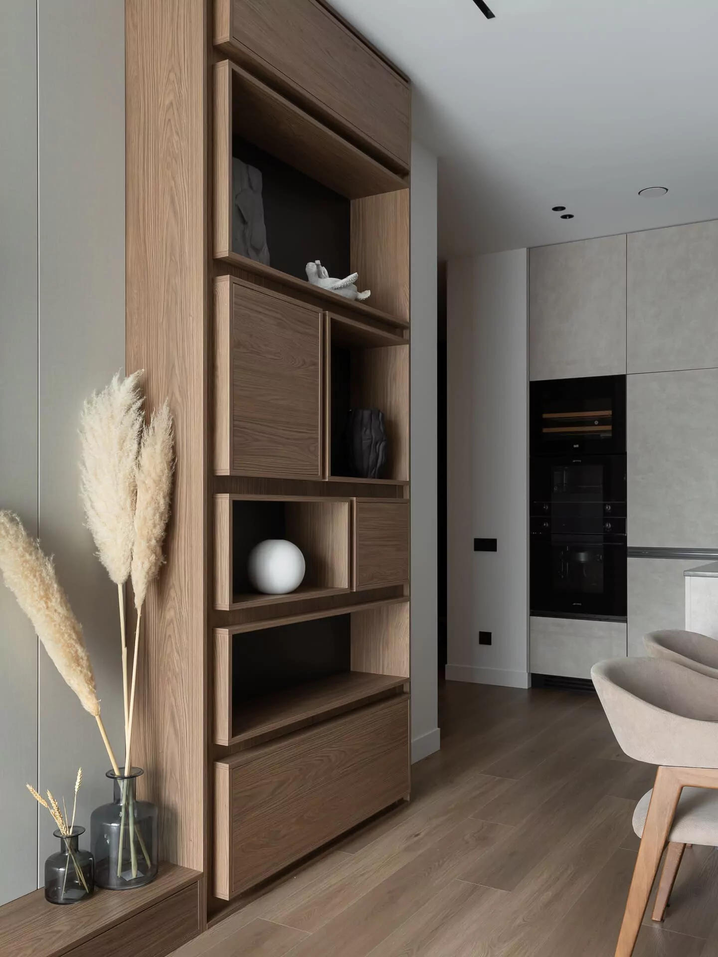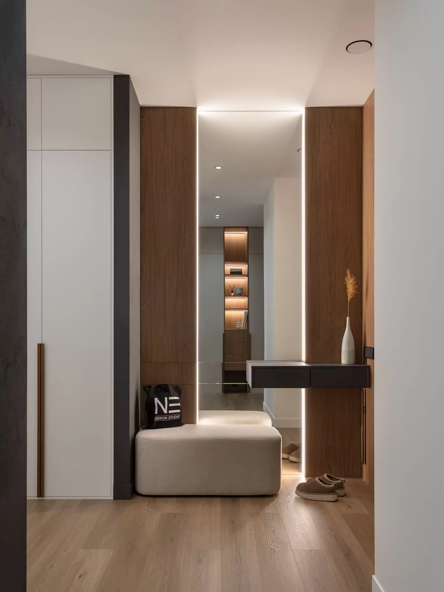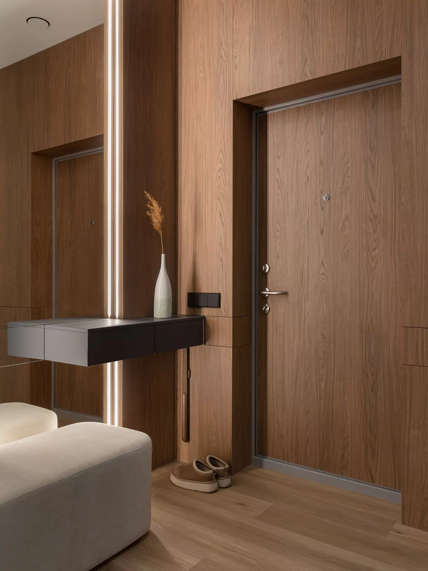 Квартира 124 м² в ЖК «Клевер Парк» в Екатеринбурге — интерьер с характером и уверенной глубиной. В этом дизайне интерьера Neapol Design делает ставку на тёмные тона, графику и выразительные материалы: насыщенные древесные поверхности, матовые фактуры, контраст светлых плоскостей и акцентного света собирают пространство в цельный, «дорогой» силуэт. Общественная зона звучит как строгий фон для жизни — без суеты, с точными линиями и продуманной эргономикой. Это дизайн-проект квартиры, где уют рождается не из «воздуха», а из правильно выстроенного света, тактильности и спокойной силы композиции