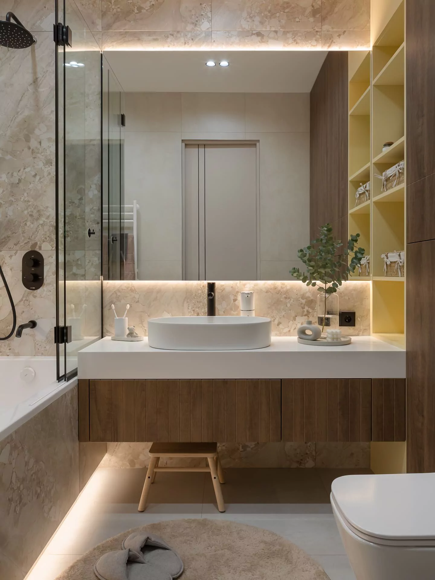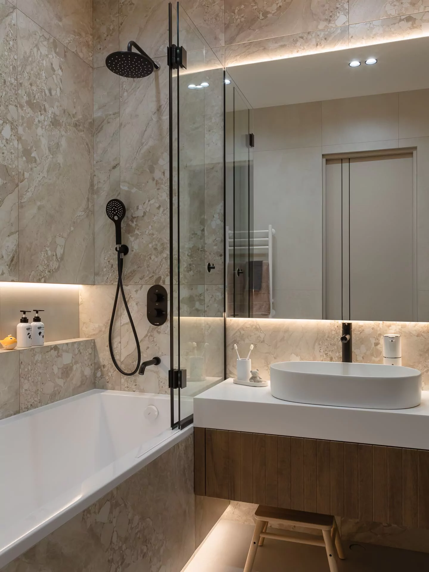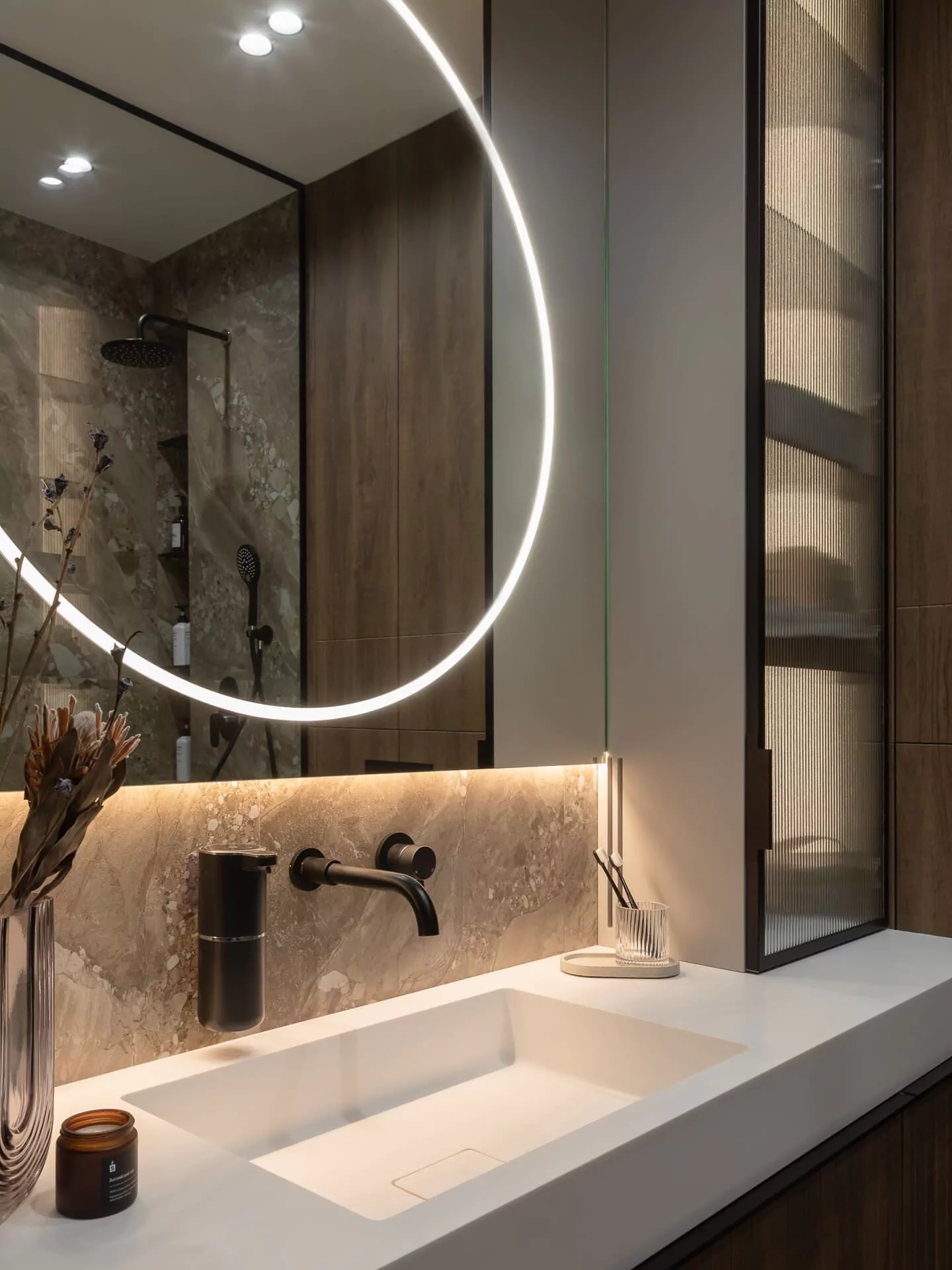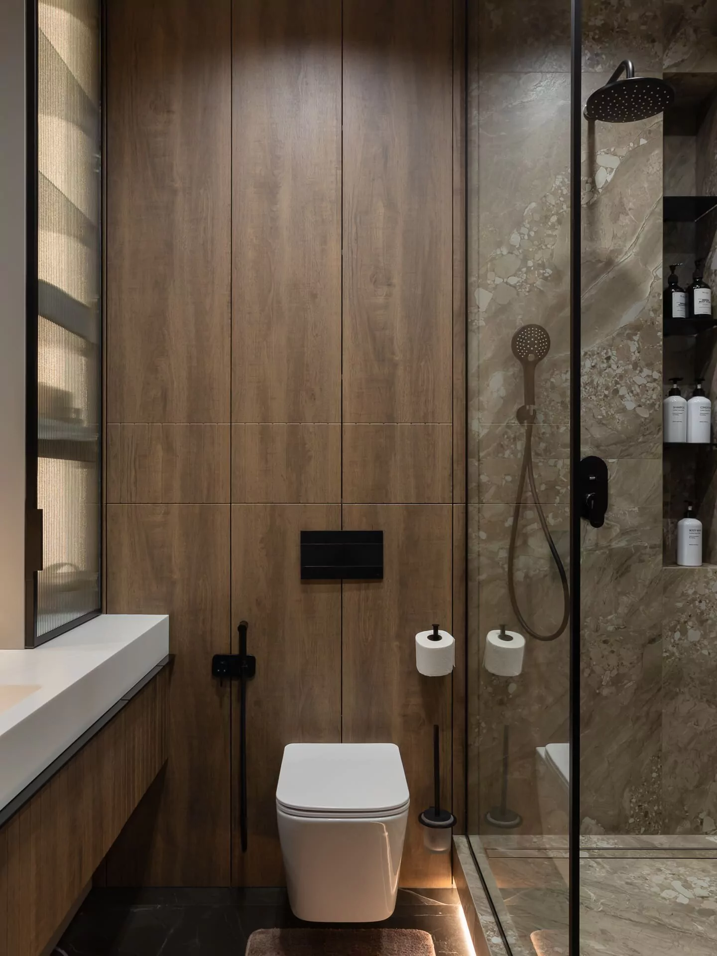 Квартира 124 м² в ЖК «Клевер Парк» в Екатеринбурге — интерьер с характером и уверенной глубиной. В этом дизайне интерьера Neapol Design делает ставку на тёмные тона, графику и выразительные материалы: насыщенные древесные поверхности, матовые фактуры, контраст светлых плоскостей и акцентного света собирают пространство в цельный, «дорогой» силуэт. Общественная зона звучит как строгий фон для жизни — без суеты, с точными линиями и продуманной эргономикой. Это дизайн-проект квартиры, где уют рождается не из «воздуха», а из правильно выстроенного света, тактильности и спокойной силы композиции