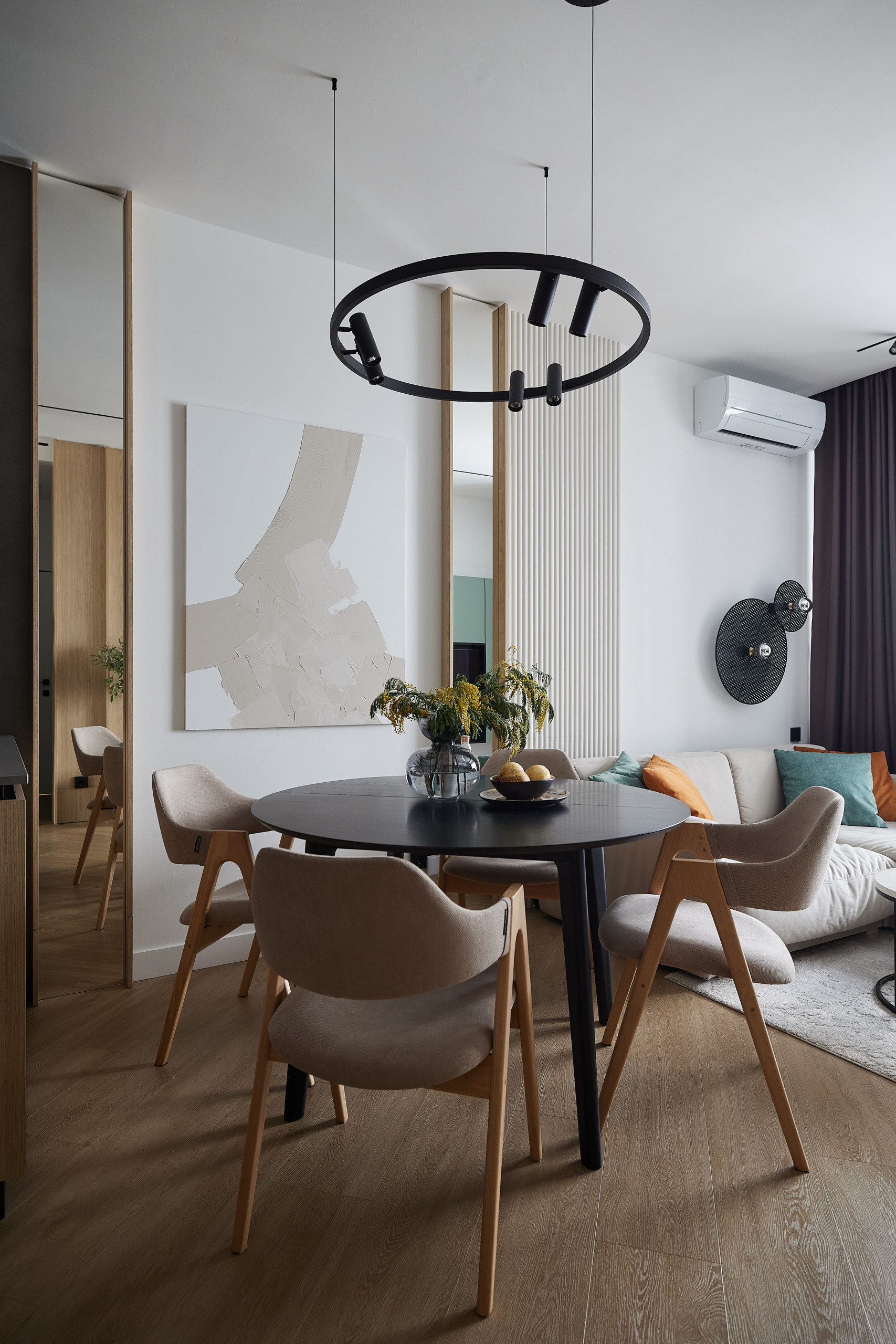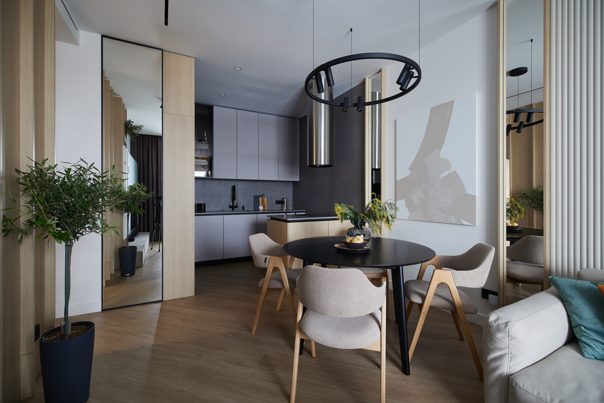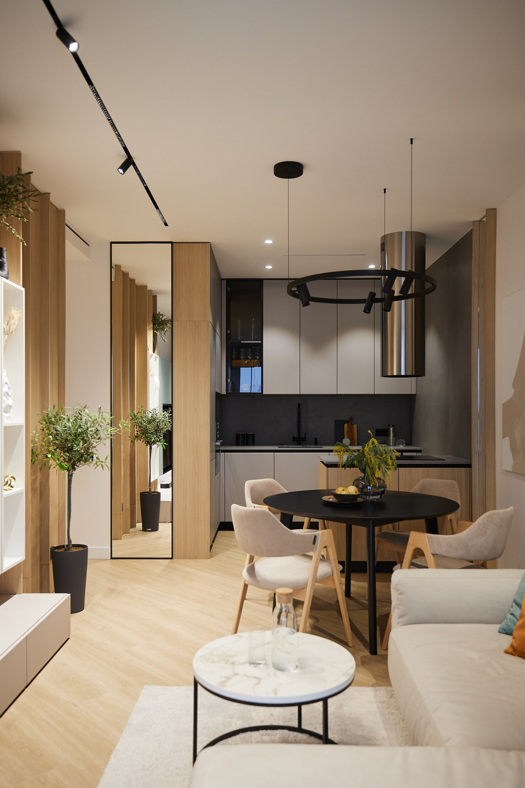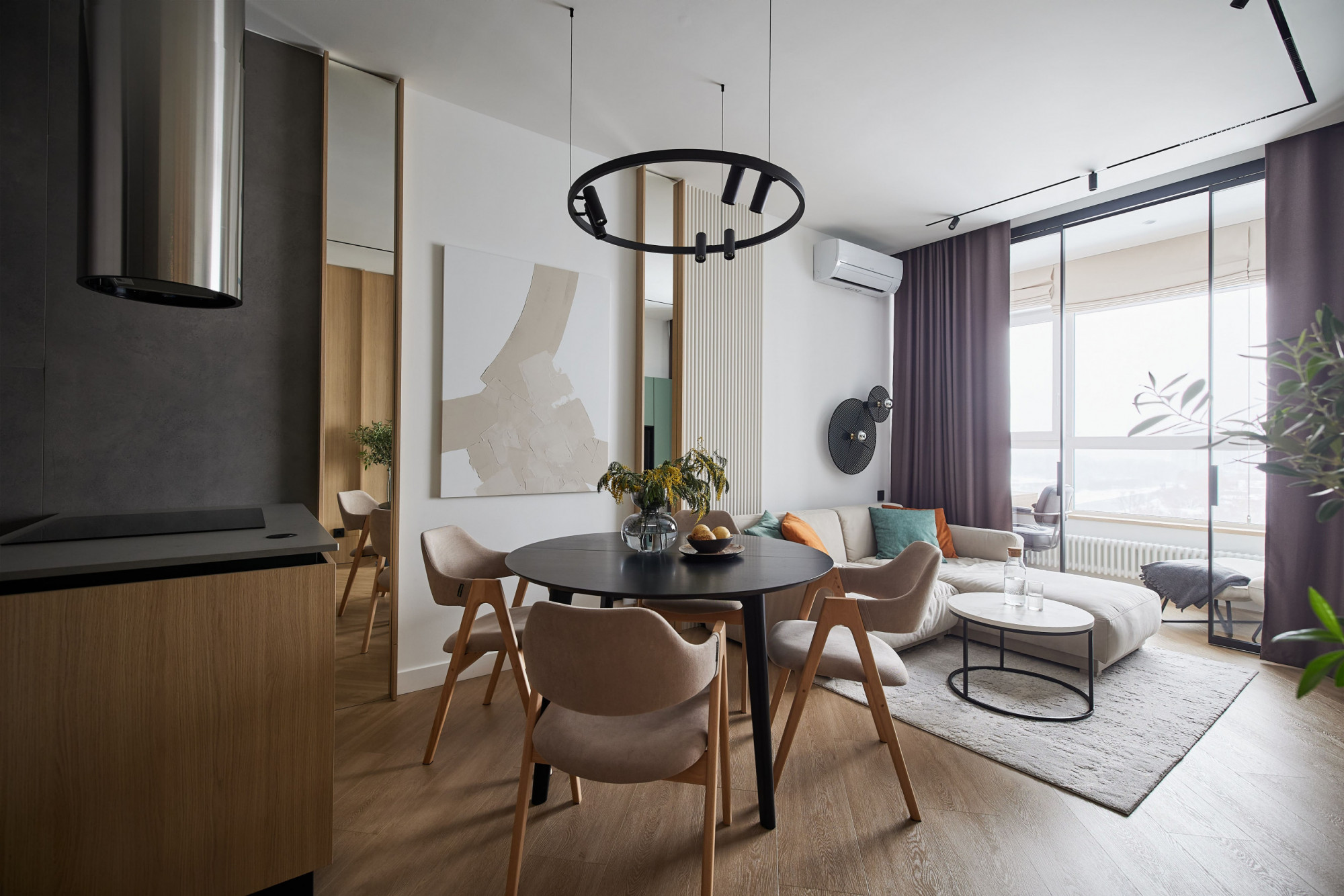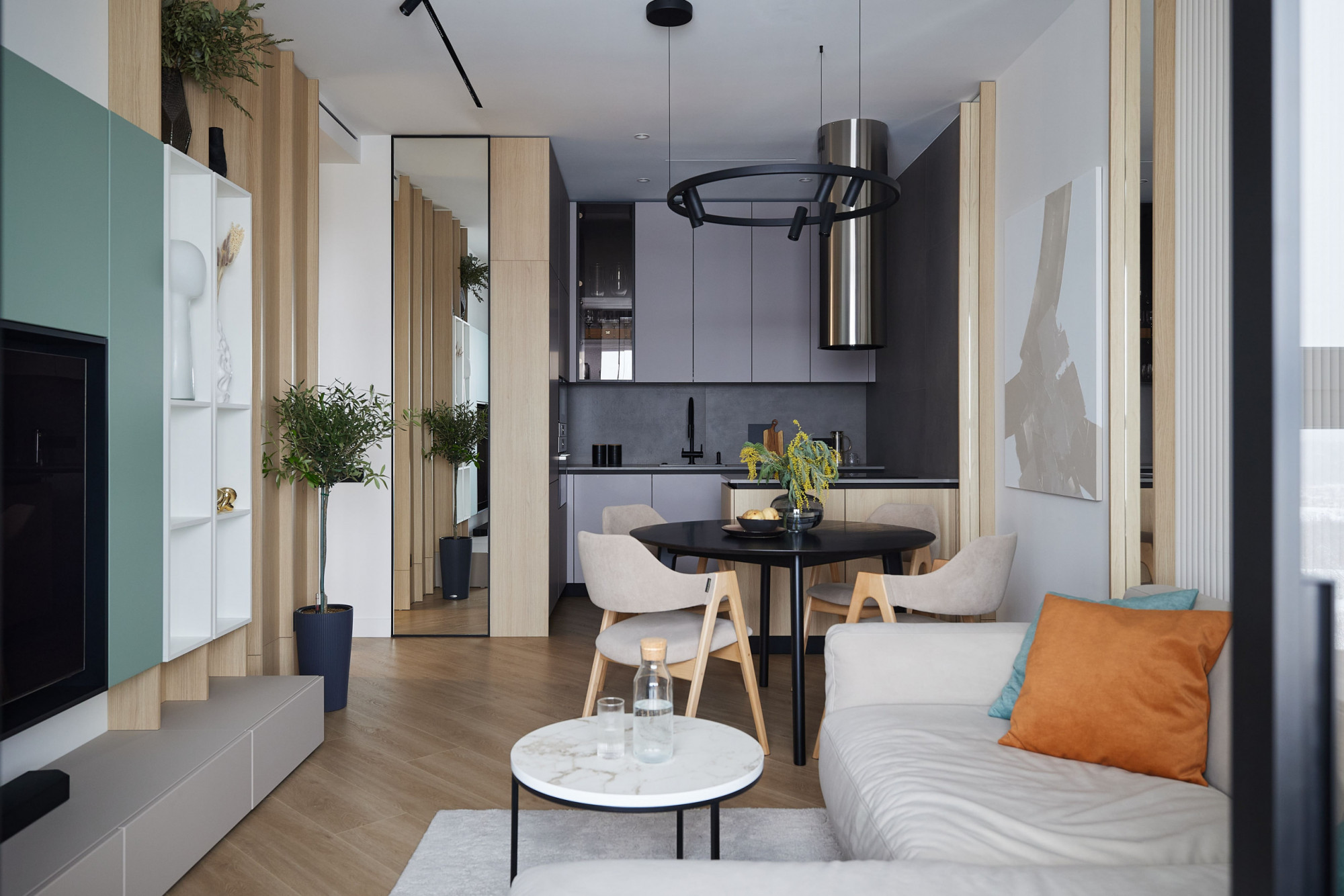 Компактная однокомнатная квартира площадью 53,4 м² в ЖК «Клевер Парк» в Екатеринбурге стала воплощением скандинавского стиля с динамичными акцентами лофта. Студия Neapol Design создала светлое и функциональное пространство, где натуральные материалы сочетаются с яркими деталями, придавая интерьеру характер и уют. Каждая зона — от кухни-гостиной до спальни и ванной комнаты — продумана до мелочей, обеспечивая комфорт и эстетическое наслаждение. Этот дизайн интерьера отражает современный подход к жизни в мегаполисе, сочетая практичность и стиль.