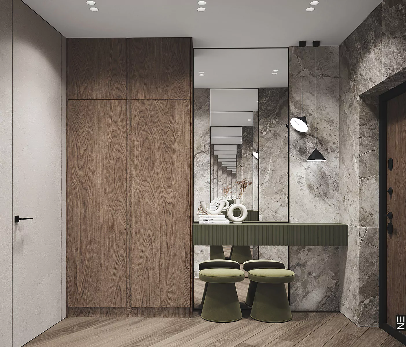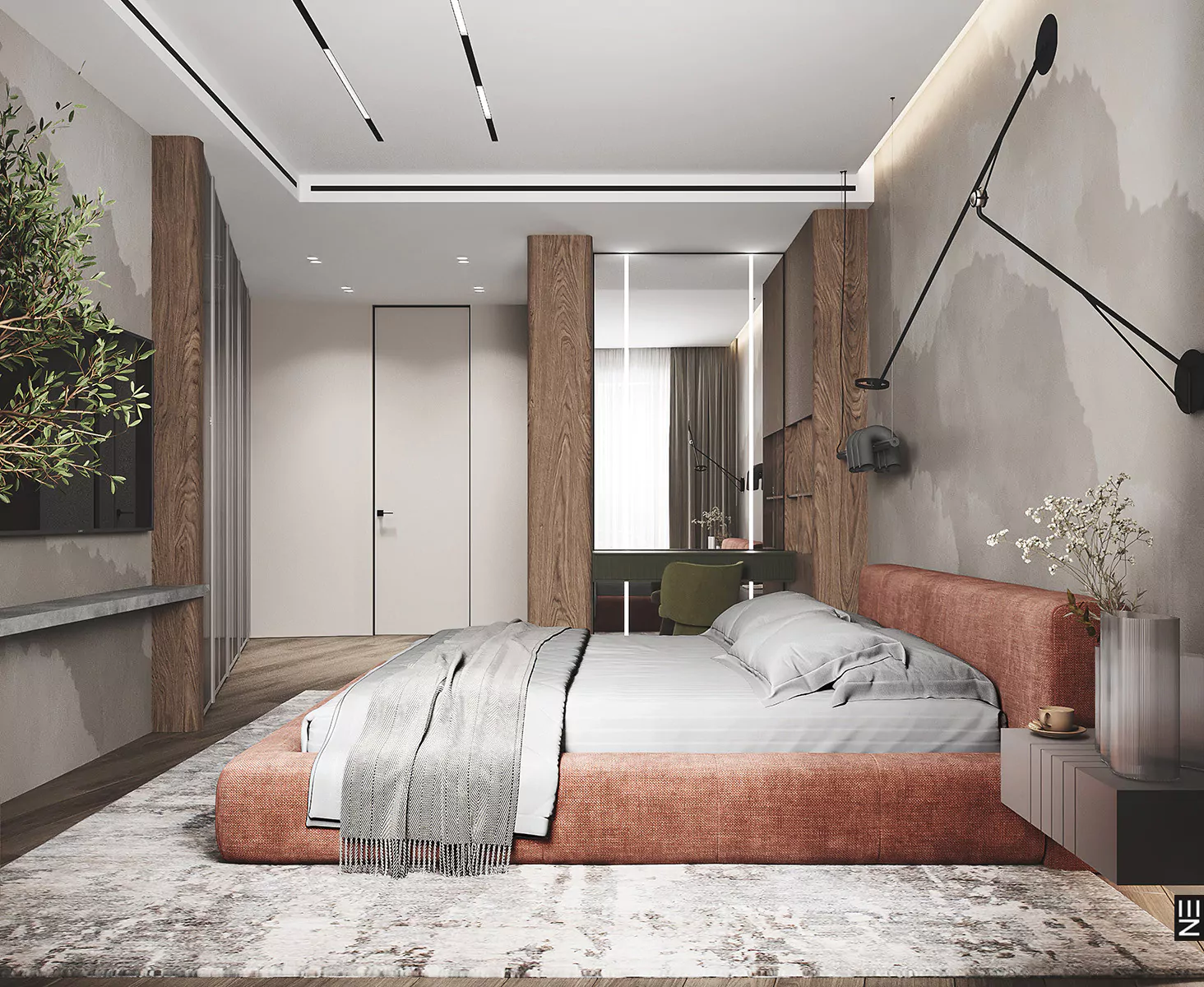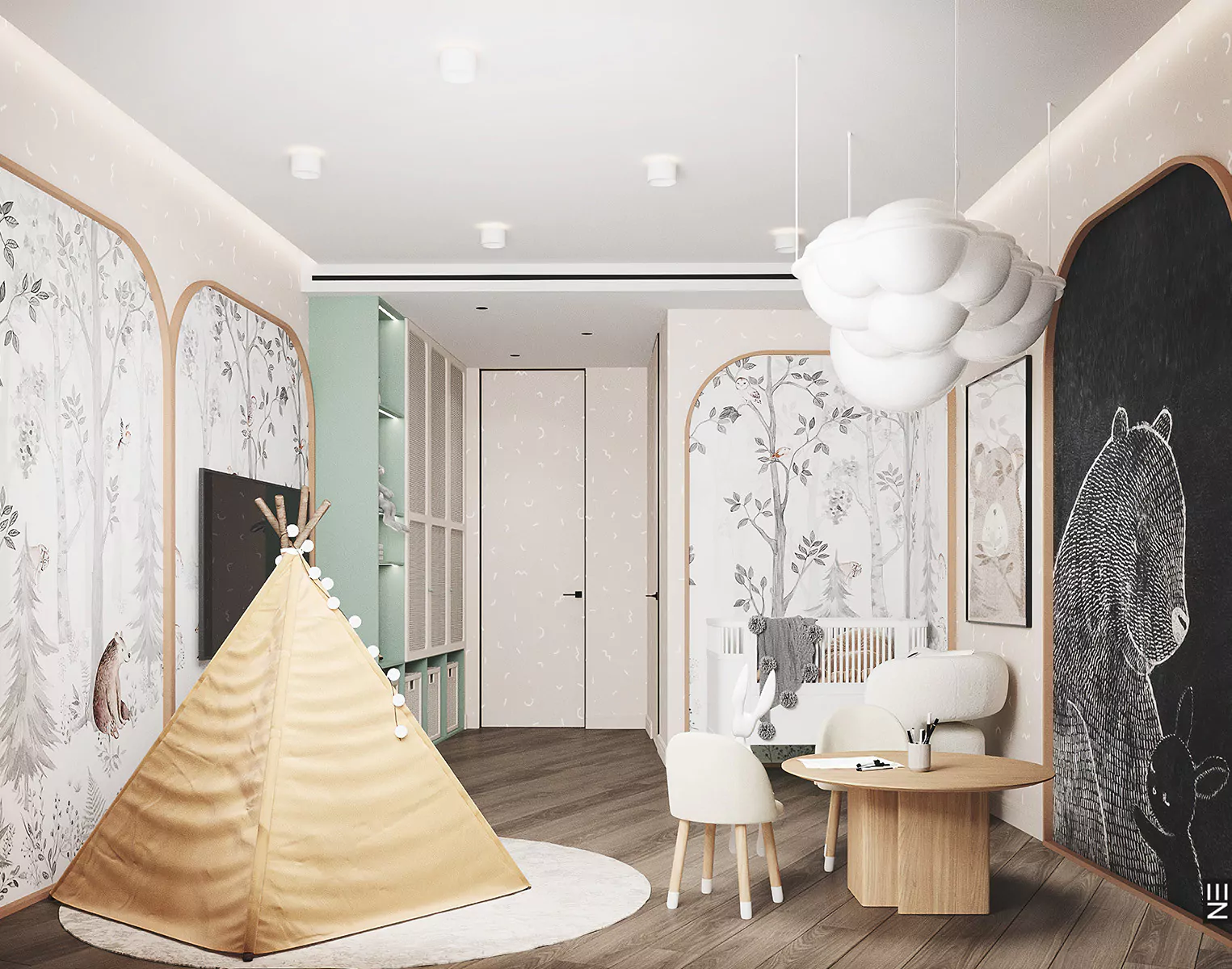 Яркий проект с самыми нестандартными сочетаниями цветов. Сочные оттенки отлично компенсируются натуральными природными материалами в отделке стен и мебели, что делает интерьер столь современным и притягательным.