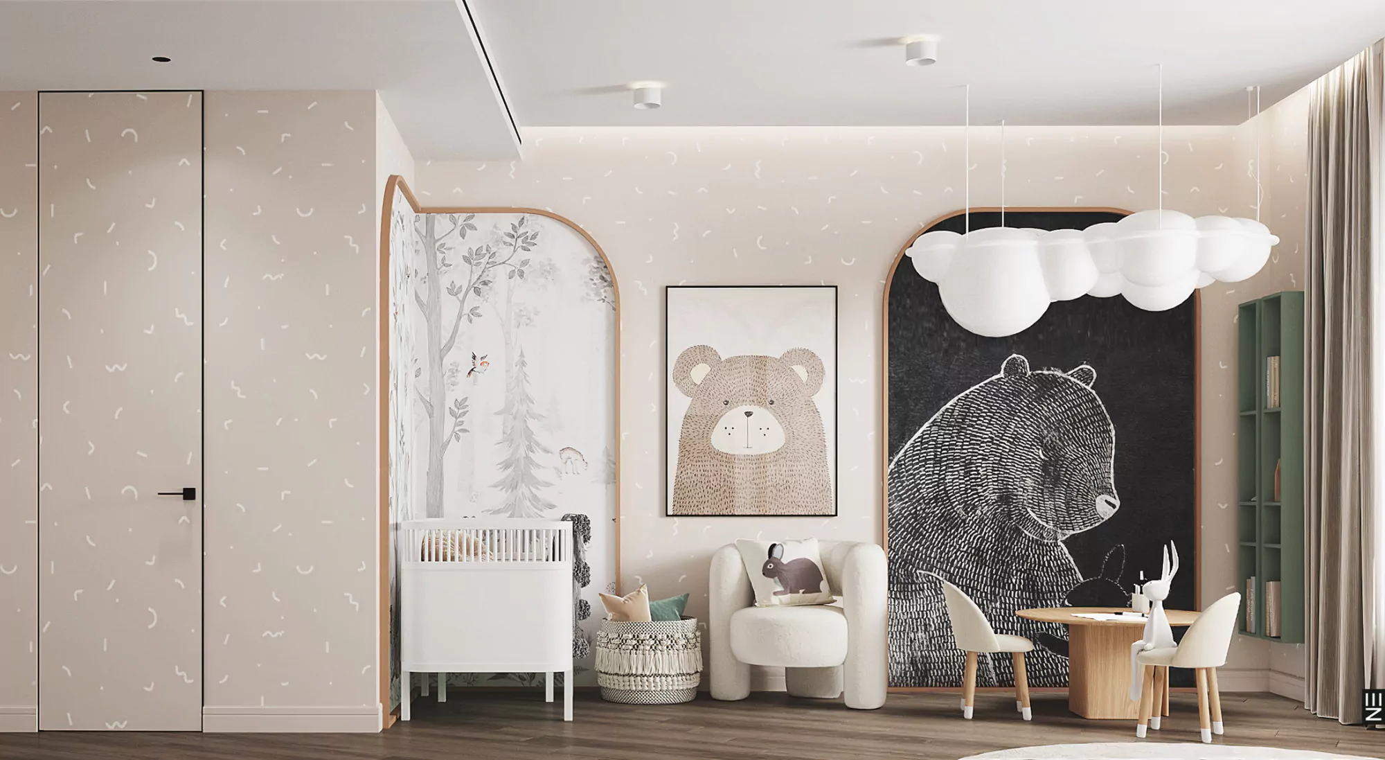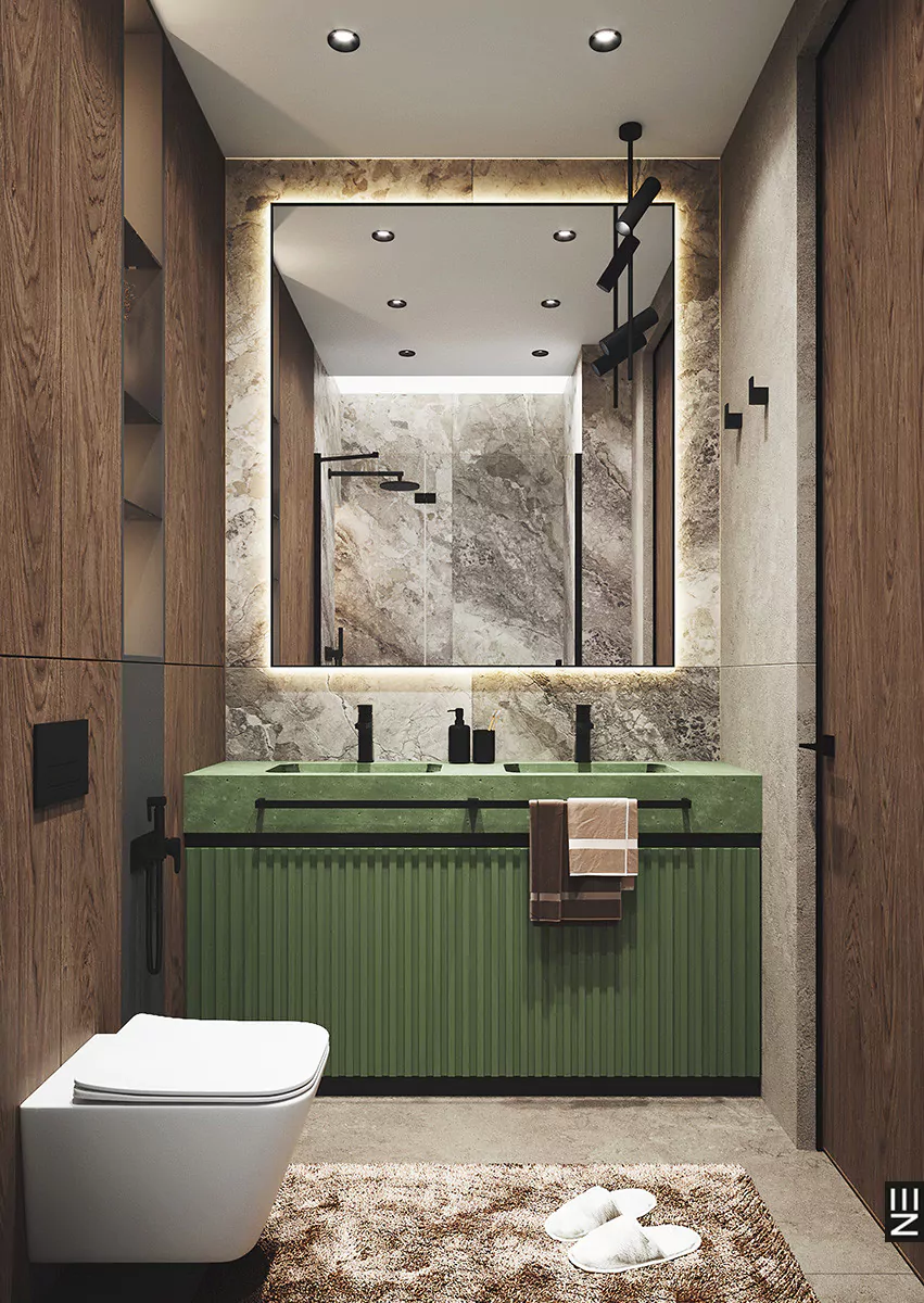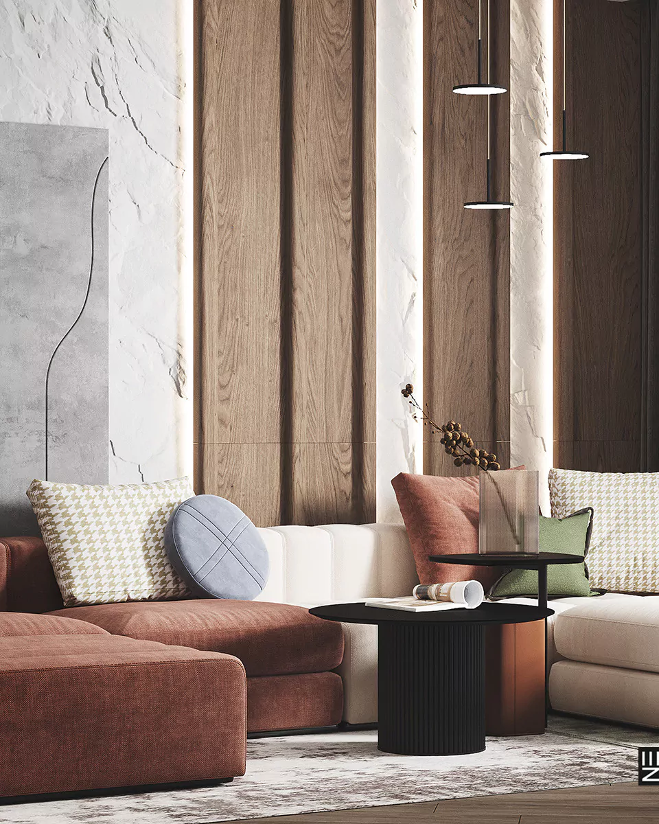 Яркий проект с самыми нестандартными сочетаниями цветов. Сочные оттенки отлично компенсируются натуральными природными материалами в отделке стен и мебели, что делает интерьер столь современным и притягательным.