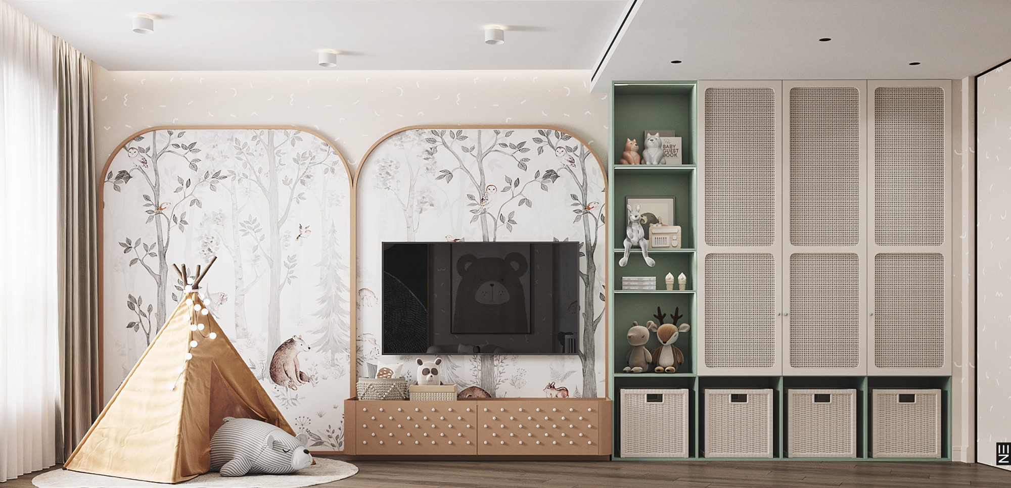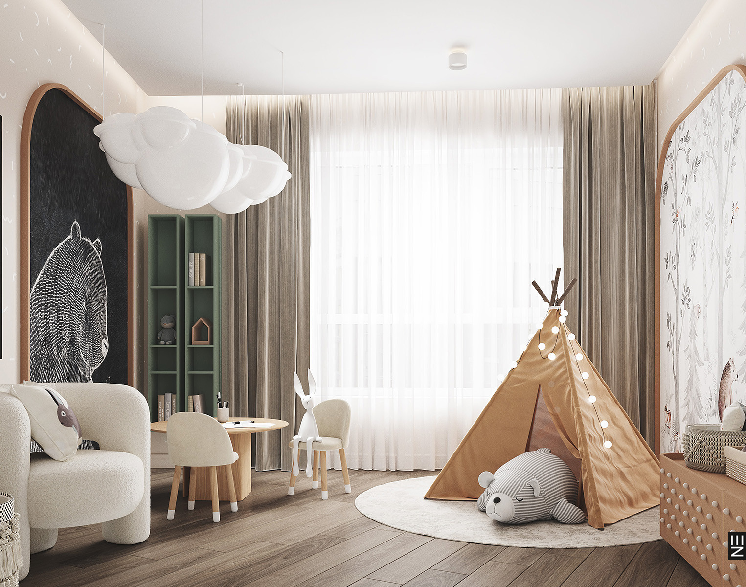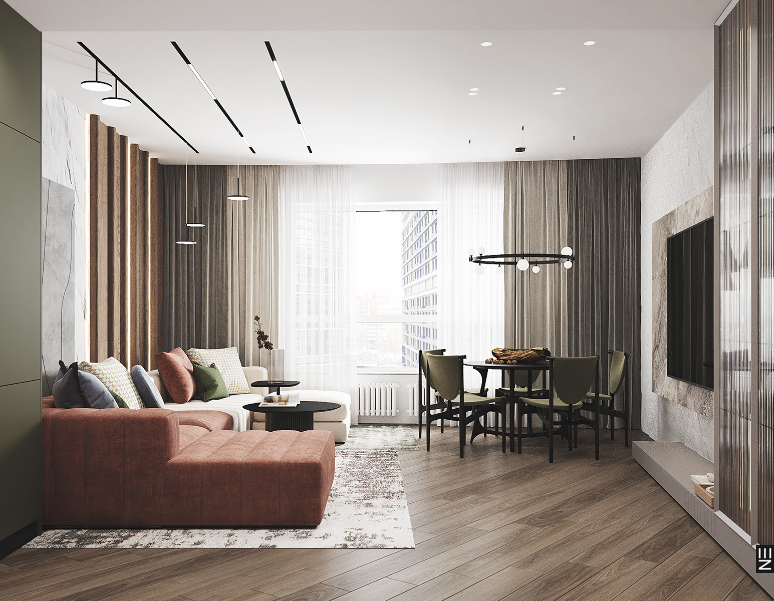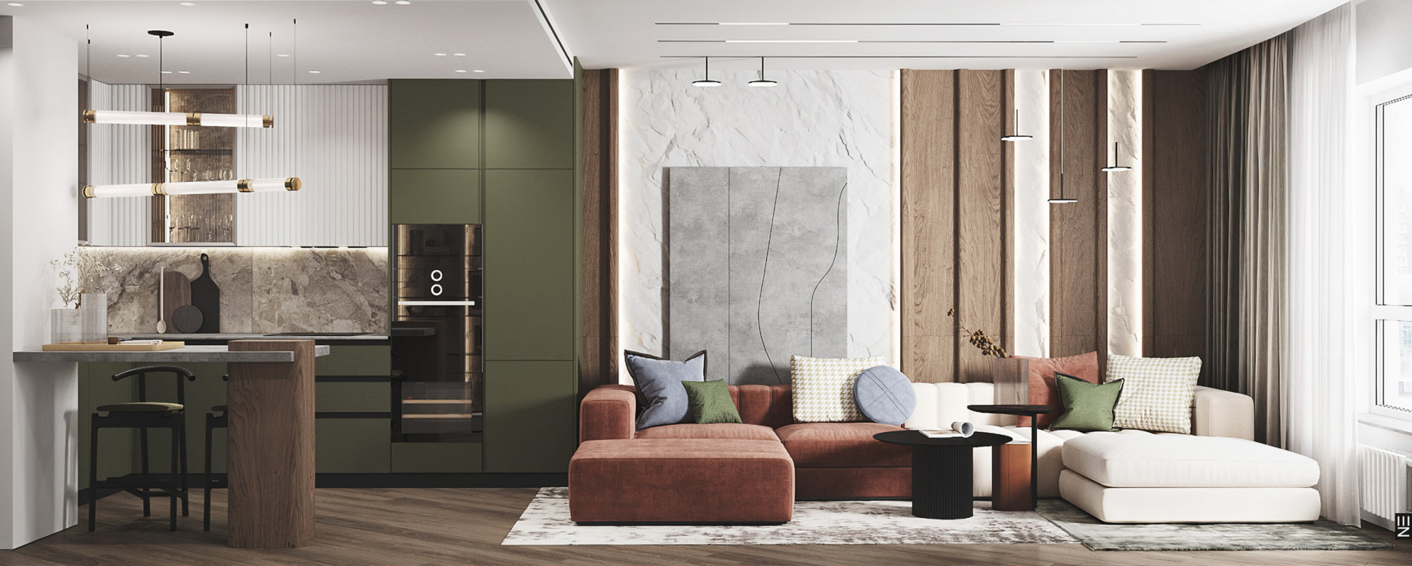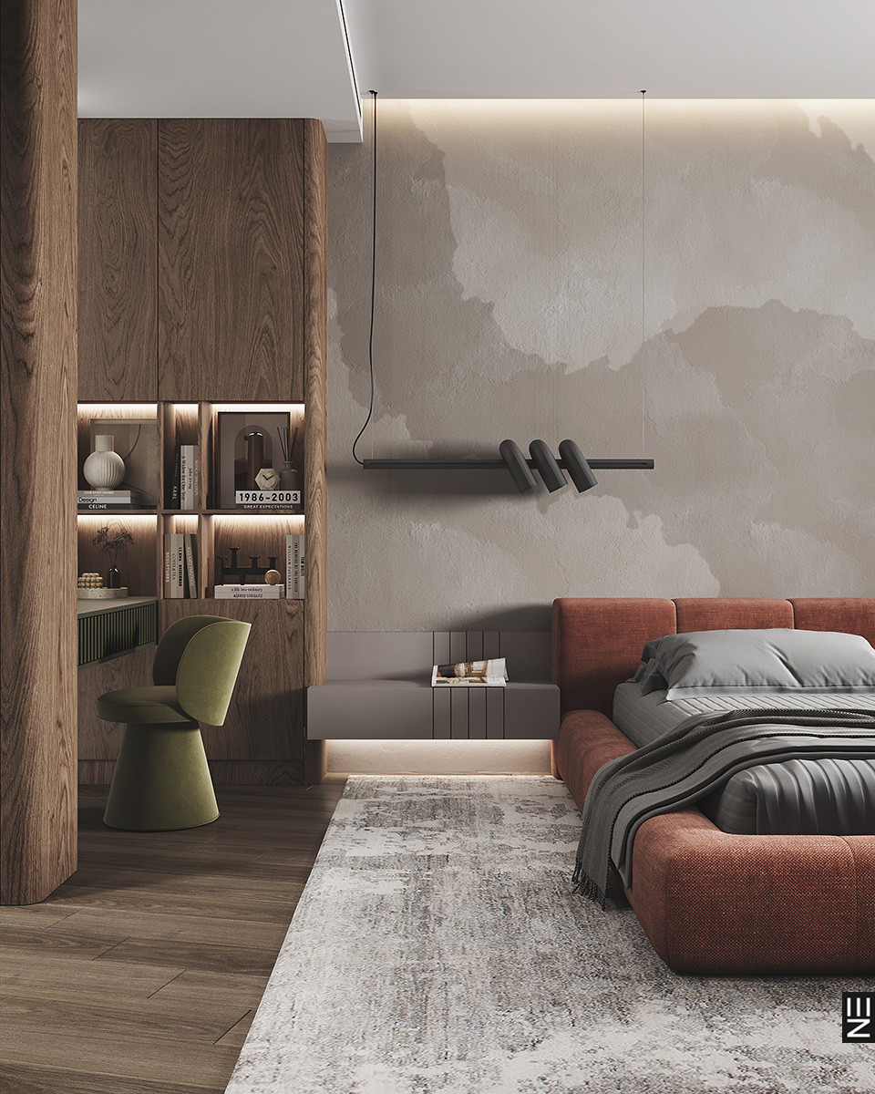 Яркий проект с самыми нестандартными сочетаниями цветов. Сочные оттенки отлично компенсируются натуральными природными материалами в отделке стен и мебели, что делает интерьер столь современным и притягательным.
