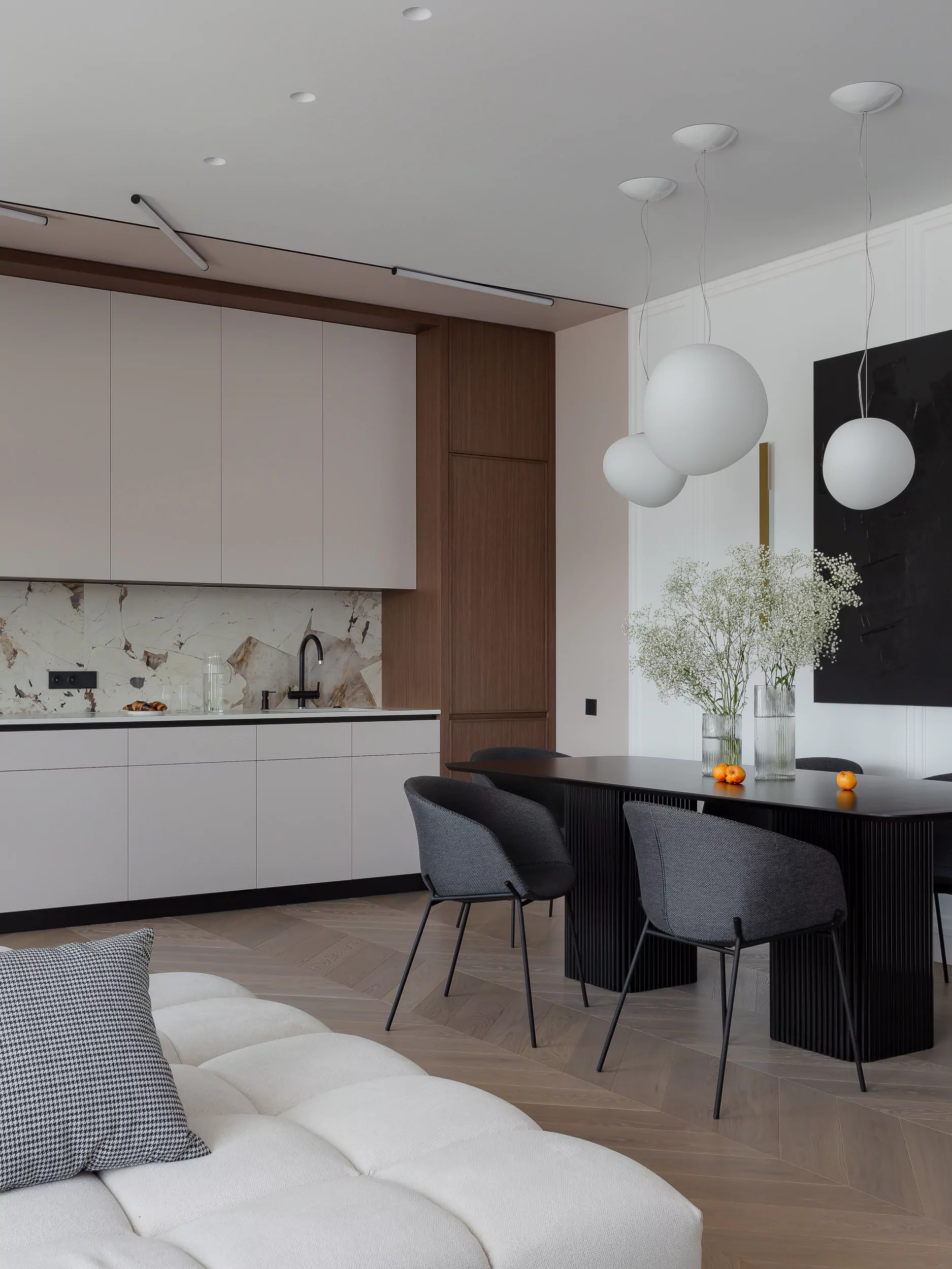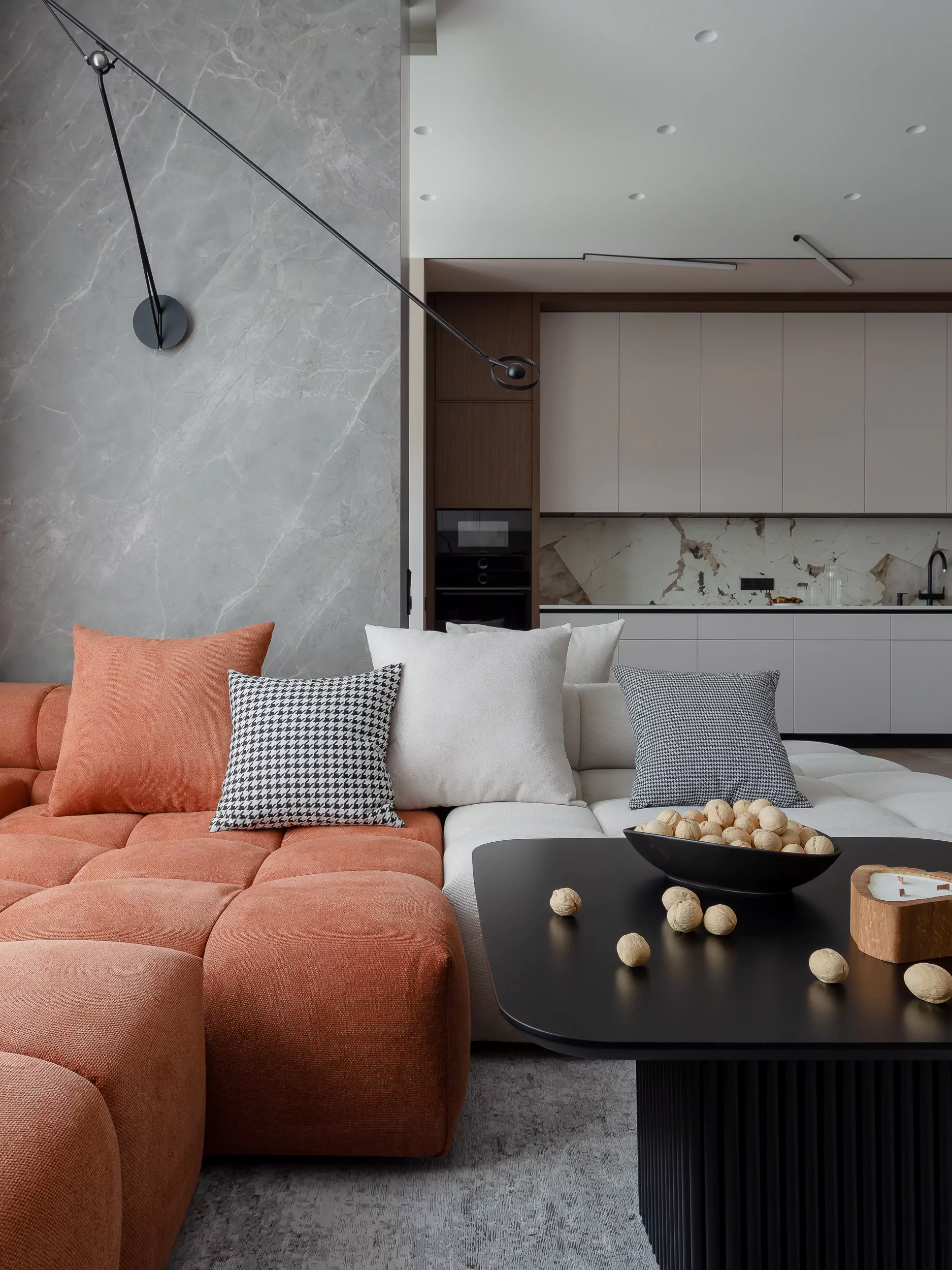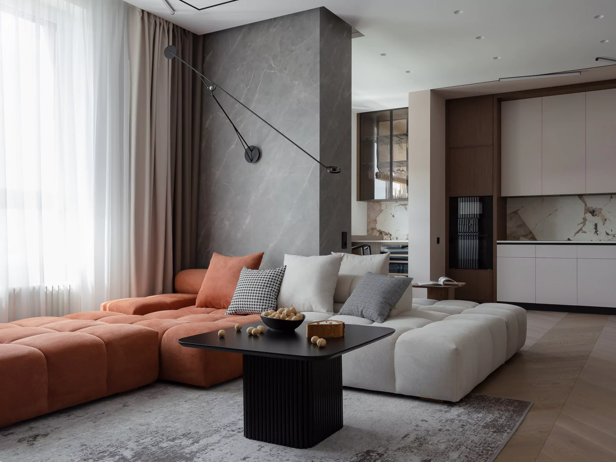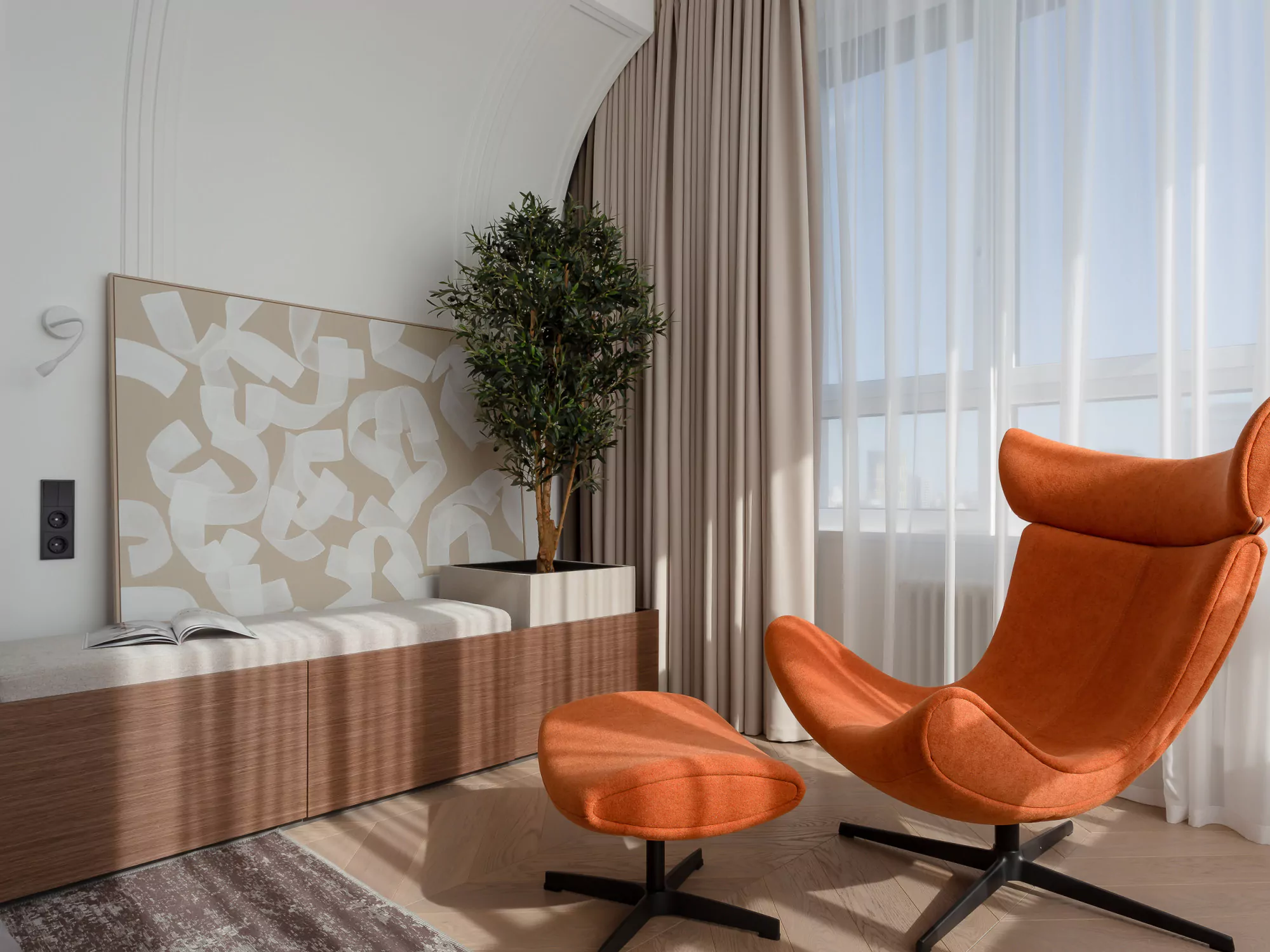 Фото реализованного интерьера! Премиальный интерьер для нашего заказчика с высоким чувством безупречности. Качественные натуральные материалы, природные размашестые формы и капельку цветового всплеска — гармонично сплетаются в единой структуре идеального дизайна.