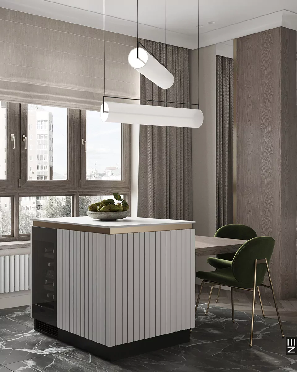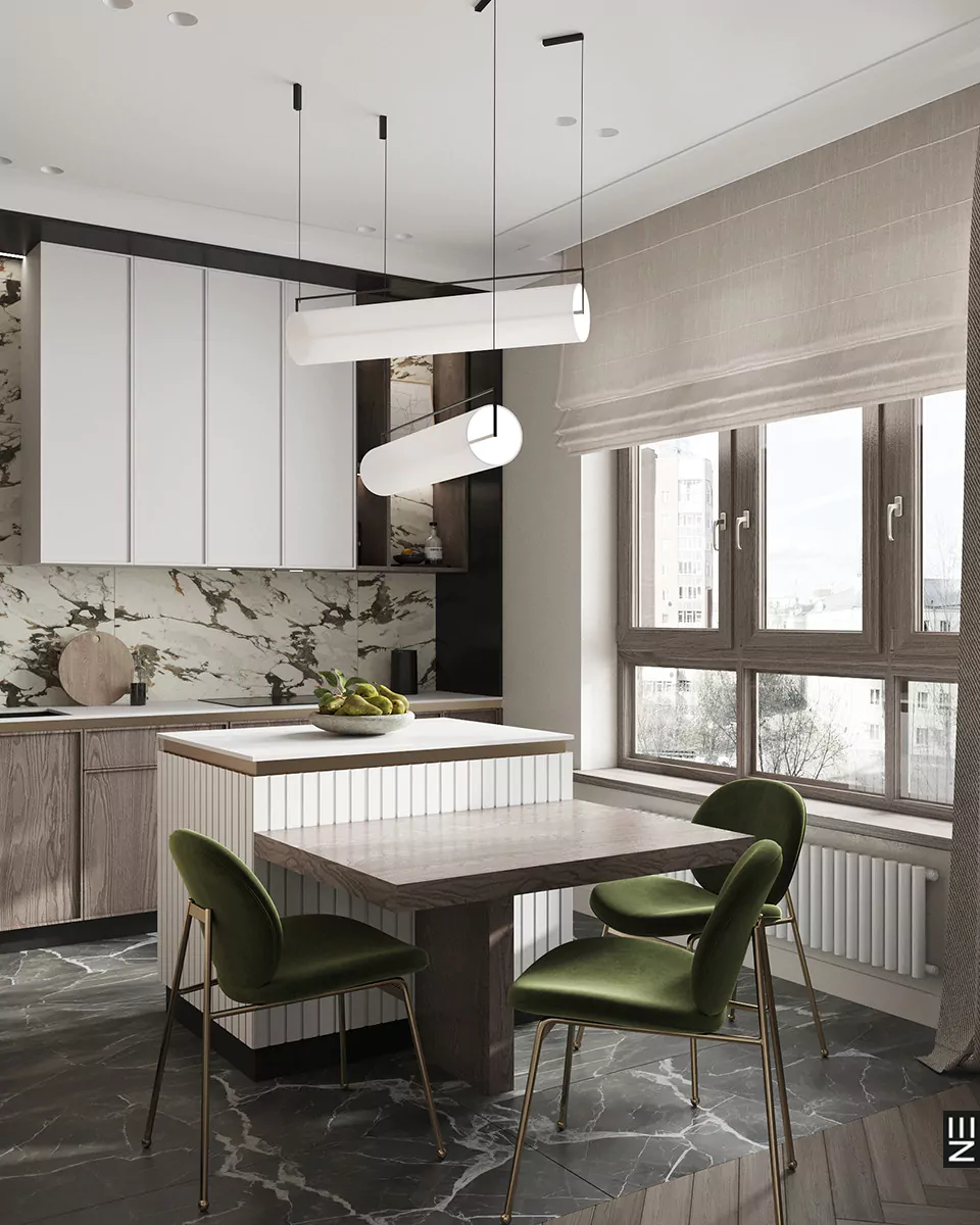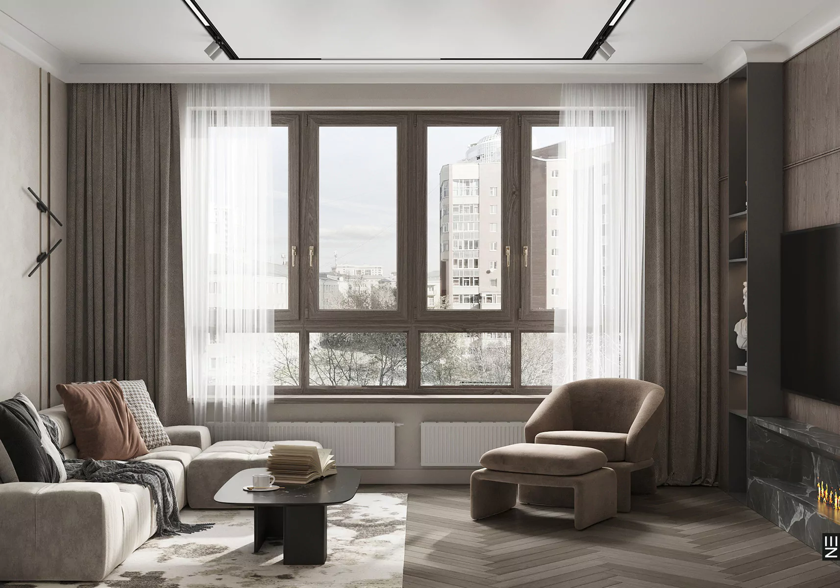 Квартира площадью 116 м² в ЖК «Макаровский» в Екатеринбурге оформлена студией Neapol Design в современном стиле с акцентом на многослойность пространства и природные фактуры. Смелые цветовые сочетания, натуральные материалы и текстуры создают выразительный и уютный интерьер. Функциональная планировка включает кухню, гостиную, спальни, кабинет и ванные комнаты, каждая из которых продумана до мелочей. Дизайн интерьера подчёркивает комфорт и эстетическое наслаждение, обеспечивая гармоничную атмосферу для жизни в динамичном ритме города.