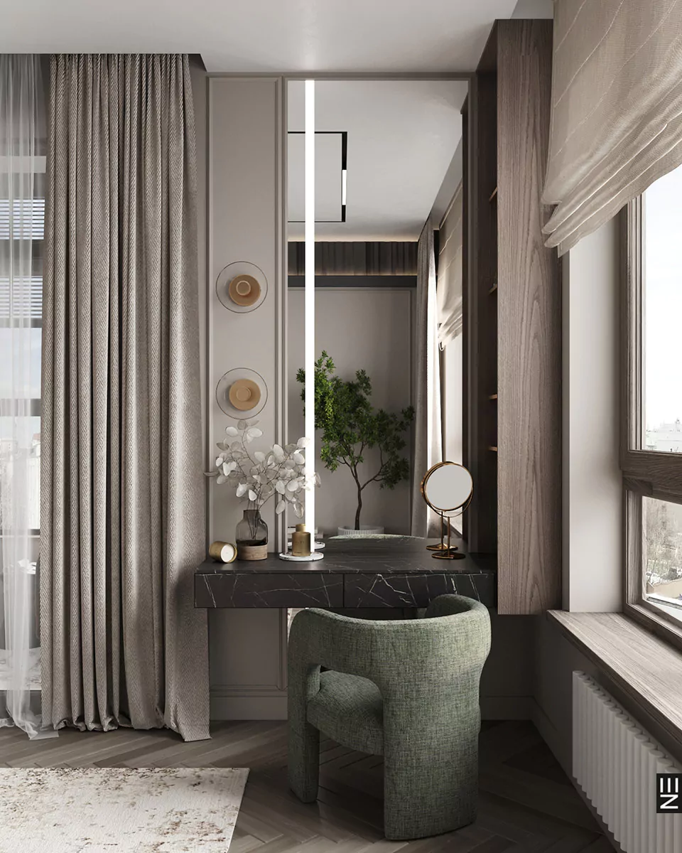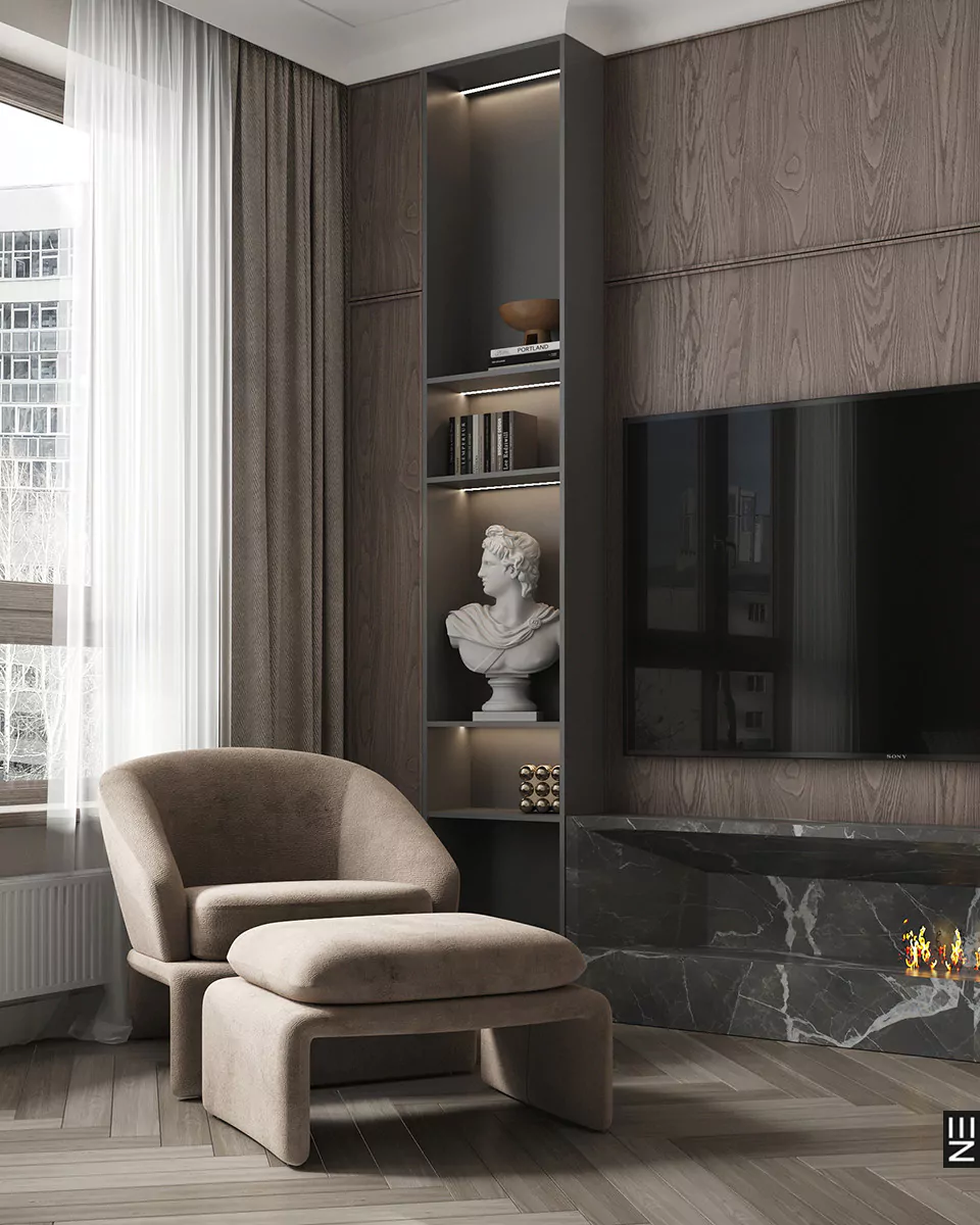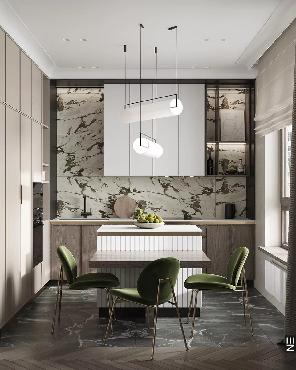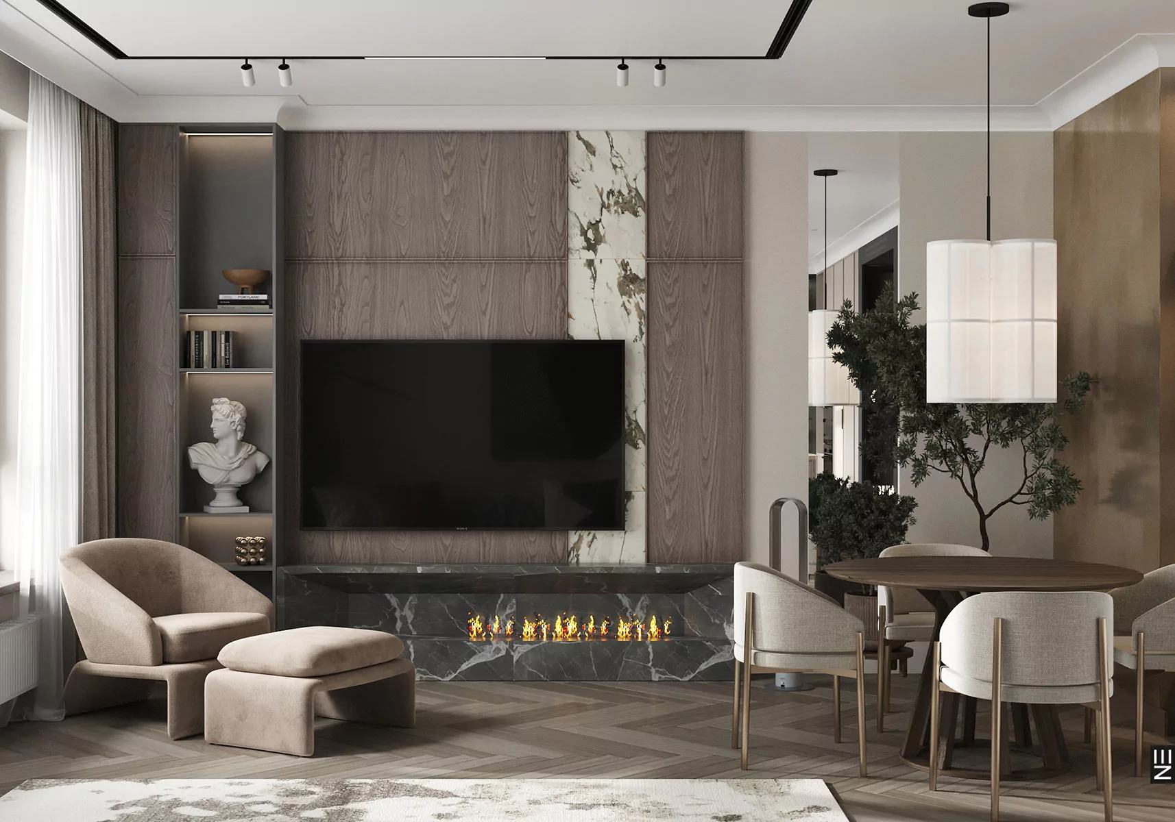 Квартира площадью 116 м² в ЖК «Макаровский» в Екатеринбурге оформлена студией Neapol Design в современном стиле с акцентом на многослойность пространства и природные фактуры. Смелые цветовые сочетания, натуральные материалы и текстуры создают выразительный и уютный интерьер. Функциональная планировка включает кухню, гостиную, спальни, кабинет и ванные комнаты, каждая из которых продумана до мелочей. Дизайн интерьера подчёркивает комфорт и эстетическое наслаждение, обеспечивая гармоничную атмосферу для жизни в динамичном ритме города.