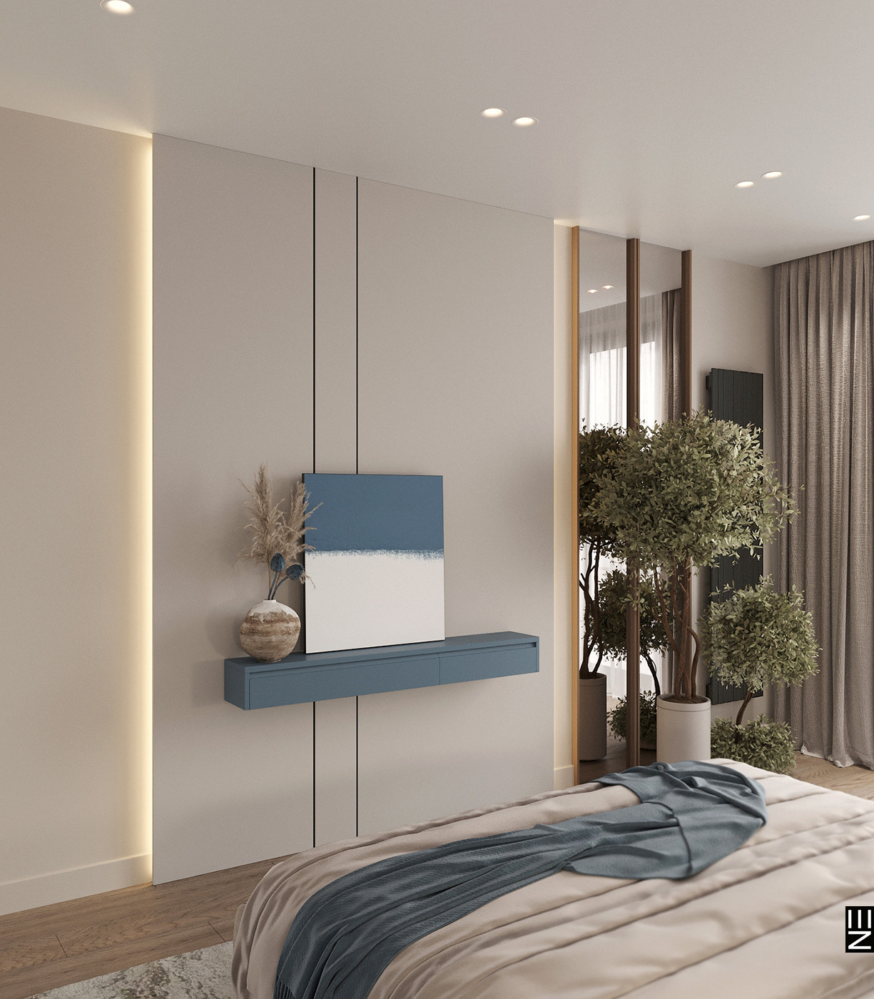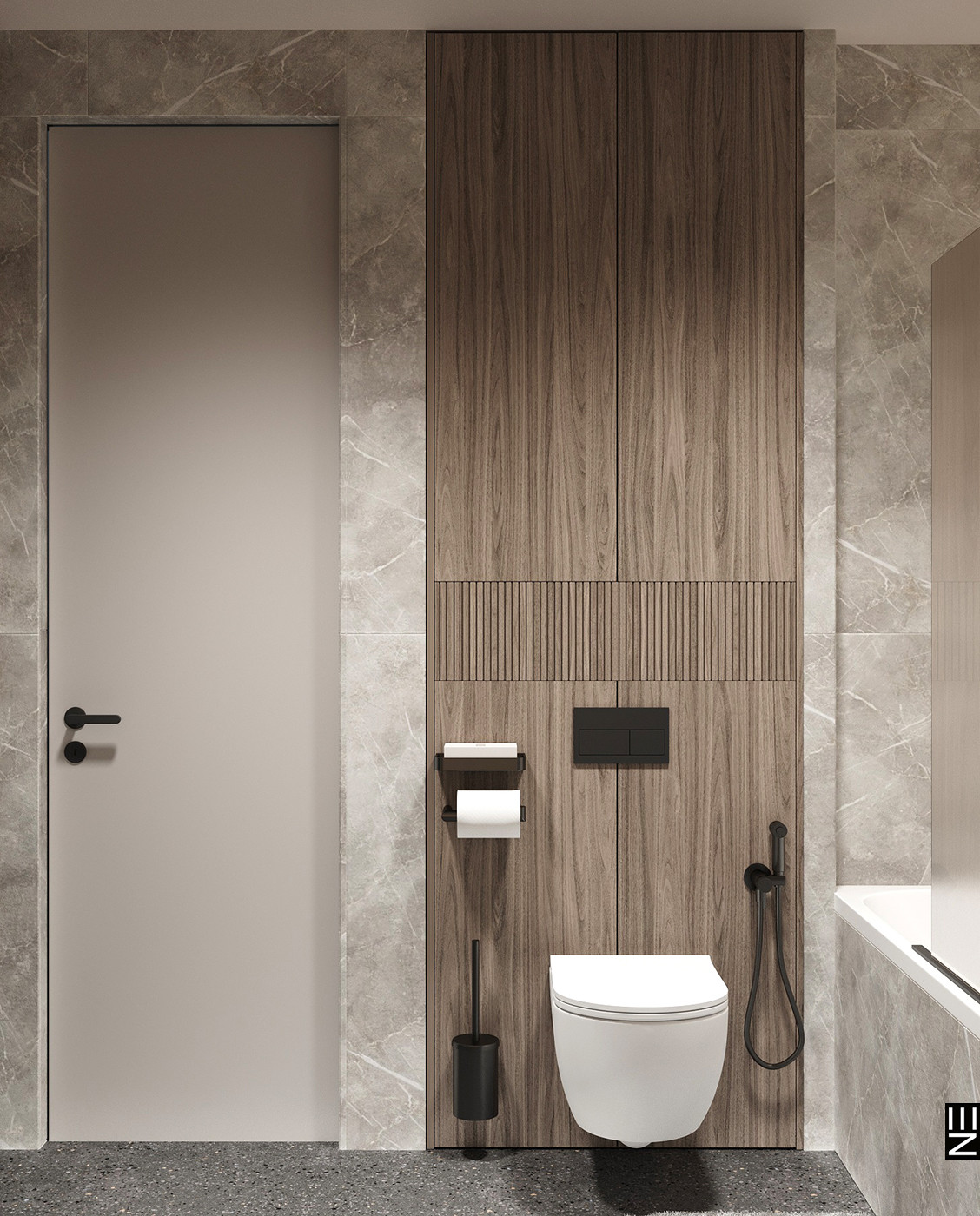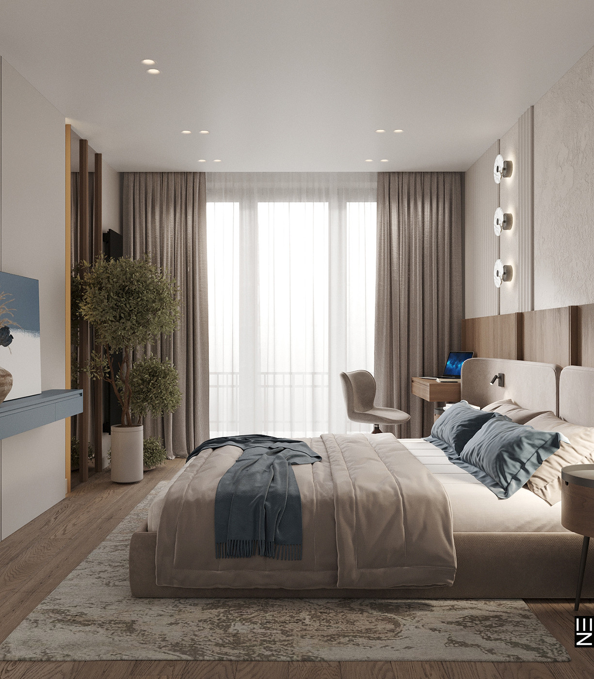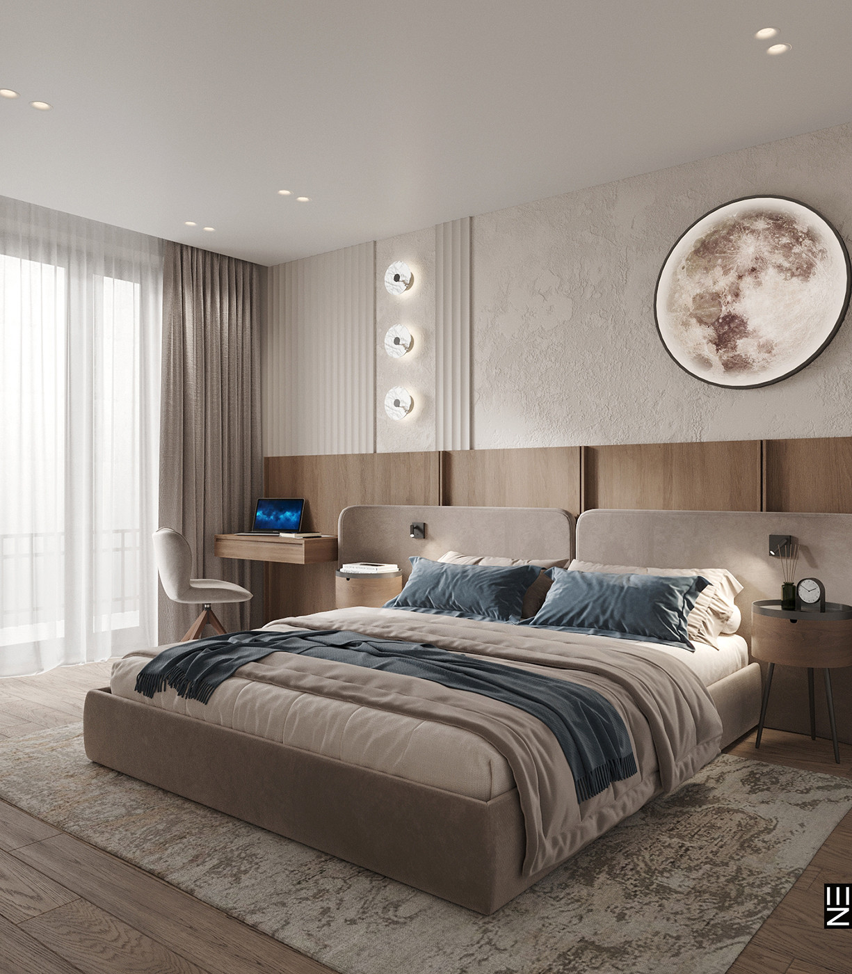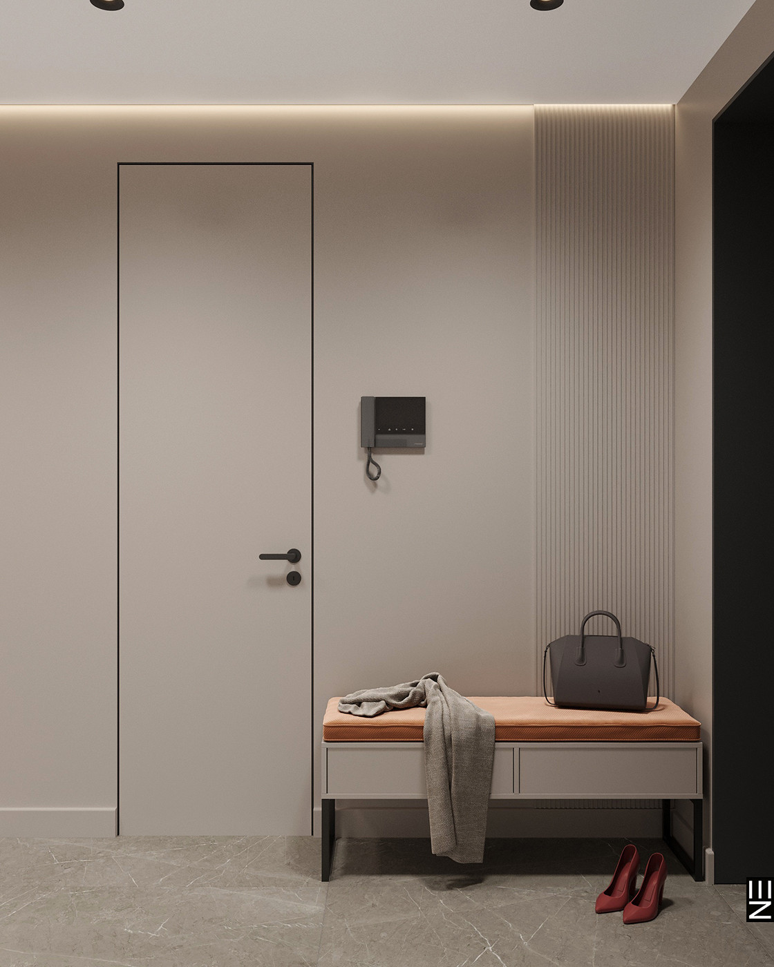 Гармония планировки — залог интерьера: спальня, кабинет, прихожая и гостевая зона связаны с умом, а отделка и материалы подчёркивают стремление к лаконичной эстетике и функциональности. На грани простоты и характера, этот дизайн интерьера не стремится показать всё, он словно оставляет пространство для дыхания — место, где смысл появляется в тишине.