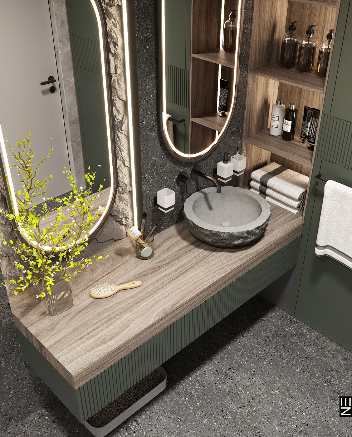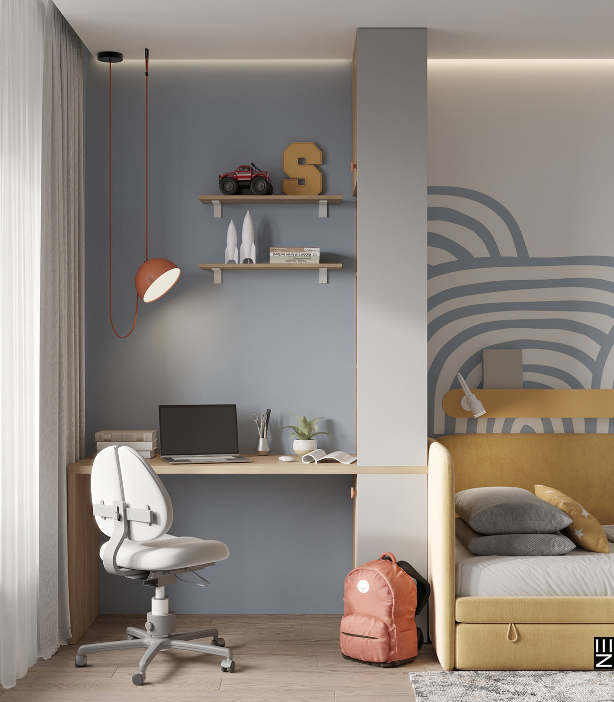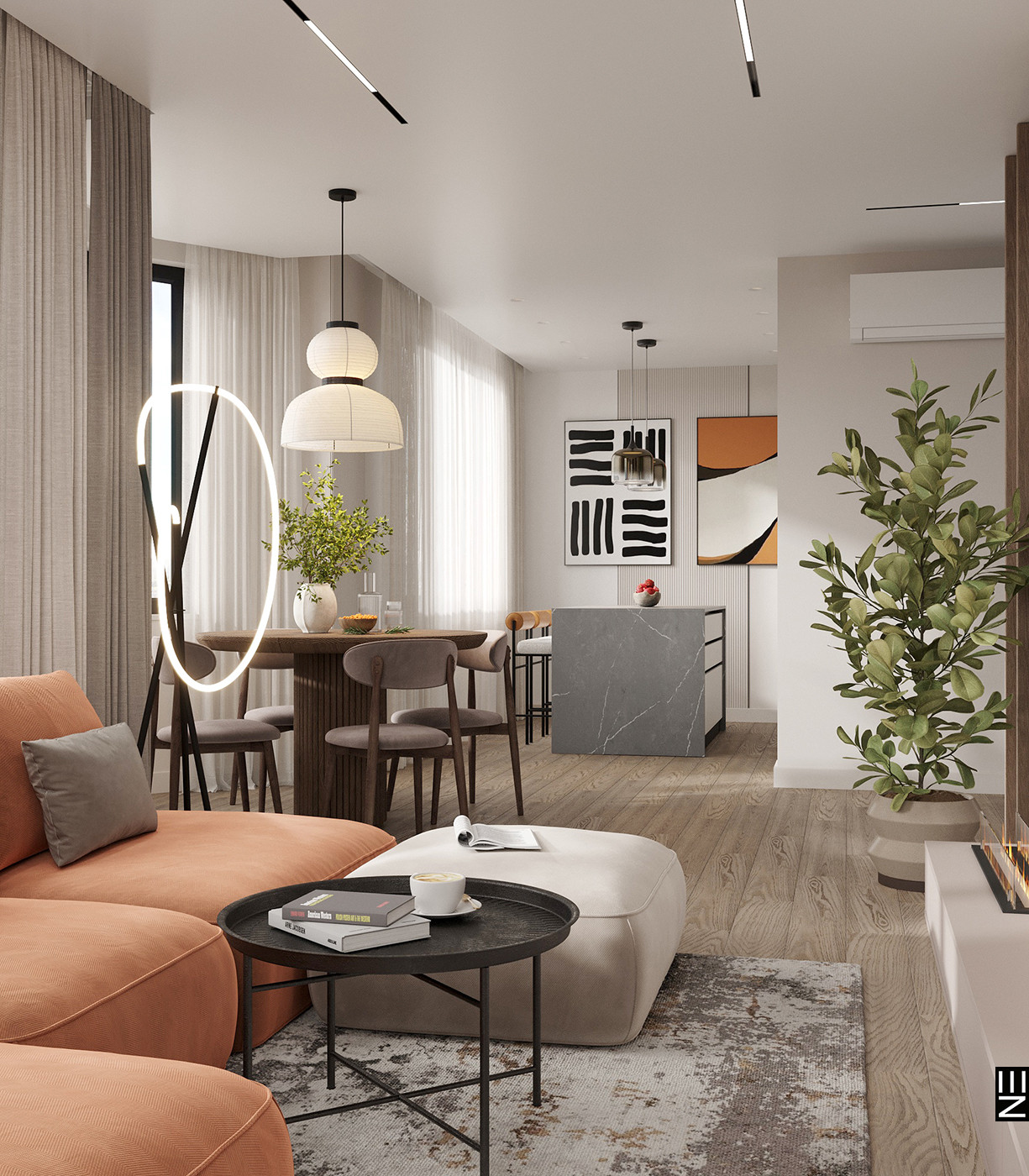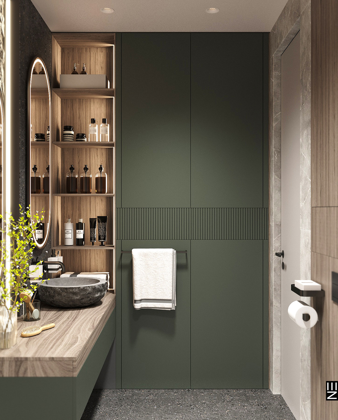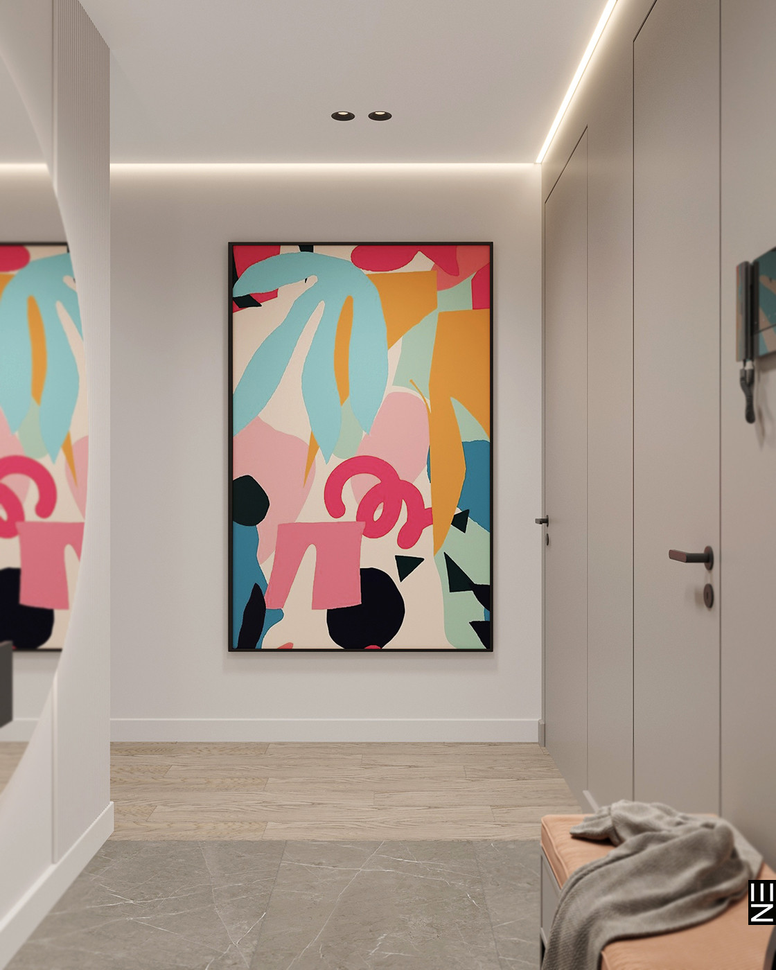 Гармония планировки — залог интерьера: спальня, кабинет, прихожая и гостевая зона связаны с умом, а отделка и материалы подчёркивают стремление к лаконичной эстетике и функциональности. На грани простоты и характера, этот дизайн интерьера не стремится показать всё, он словно оставляет пространство для дыхания — место, где смысл появляется в тишине.