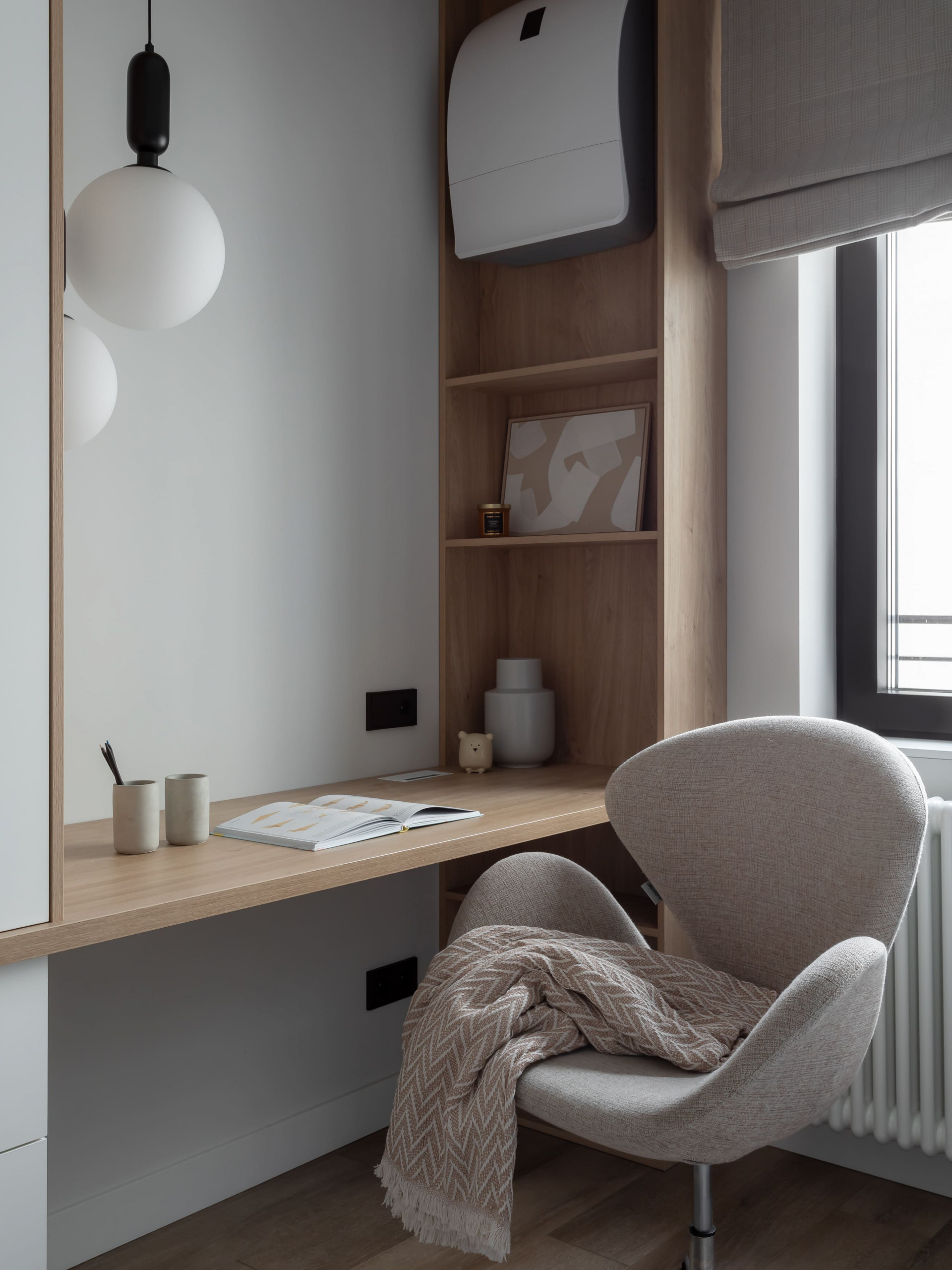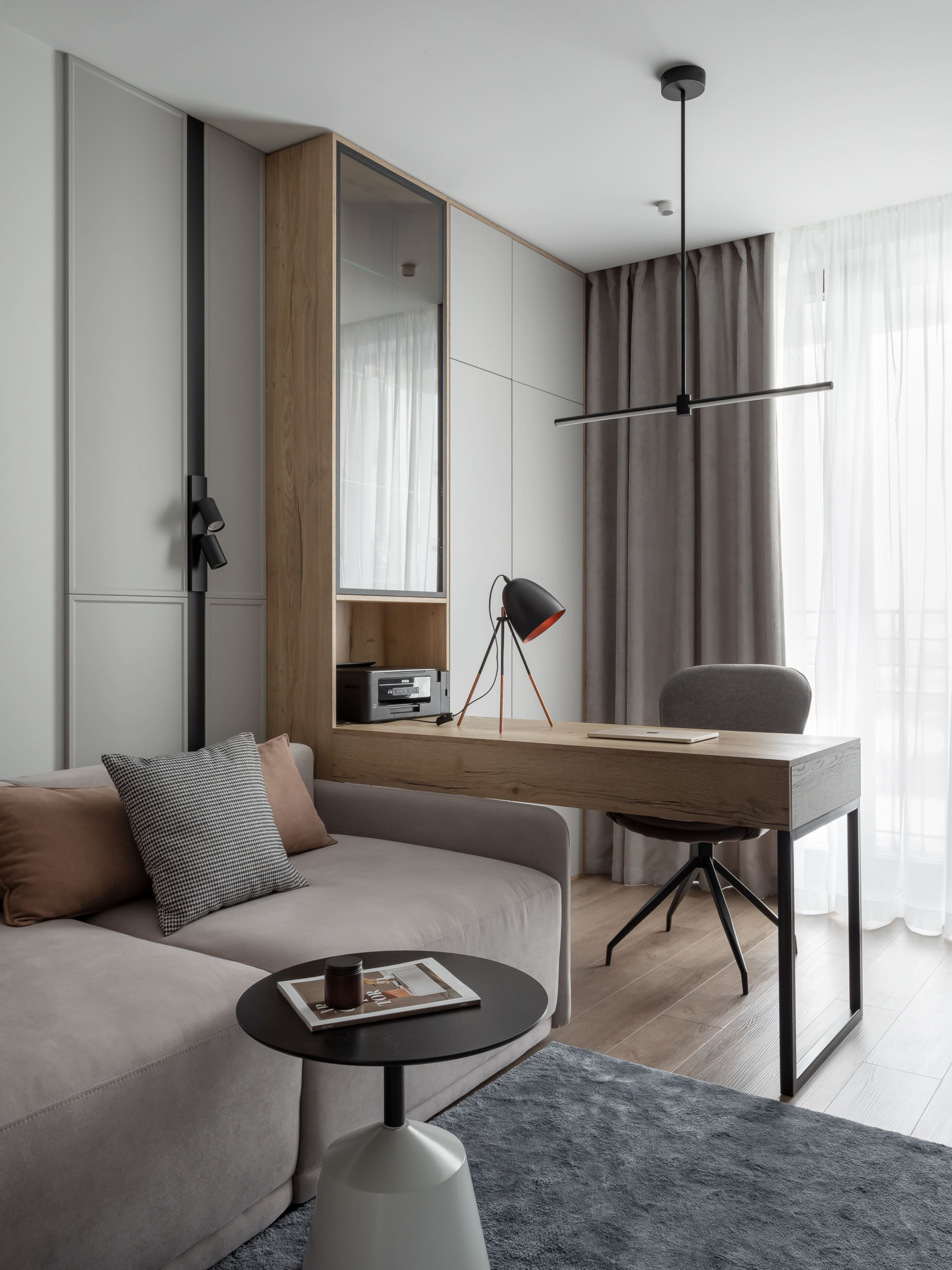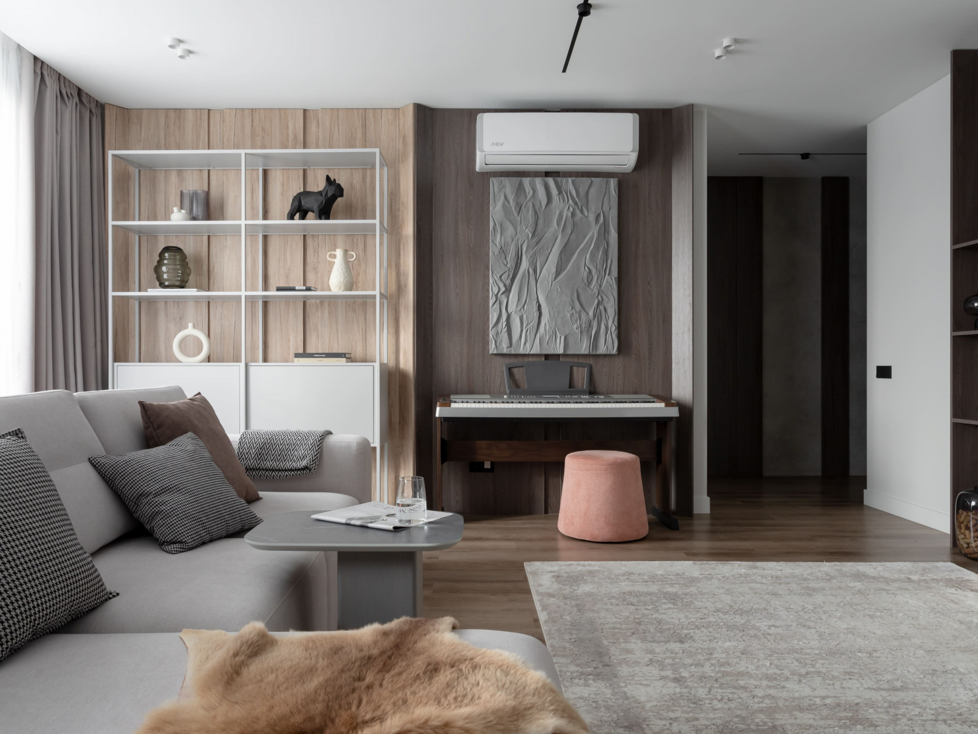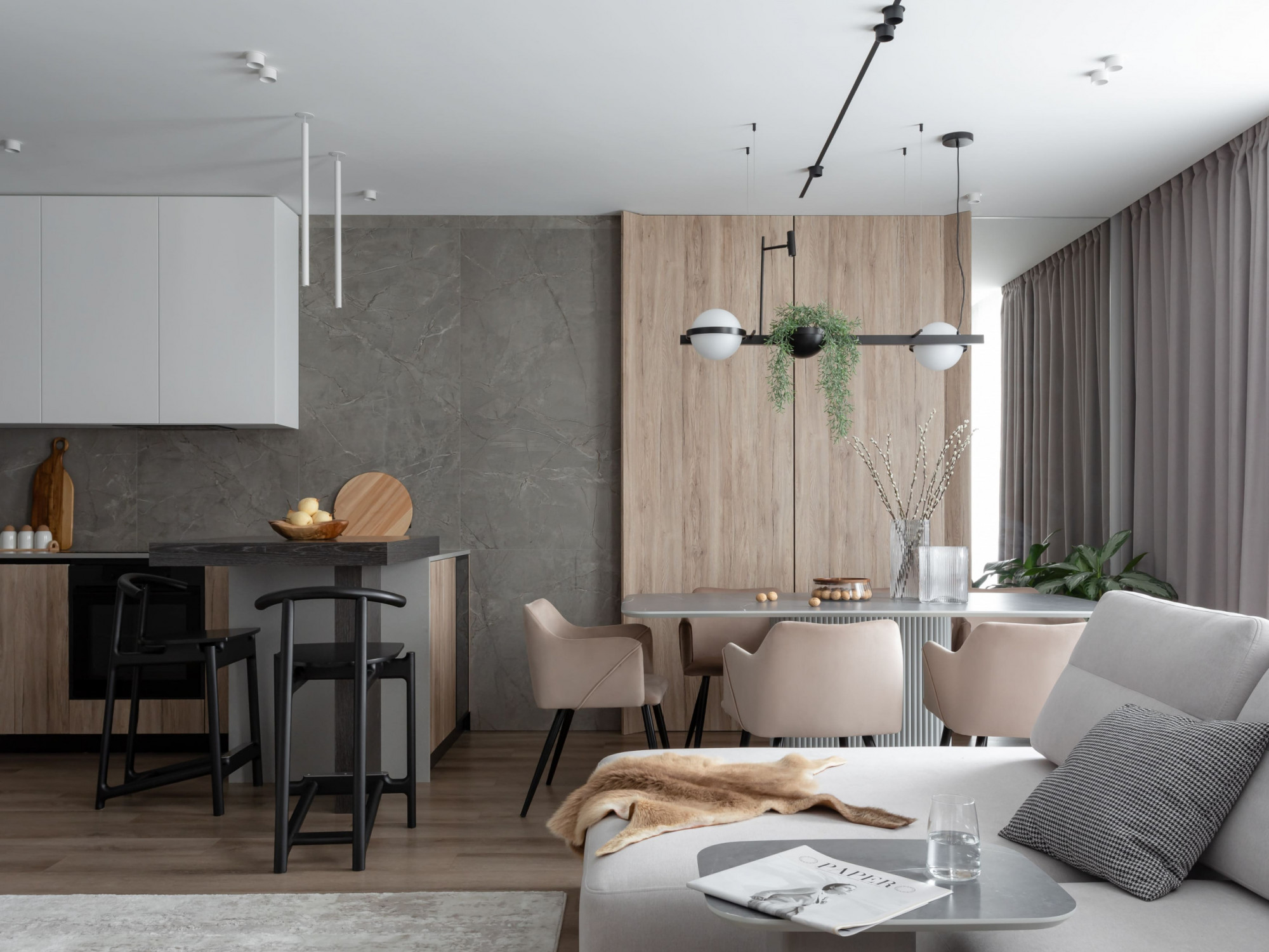 Индивидуальный проект дизайна интерьера квартиры площадью 134,5 м² в ЖК на Некрасова в Екатеринбурге разработан для семьи, ценящей комфорт и эстетику минимализма. Кухня-гостиная объединена в просторное общественное пространство, спальня, две детские, кабинет и гардеробные зоны логично связаны между собой. В интерьере использованы природные материалы, нейтральные оттенки, лаконичные формы. Каждый элемент тщательно продуман с учётом привычек семьи. Этот современный интерьер создаёт атмосферу уюта и уравновешенности — идеальный пример функционального дизайна для городской жизни.