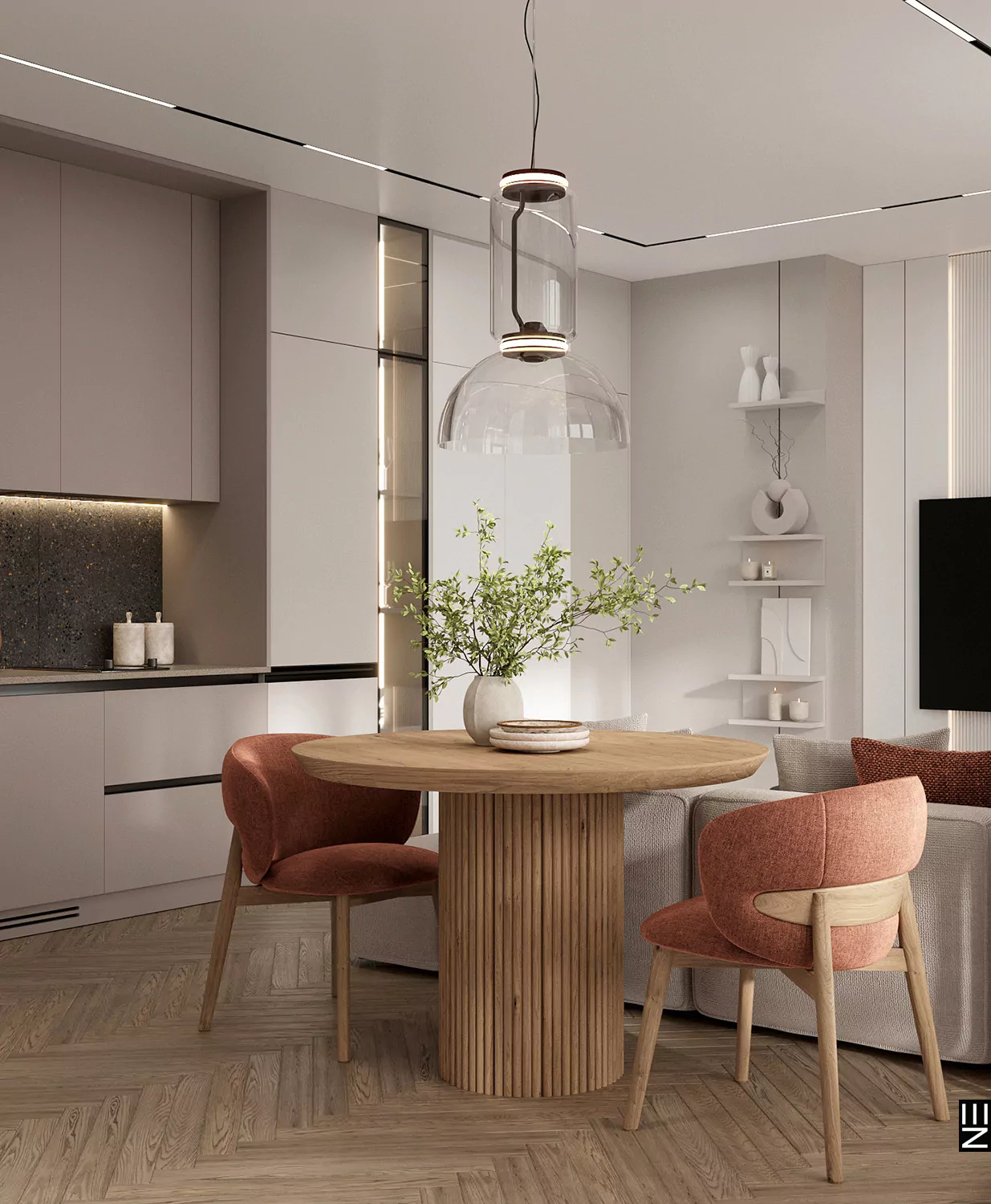 Однокомнатная квартира площадью 53,6 м² в ЖК «Южные кварталы» в Екатеринбурге превратилась в уютное и стильное пространство в духе Джапанди — гармонии японского минимализма и скандинавской простоты. Студия Neapol Design разработала индивидуальный проект интерьера, где натуральные фактуры, светлая палитра и тёплые акценты создают атмосферу покоя и уюта. Продуманная планировка учитывает привычки и образ жизни семьи, а каждая деталь — от встроенного хранения до рассеянного света — работает на ощущение лёгкости. Это дизайн интерьера, в котором хочется дышать свободно.