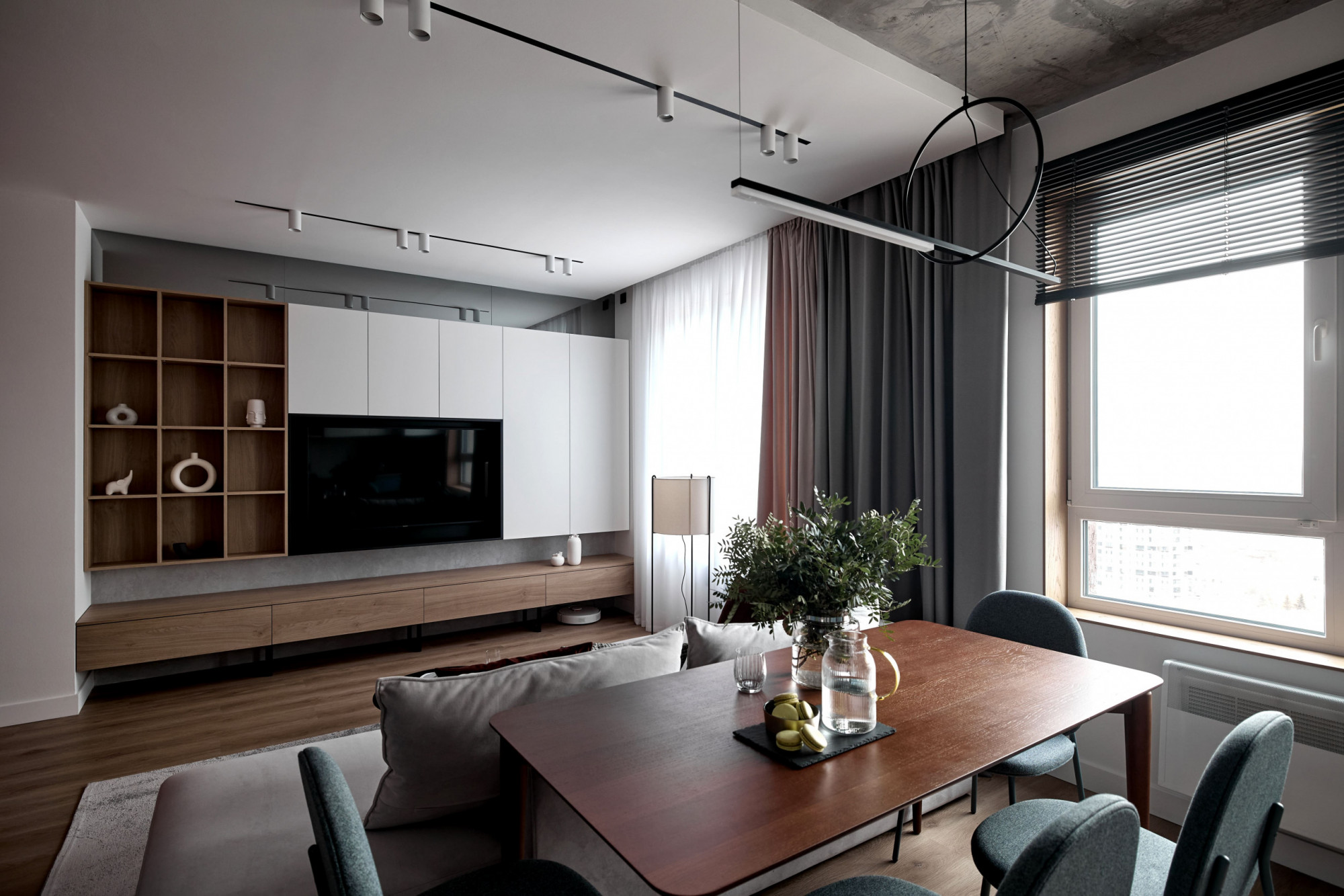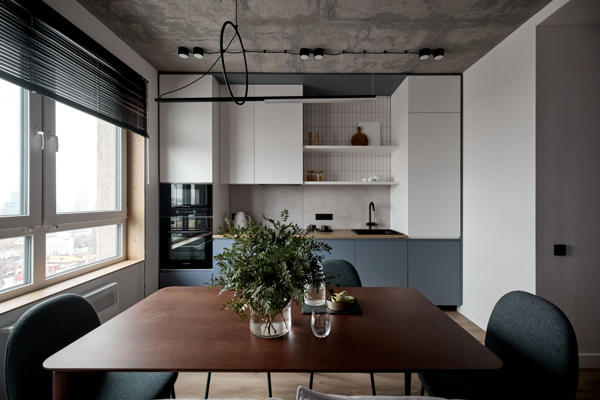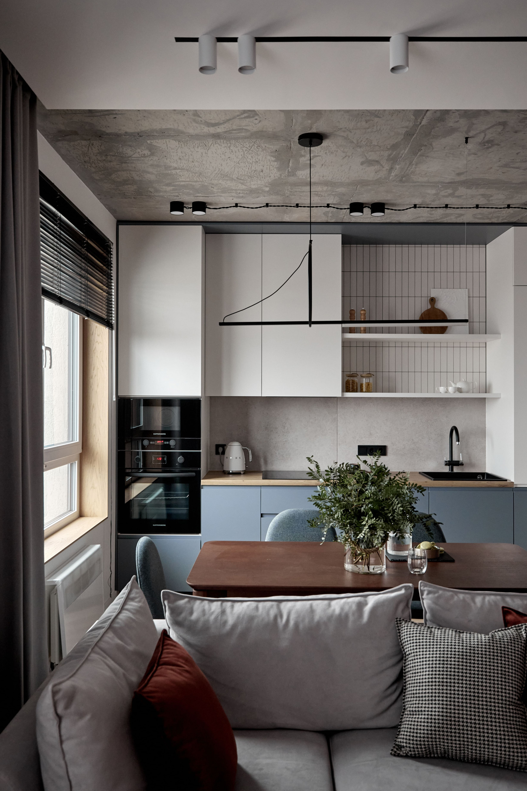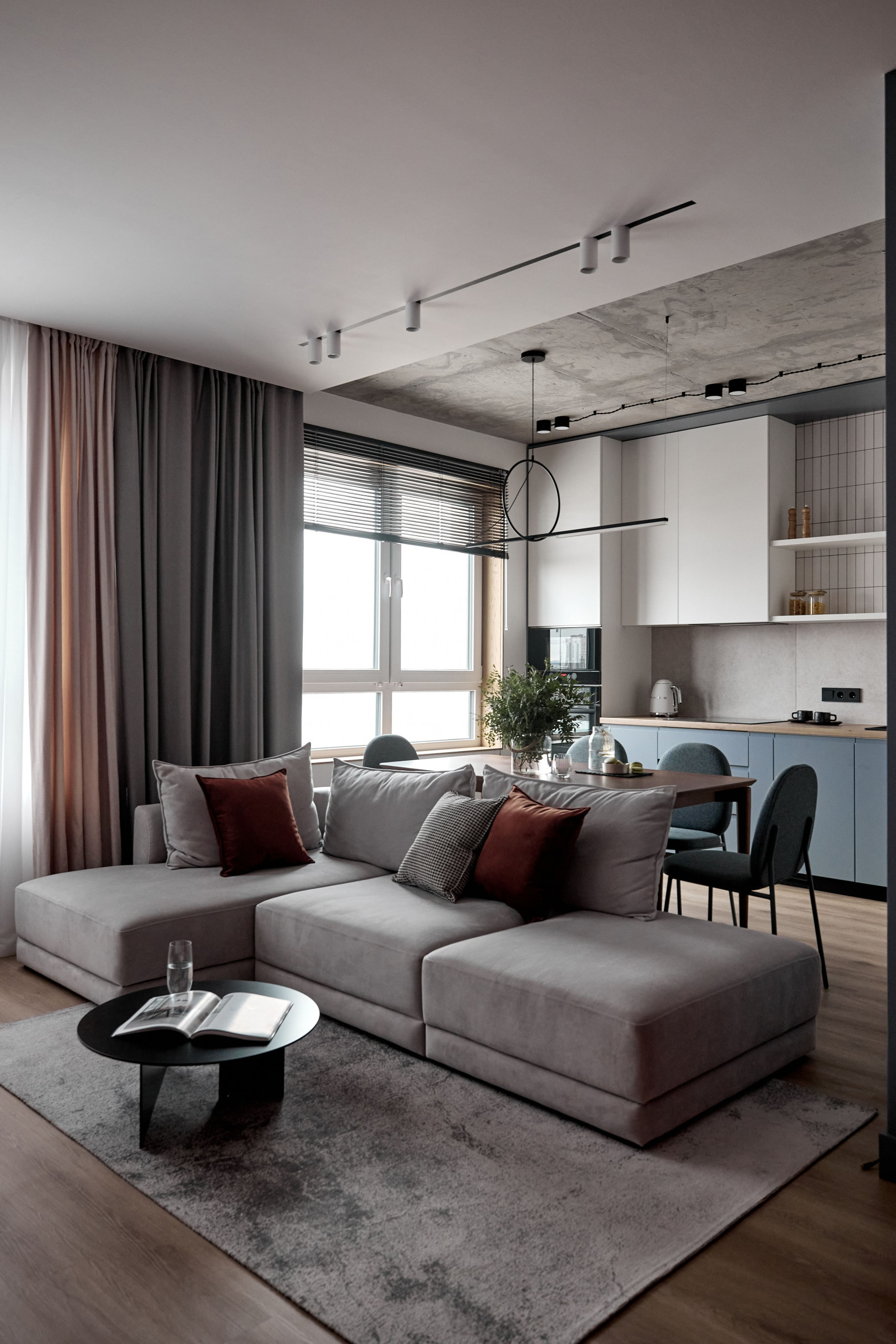 Квартира 75 м² в ЖК «Женева» в Екатеринбурге оформлена в индустриальном стиле, где грубые фактуры становятся выразительным художественным приёмом. Студия Neapol Design задействовала аутентичные лофт-элементы: открытые коммуникации, бетонные перекрытия, графитовые металлоконструкции и естественное дерево. Пространство организовано лаконично: кухня-гостиная, спальня, кабинет и ванная объединены идеей свободы и ритма. Интерьер не маскирует структуру, а подчеркивает её — превращая каждый элемент в часть визуального сценария. Этот проект — про честную эстетику и архитектурную смелость, в которой нет места случайным деталям.
